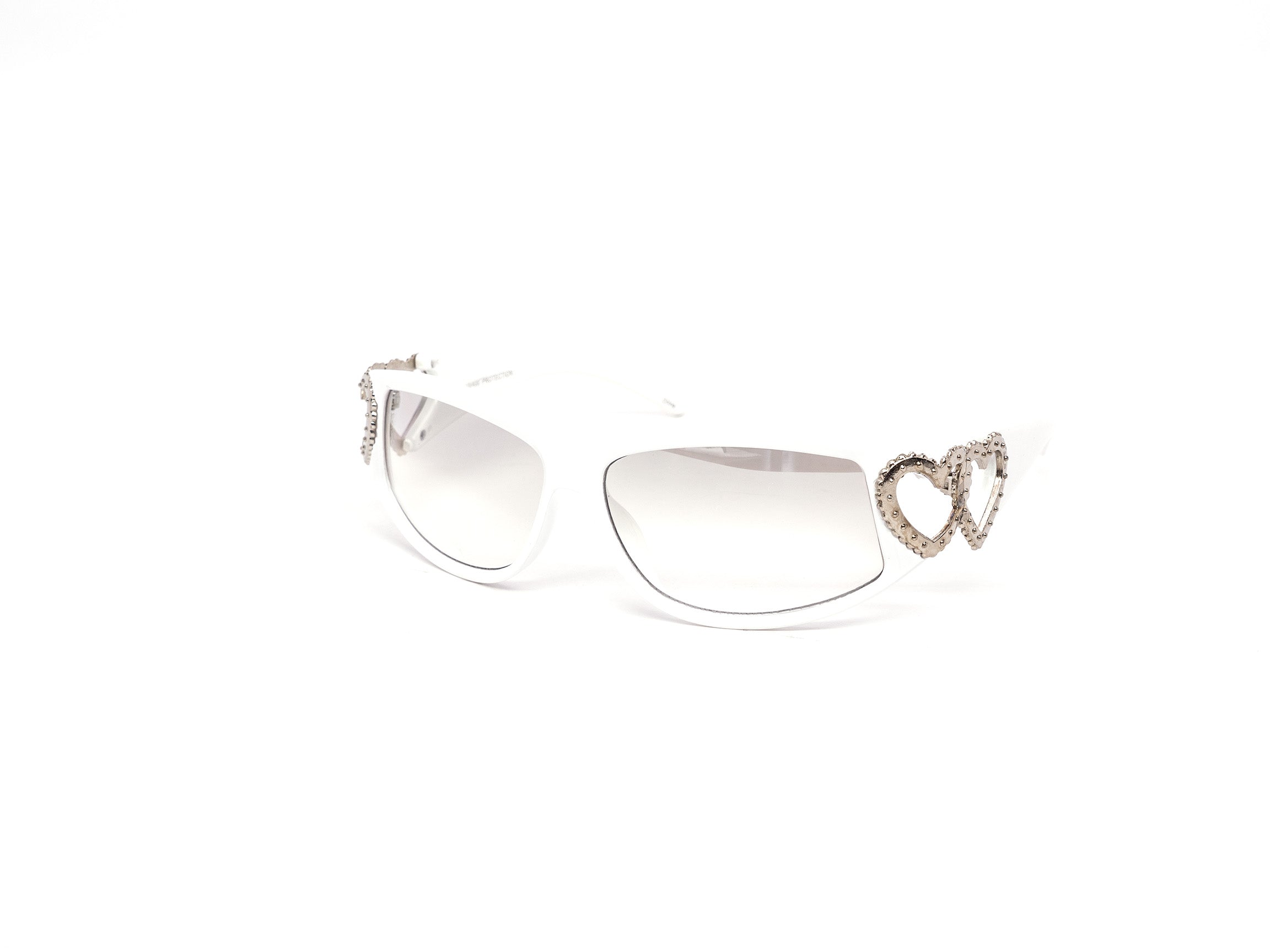 A fresh spin on the classic square frame silhouette, these sunglasses blend chunky, lens-on-frame construction with an array of gradient and dark lenses. Each frame is adorned with modern metal heart embellishments on the temples for a chic, contemporary touch.