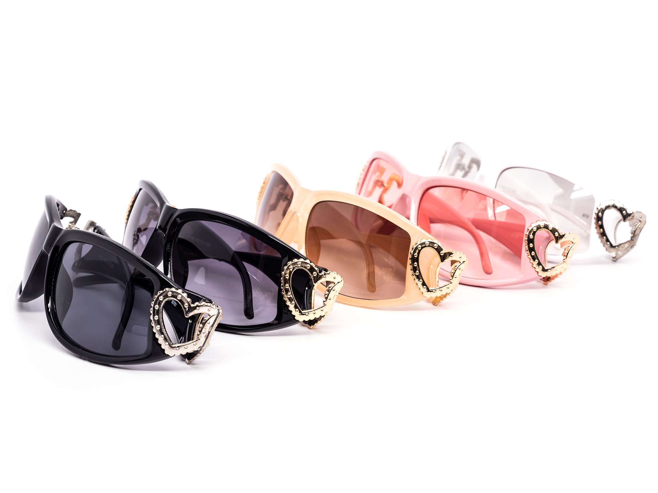 12 Pack: Chic Double Heart Wraparound Fashion Wholesale Sunglasses