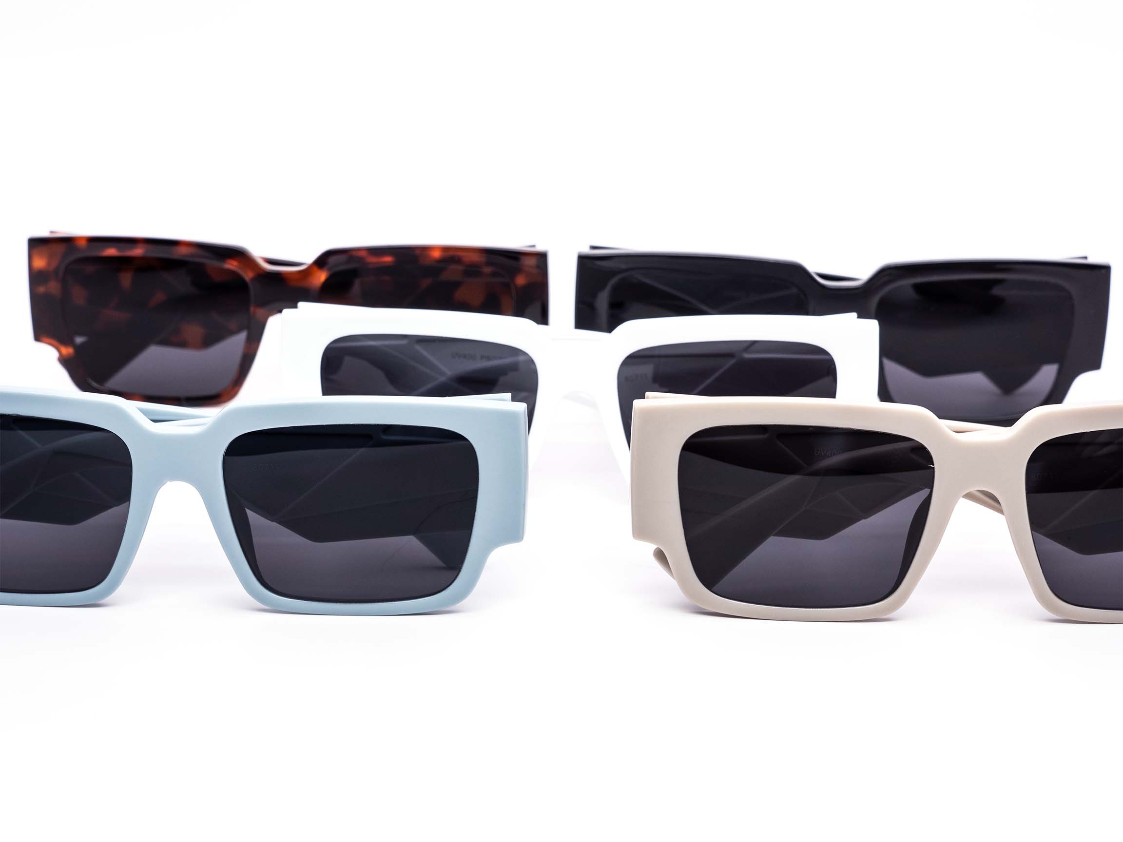 Elevate your style with these high-fashion, oversized sunglasses featuring a retro-inspired, super chunky rectangular frame. Available in a selection of frame types, each paired with dark lenses for a sleek, minimalist statement.