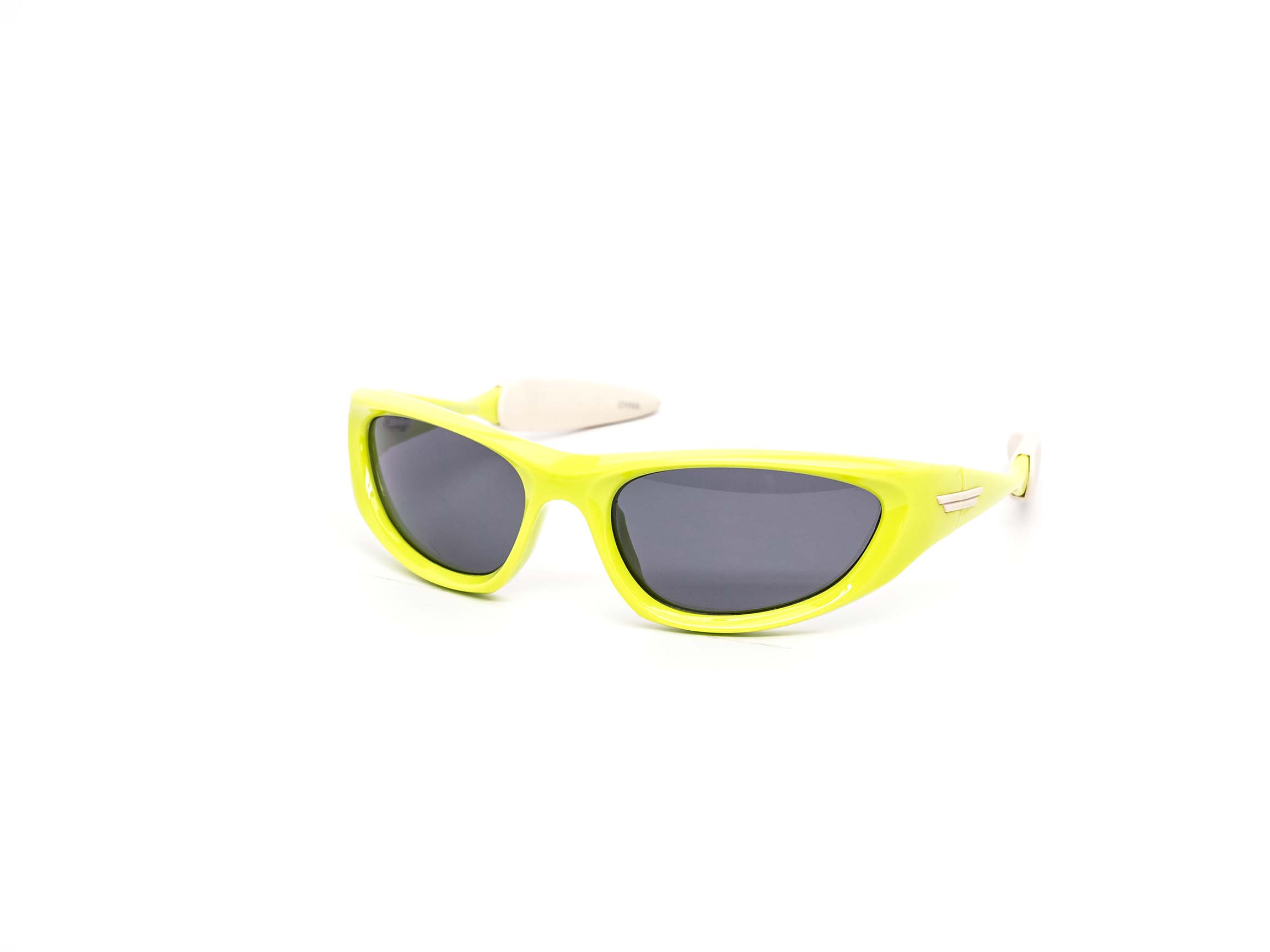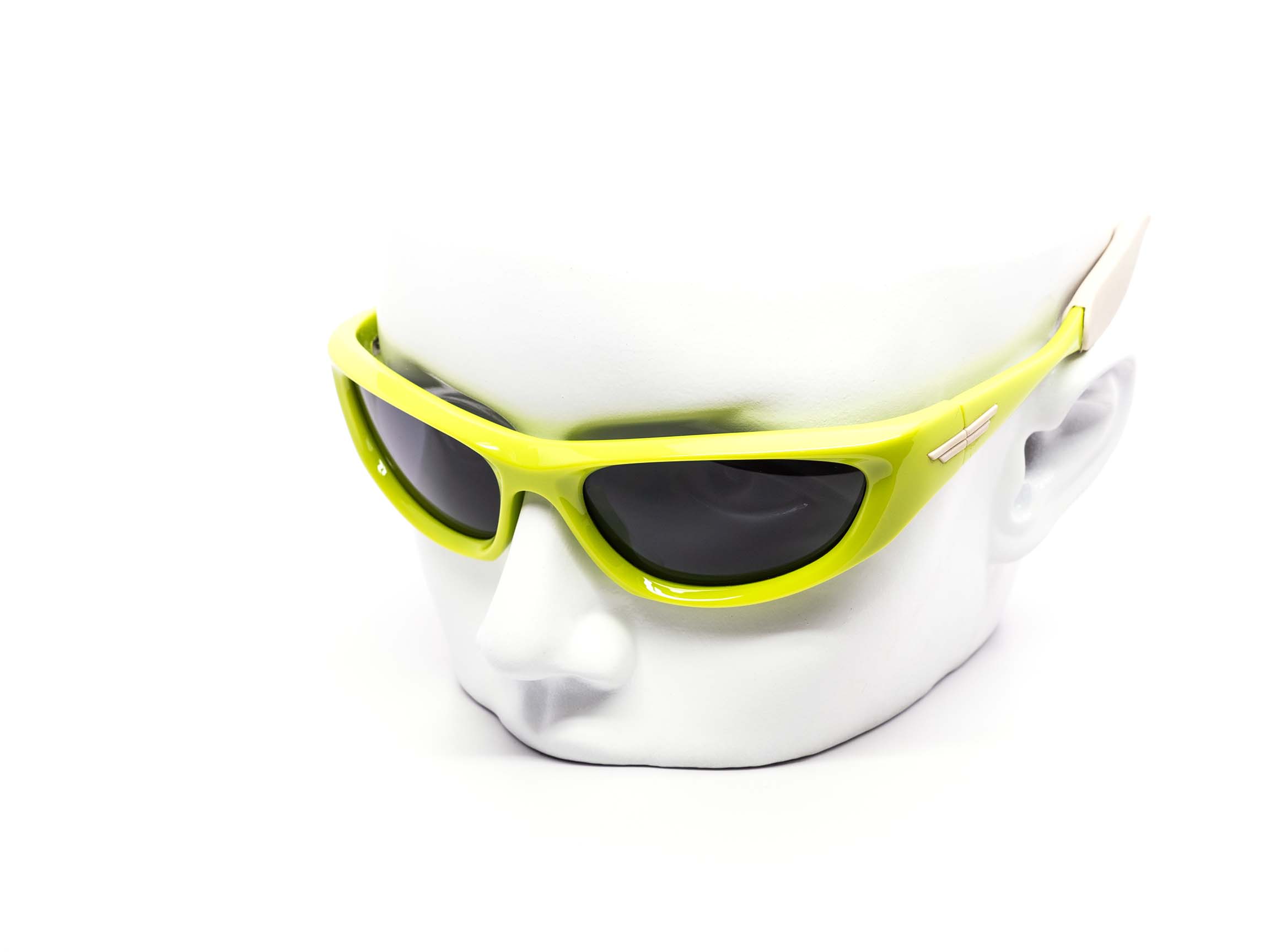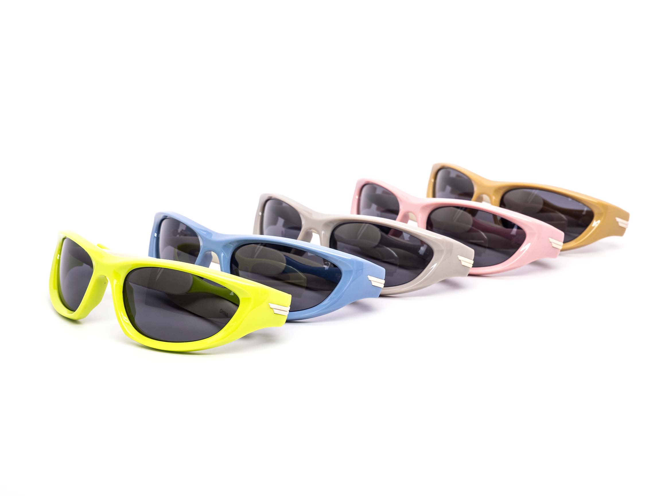 Striking high-fashion oval wraparound sunglasses featuring a sleek design, available in a vibrant selection of frame colors, all paired with dark lenses for a bold, contemporary look.