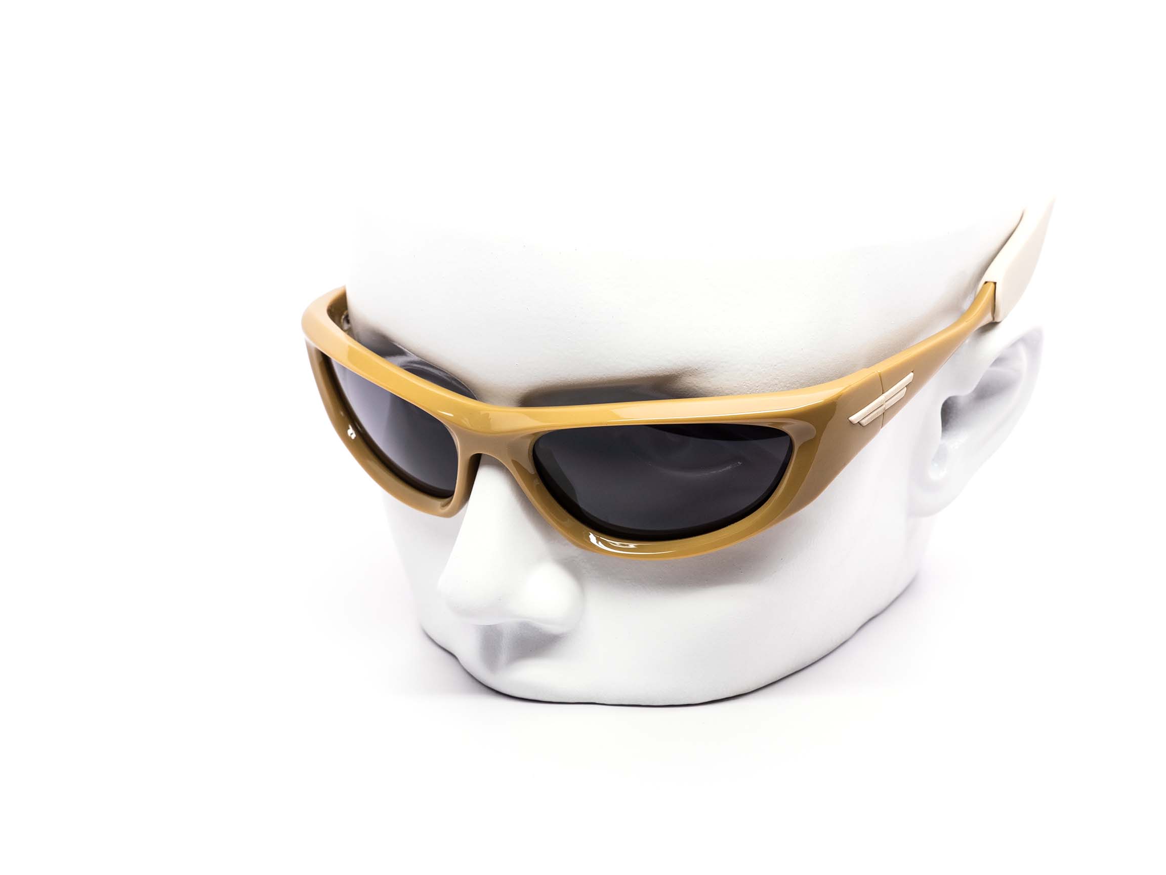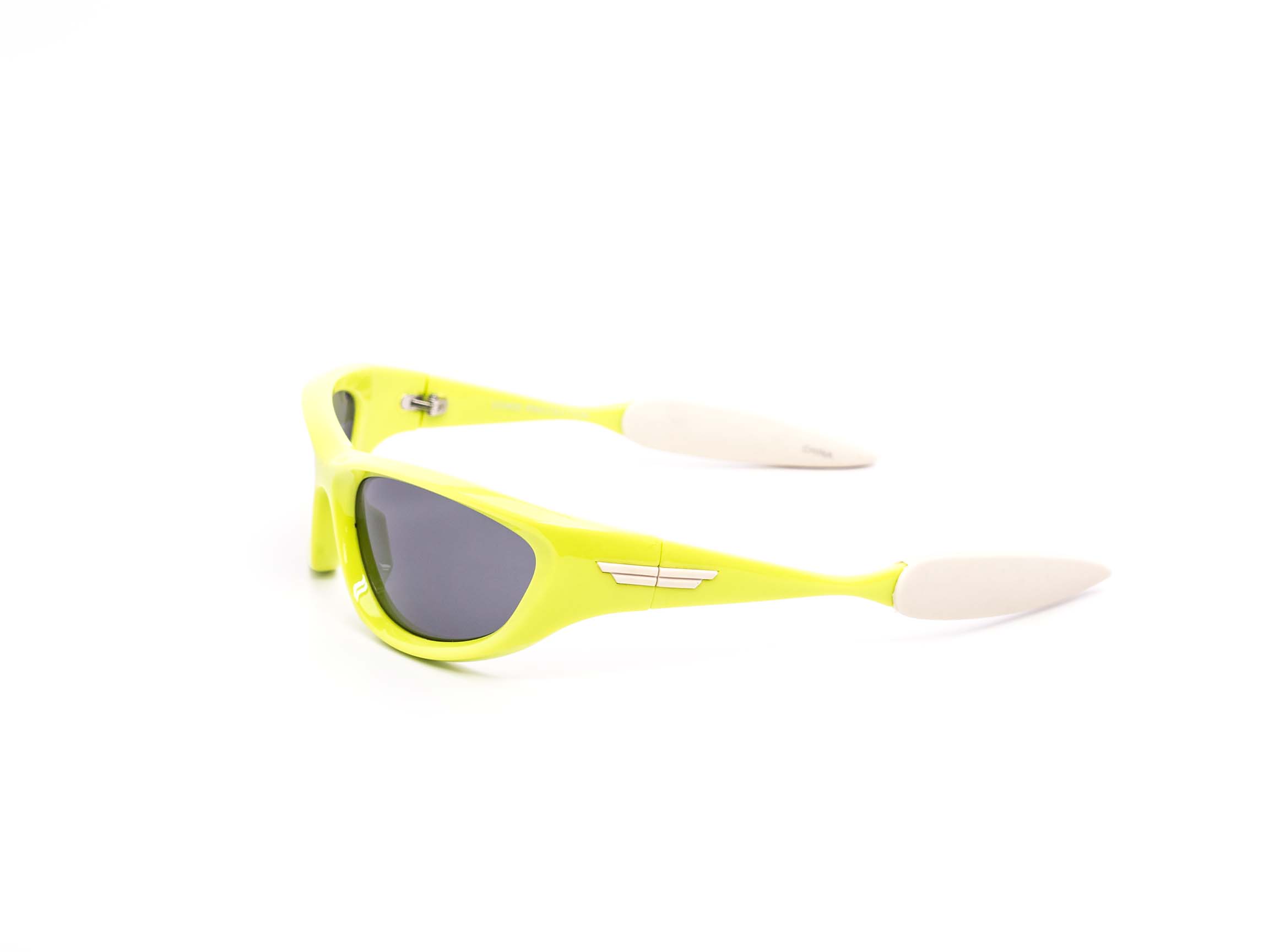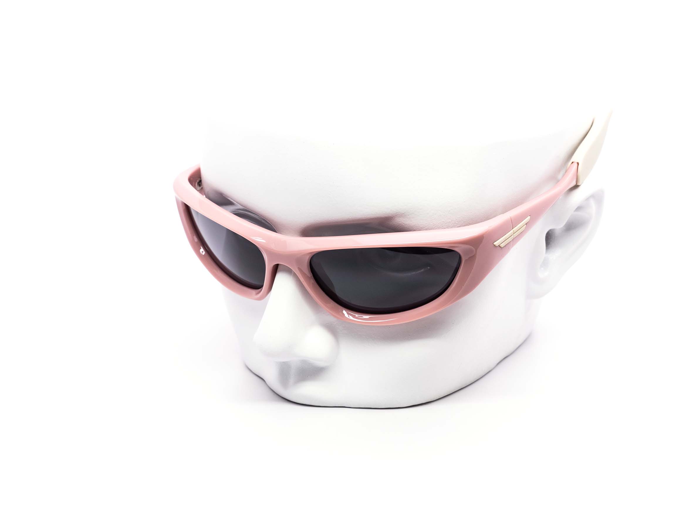 Striking high-fashion oval wraparound sunglasses featuring a sleek design, available in a vibrant selection of frame colors, all paired with dark lenses for a bold, contemporary look.