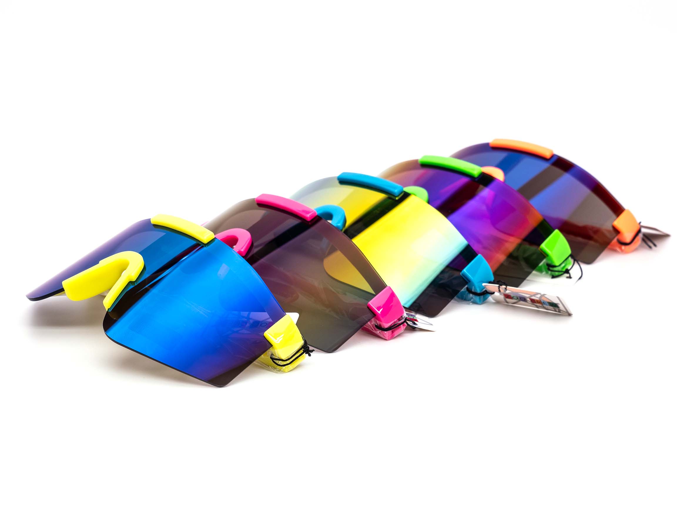 12 Pack: Kids Fluorescent Oversized Sports Shield Burnt Mirror Wholesale Sunglasses
