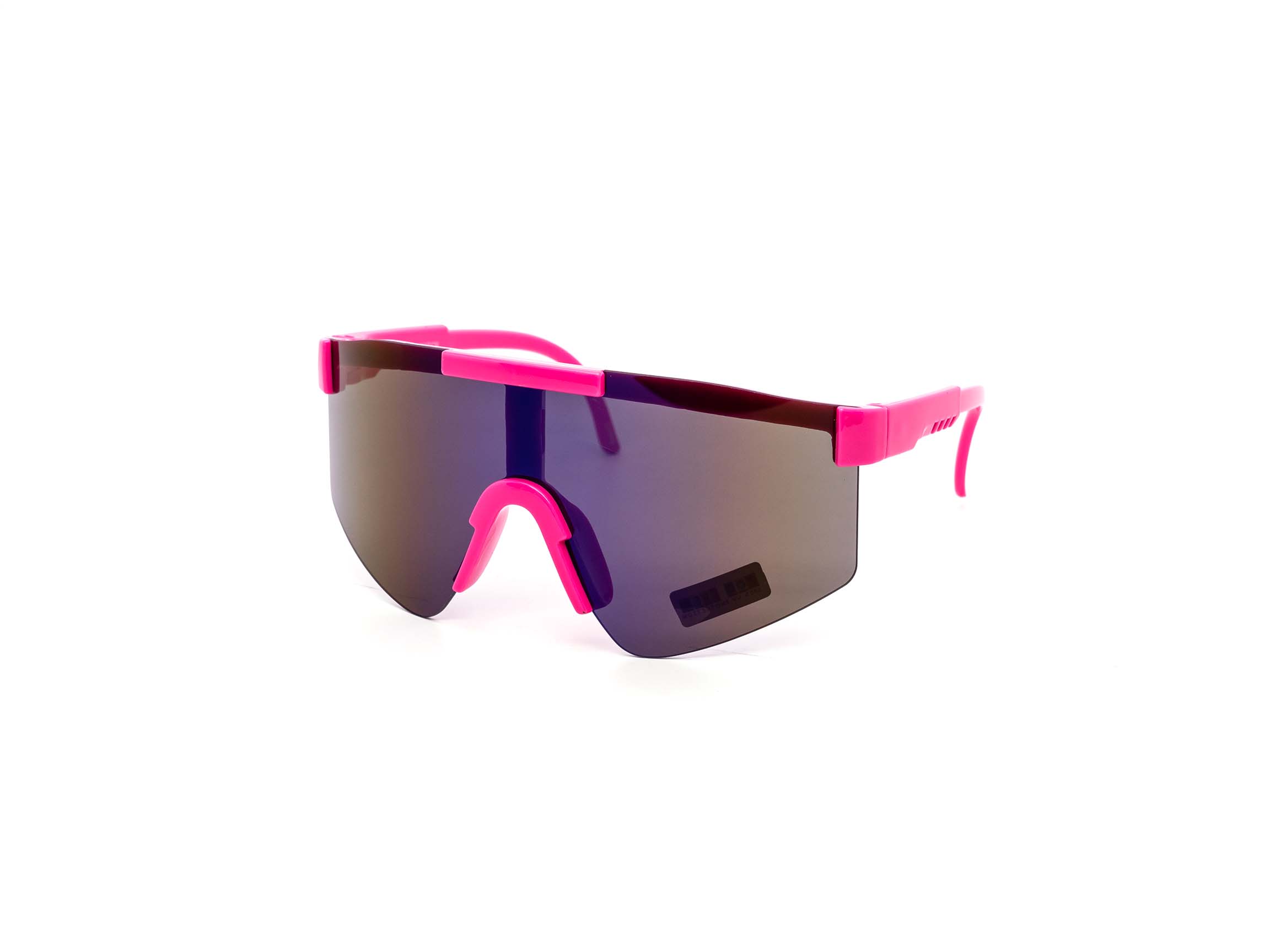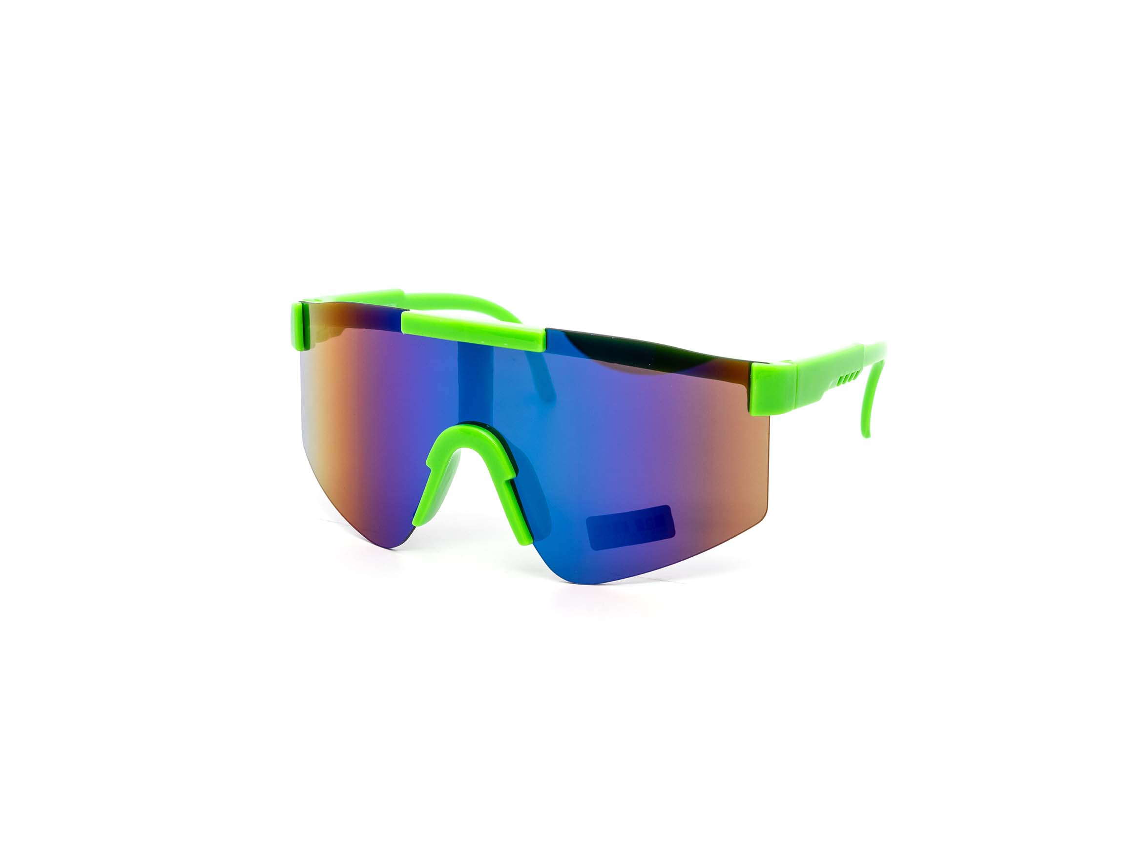 Rimless solid face shield design for the kiddos! These trendy shades come in assorted color mirror lens and 80s fluorescent colored frame combos.