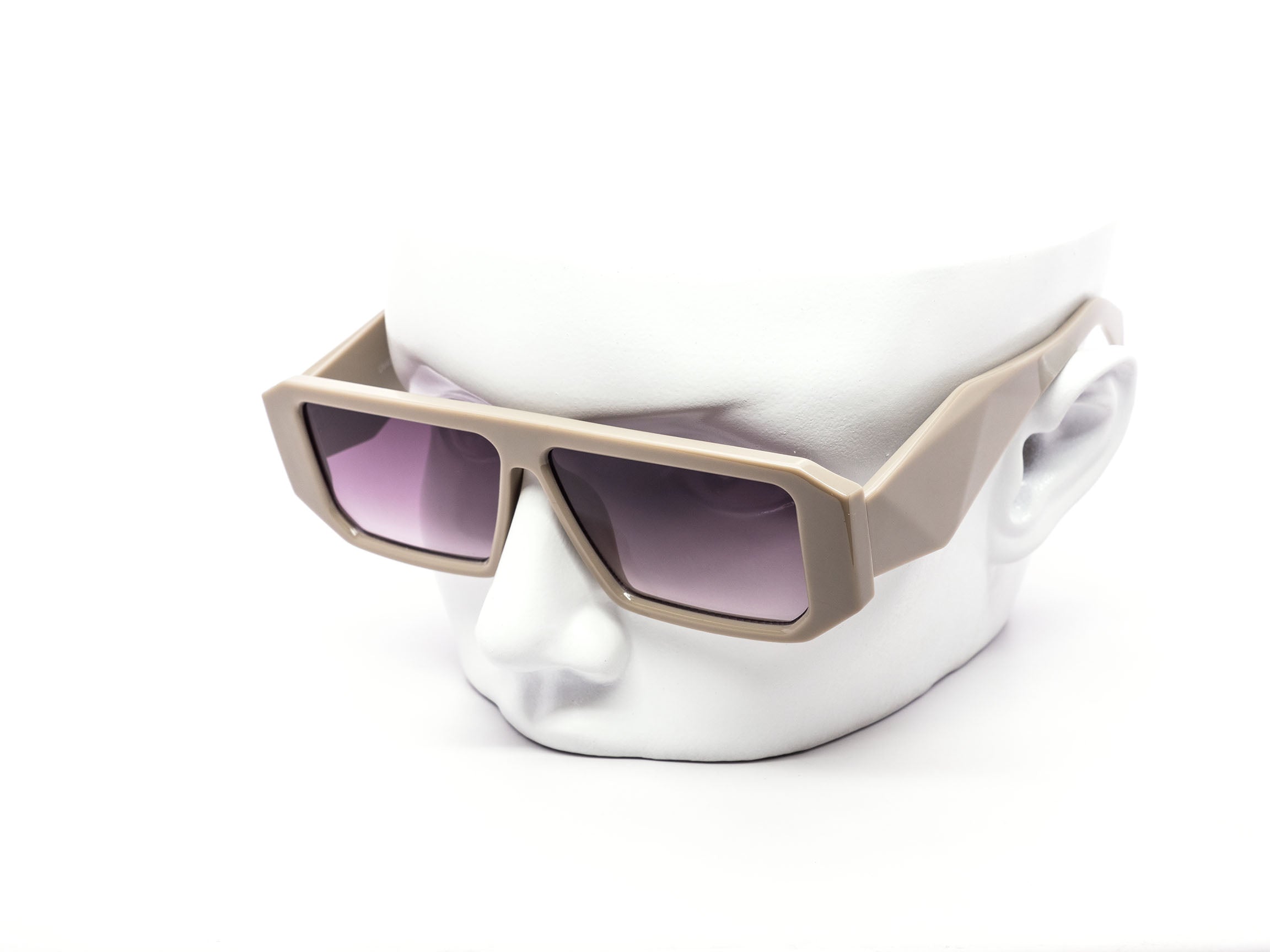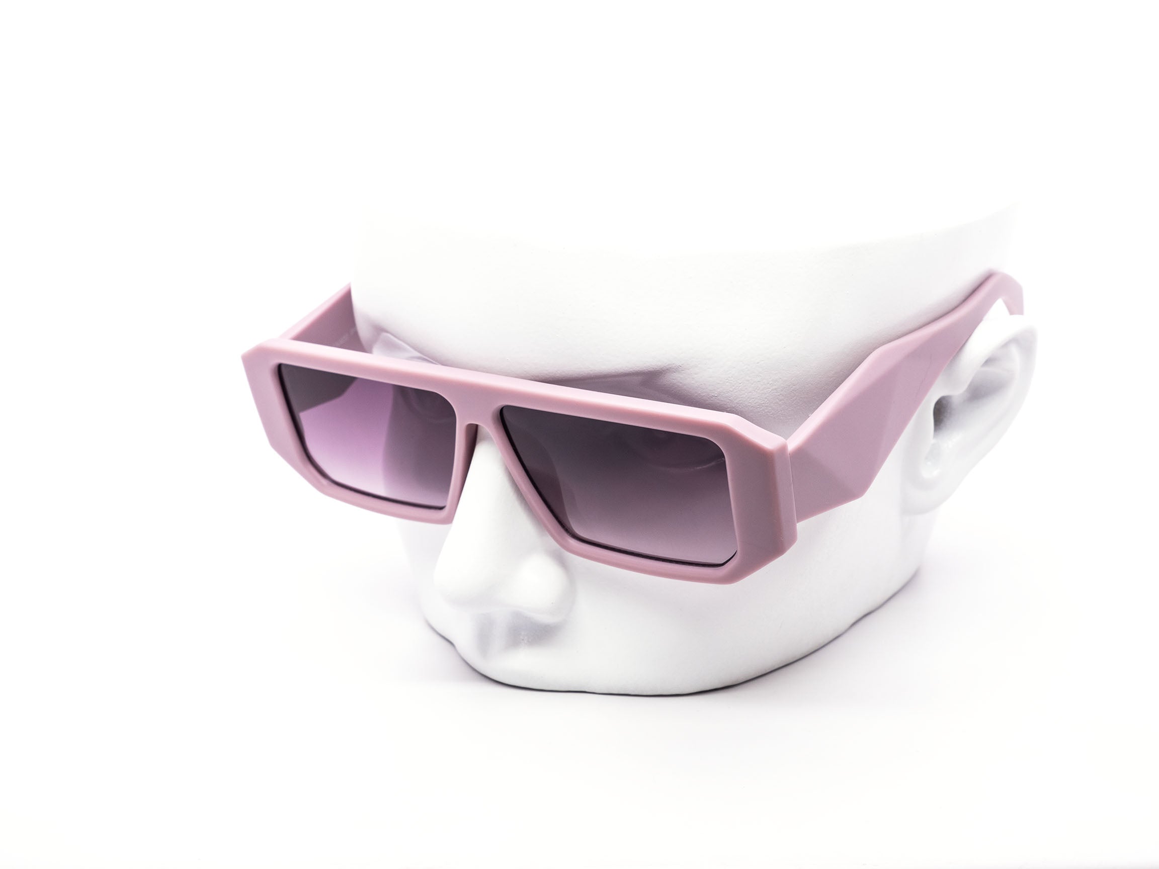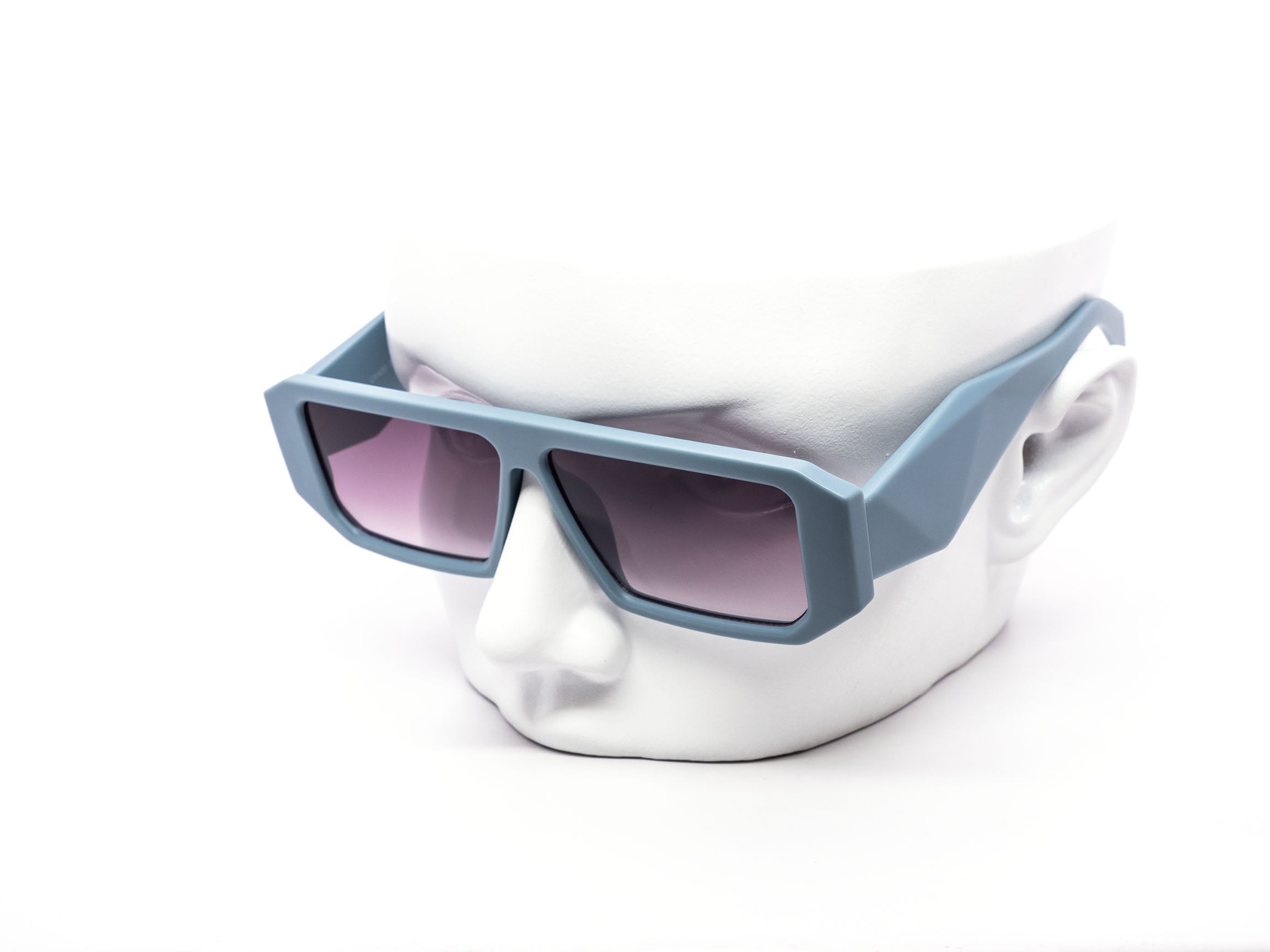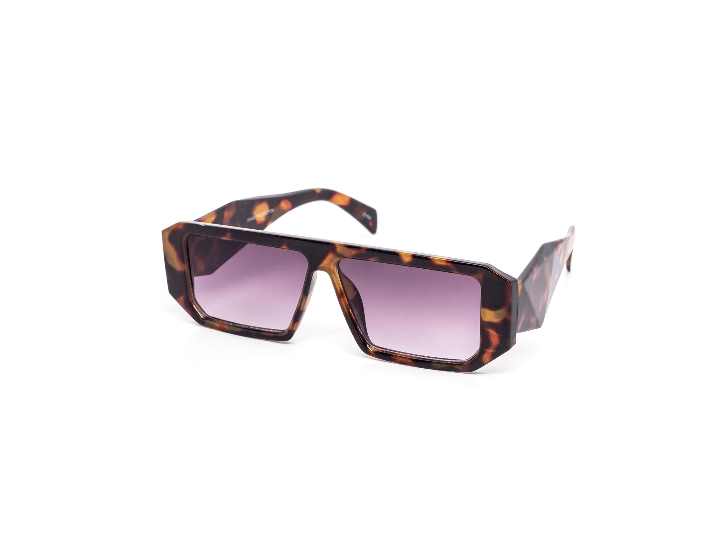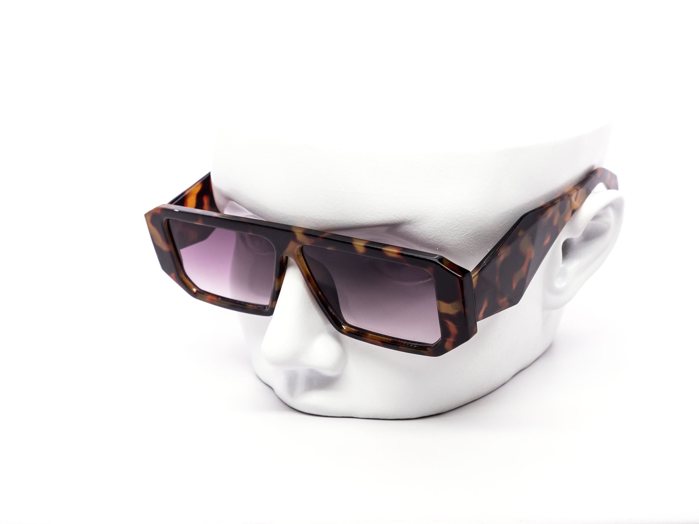Fashion-forward and bold, these sunglasses feature a chunky, angular frame with a geometric flair and thick temples. Each pair comes with a beautifully curated selection of frame types, all complementing the square dark lenses for a striking, abstract look.