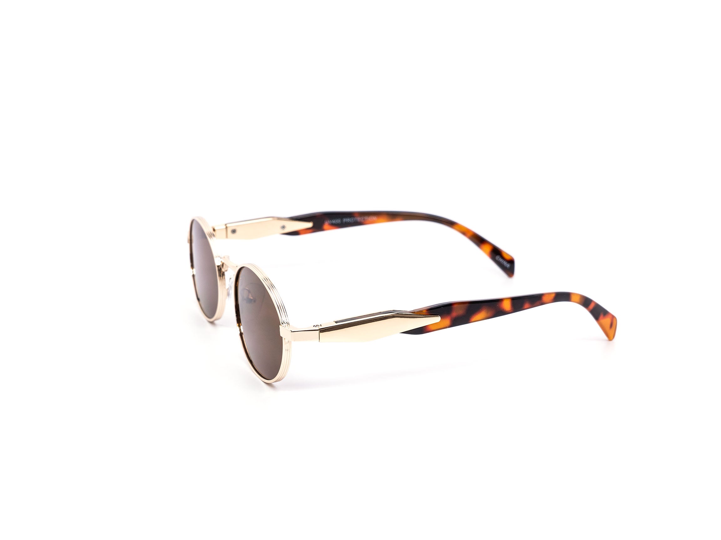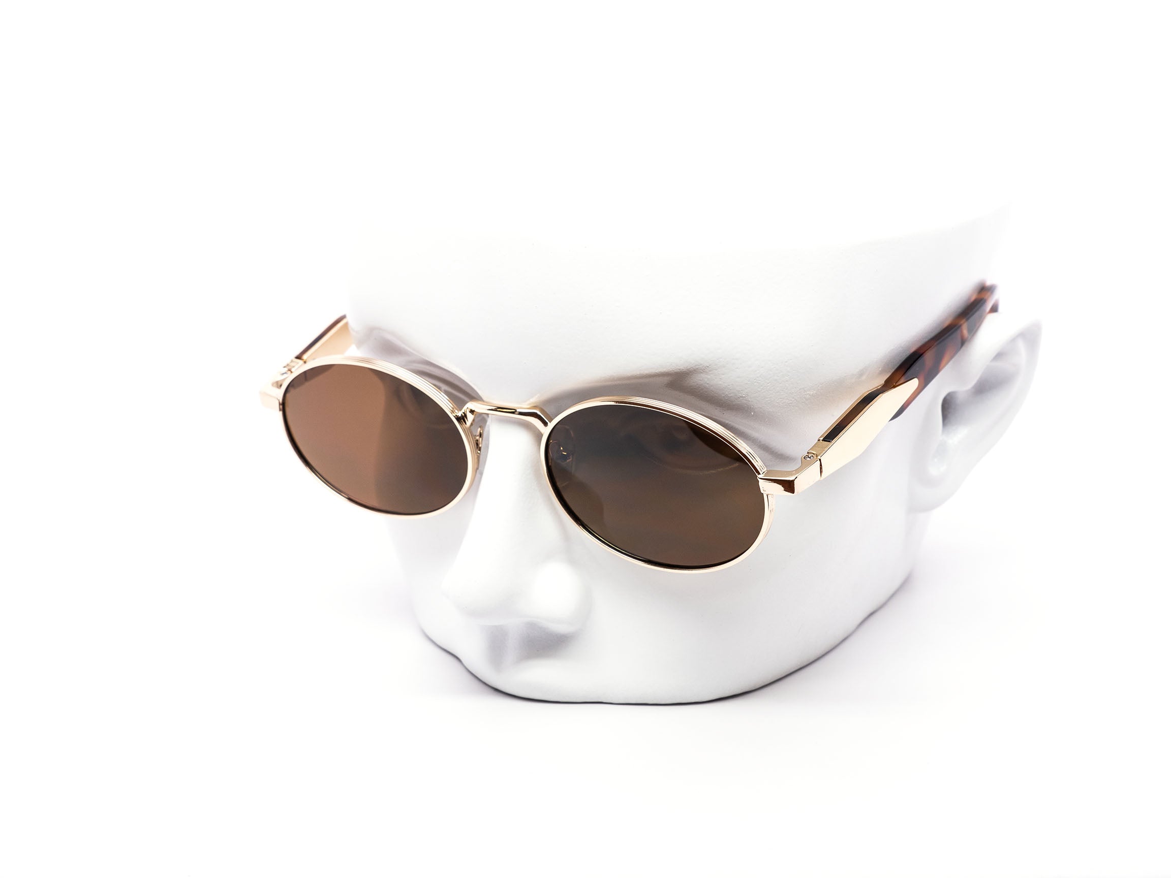 Elevate your style with our classy oval sunglasses, featuring gold and silver metal frames paired with a selection of brown, dark, and pink lenses. Crafted for durability, these frames offer both elegance and resilience.