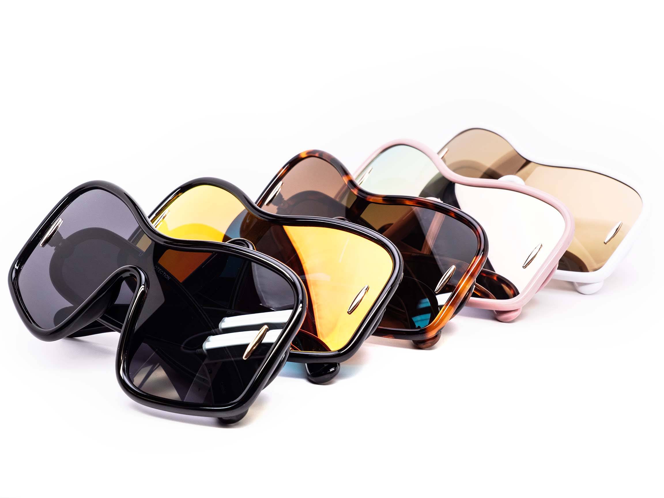Featuring a unique, modern oversized blobby frame with a distinctive uni-vision one-lens construction, these sunglasses come in a variety of frame and lens types for a versatile and stylish look.