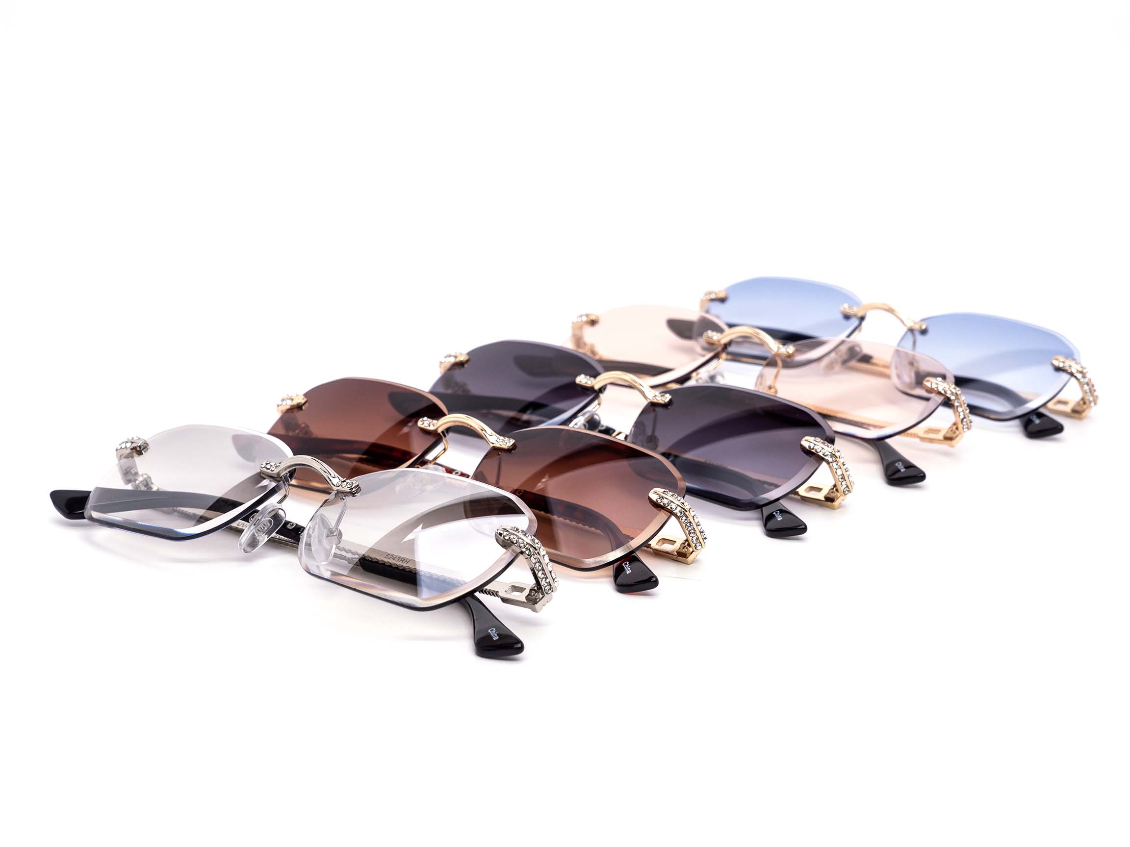 12 Pack: Rimless Miter-cut Rhinestone Metal Gradient Wholesale Sunglasses