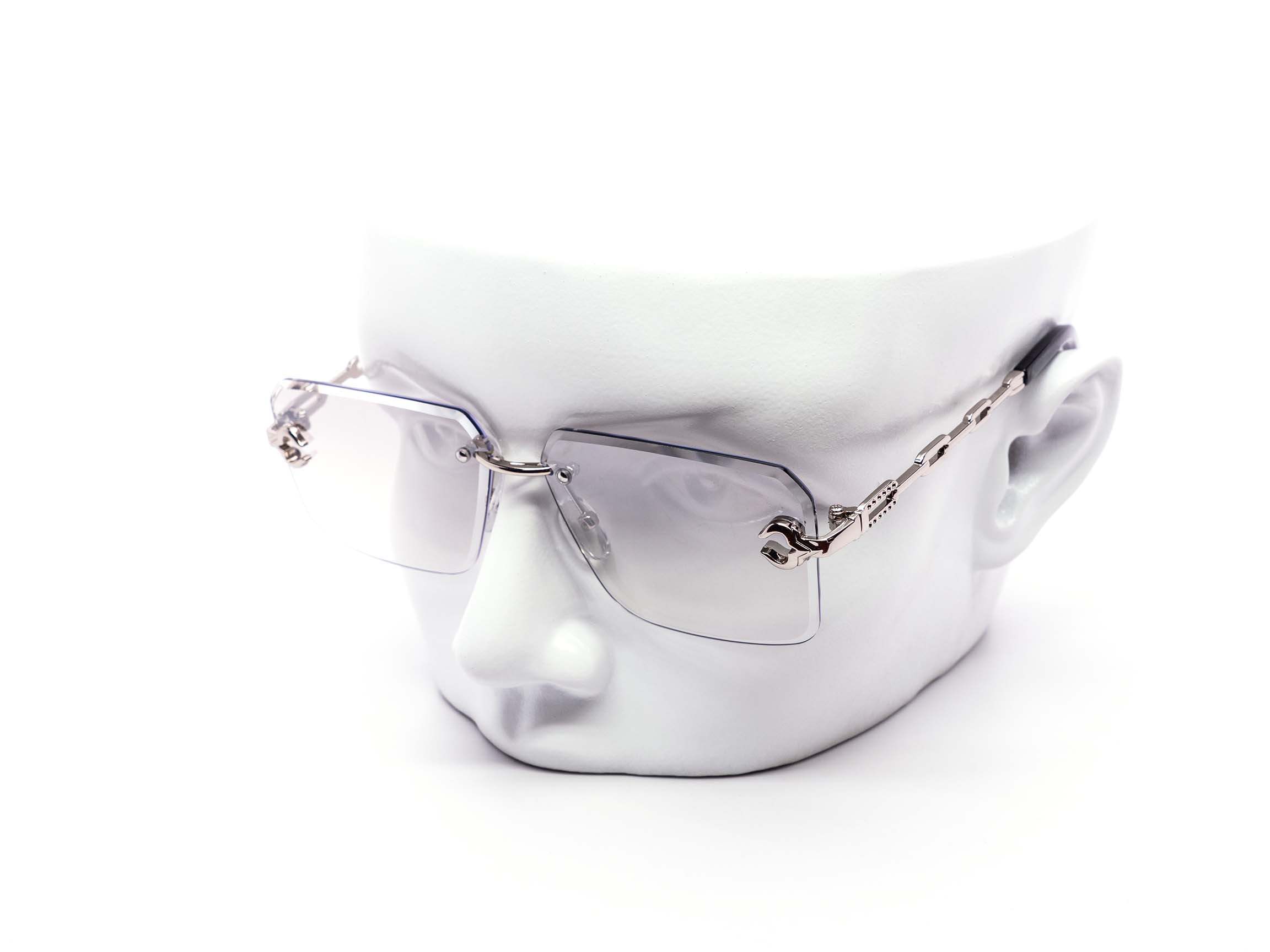 The 12 Pack Rimless Miter-cut Scorpion Metal Gradient Wholesale Sunglasses feature a sleek, minimalist design with perfectly assorted square gradient lenses set in assorted metal frames.
