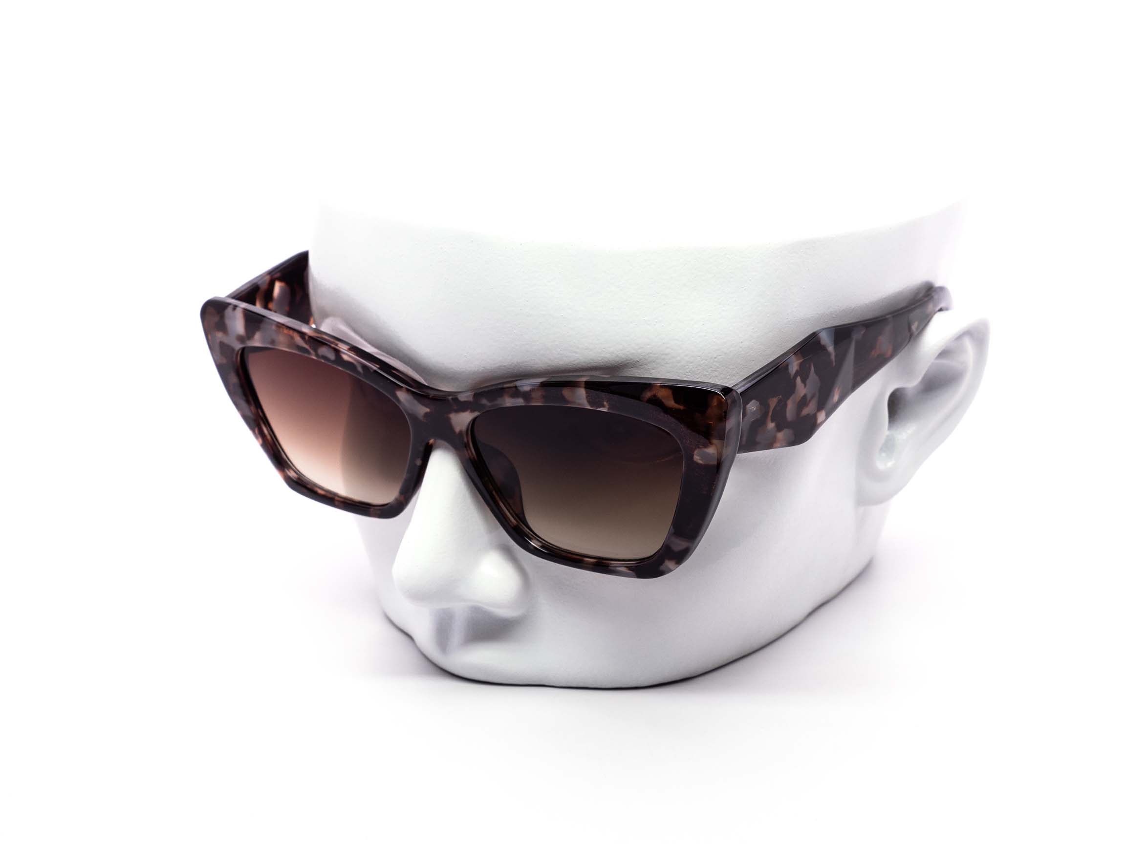 This collection of 12 stylish Cateye frames features a bold round geometric pattern and a thick abstract temple design with coordinating dark and gradient lenses.