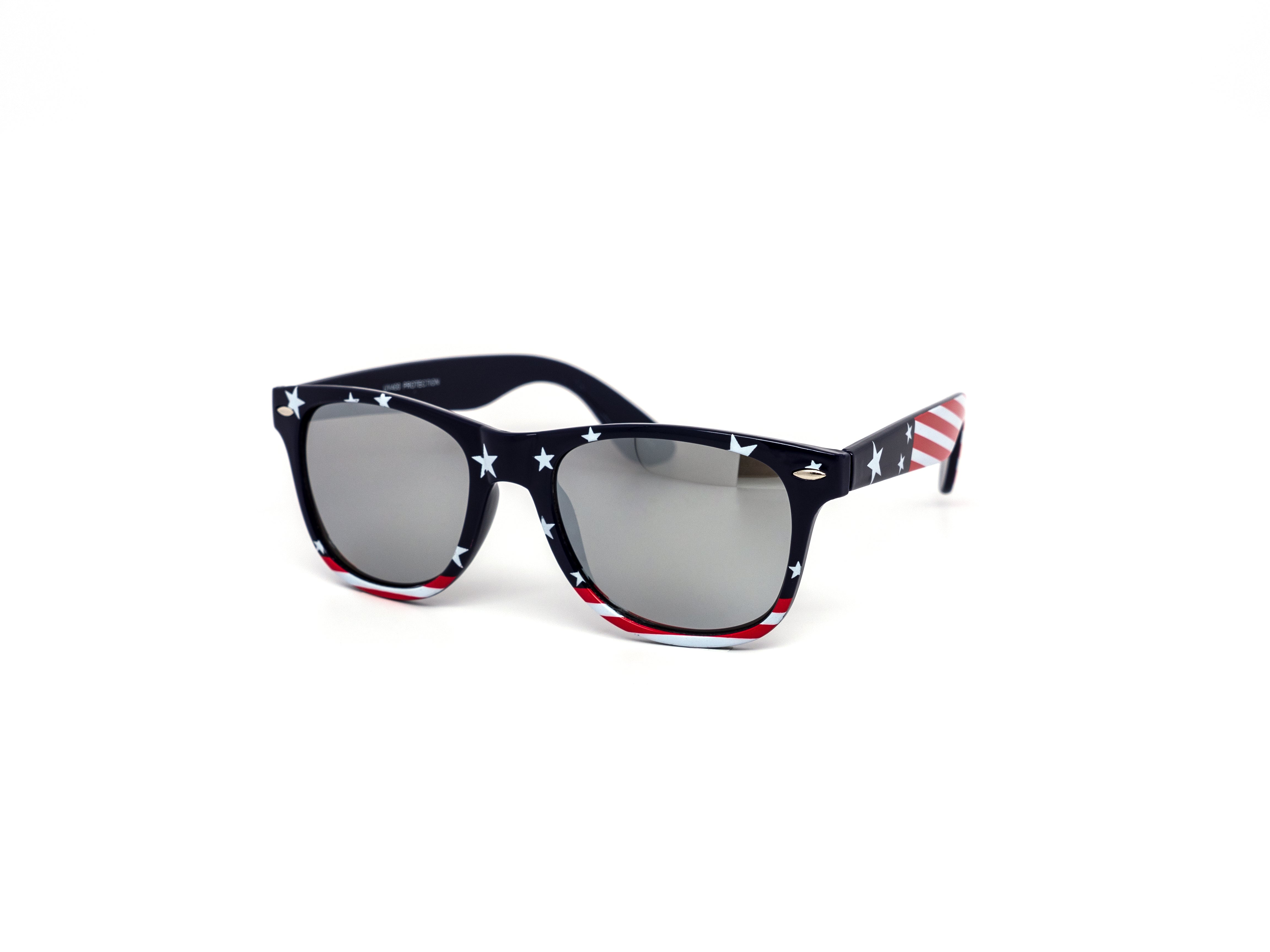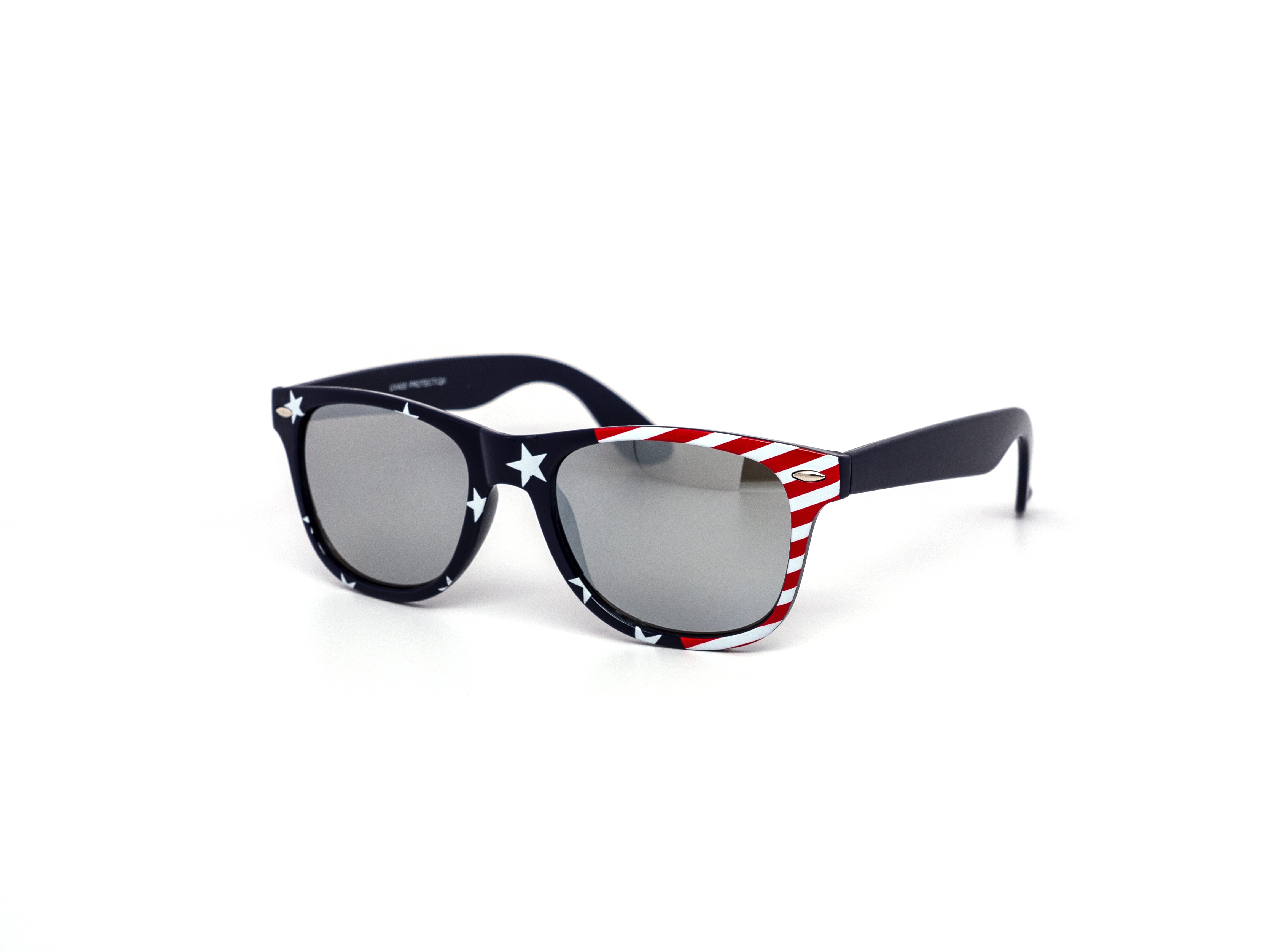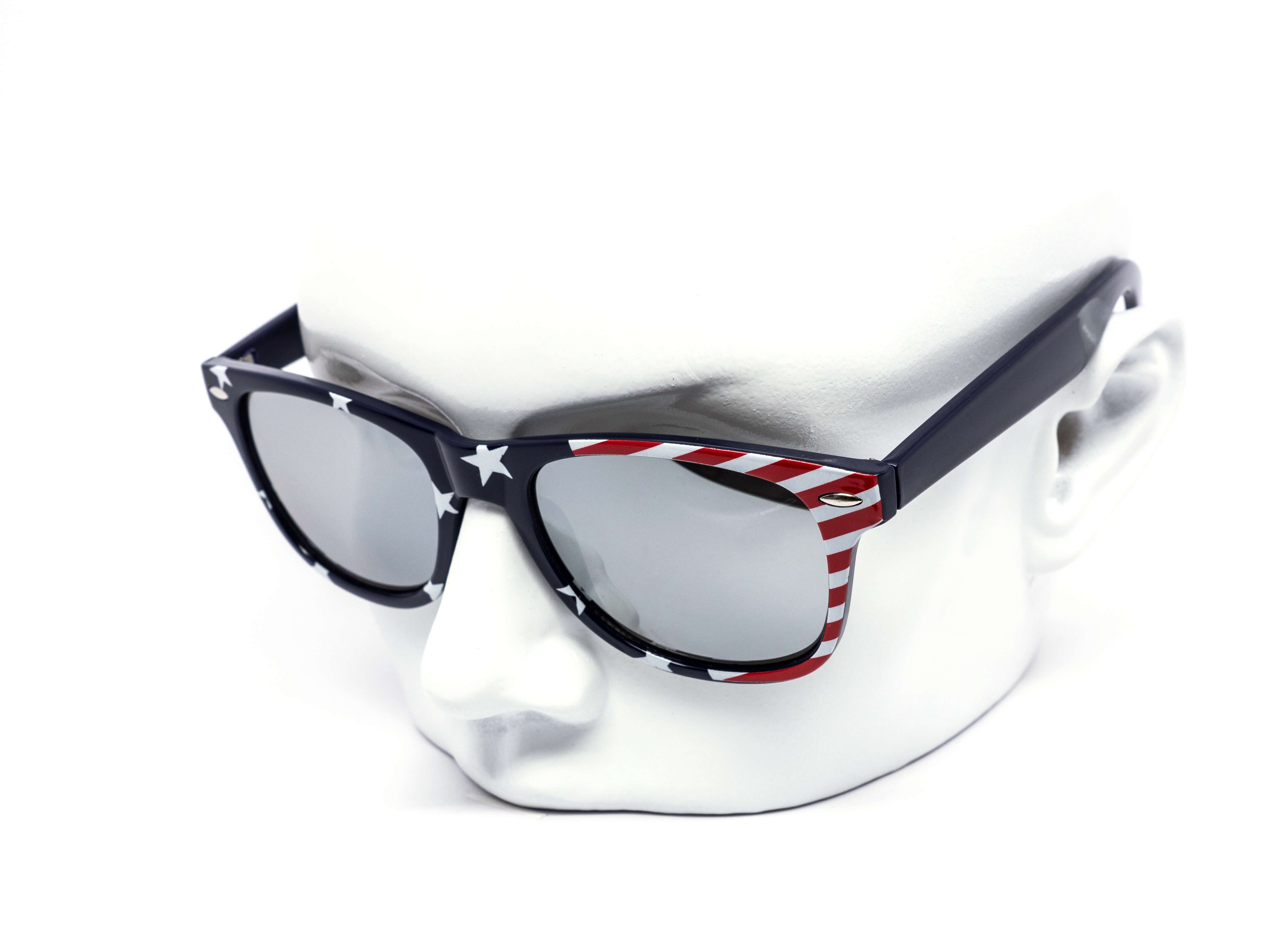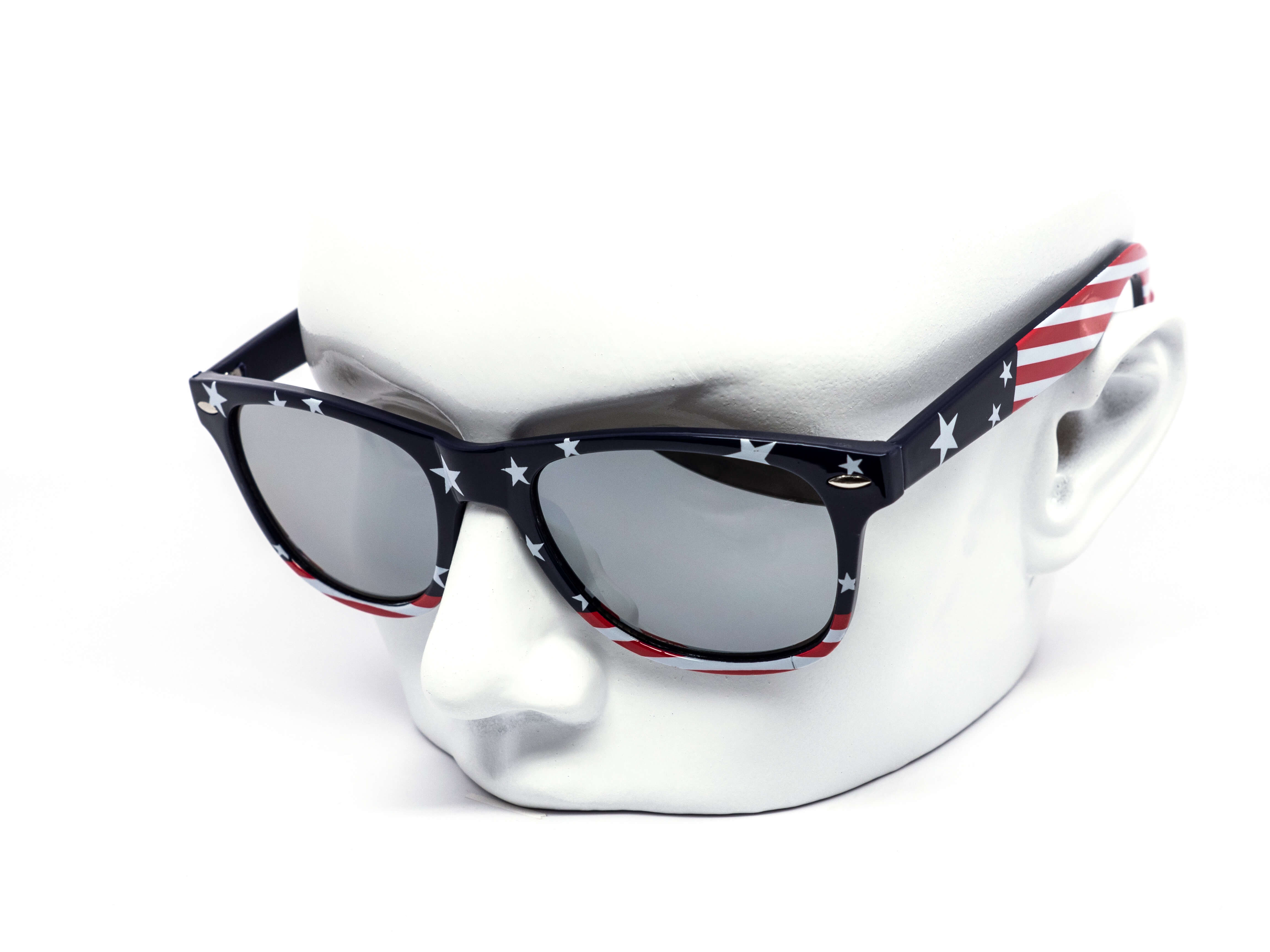 Star spangled USA Flag print on classic frame with mirror lens. Comes assorted in two variations of American flag patterns. 6 flag pattern throughout the frame, 6 with nflag pattern on the temples. Let's go USA!