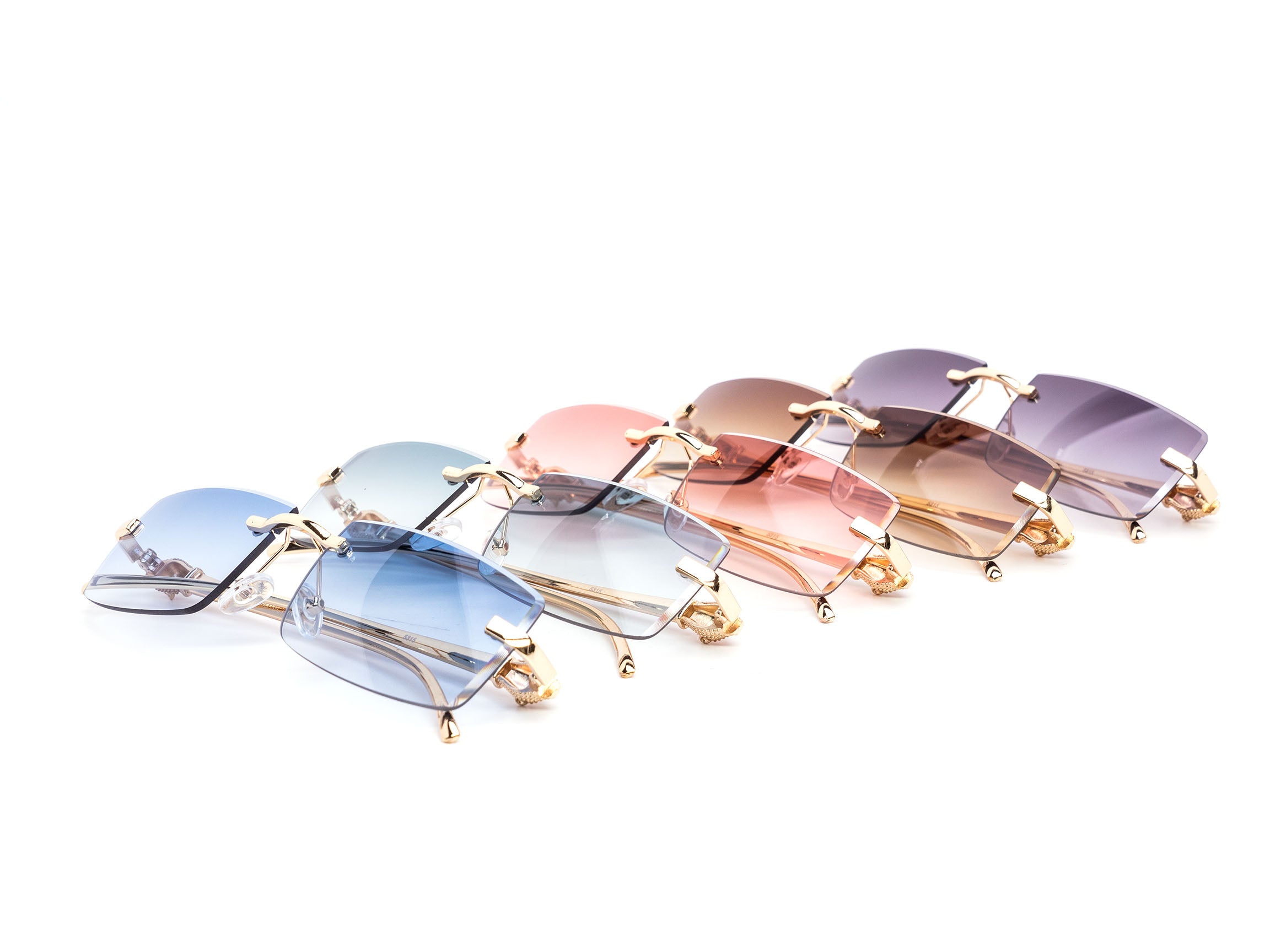 12 Pack: Jaguar-Inspired Feline Rimless Color Gradient Wholesale Sunglasses