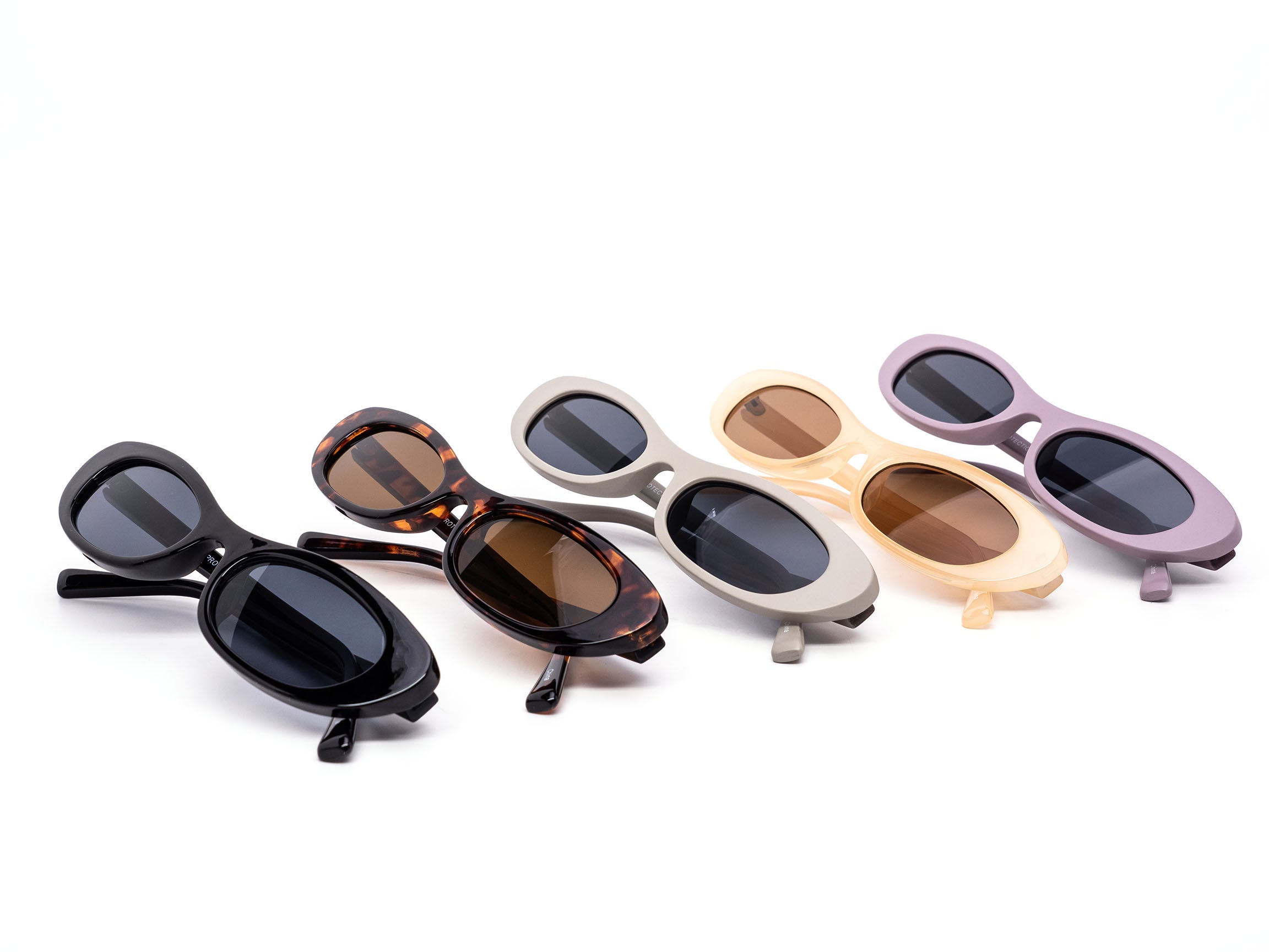 - Assorted colors: Black, Tortoise, Matte Grey, Nude, and Matte Violet