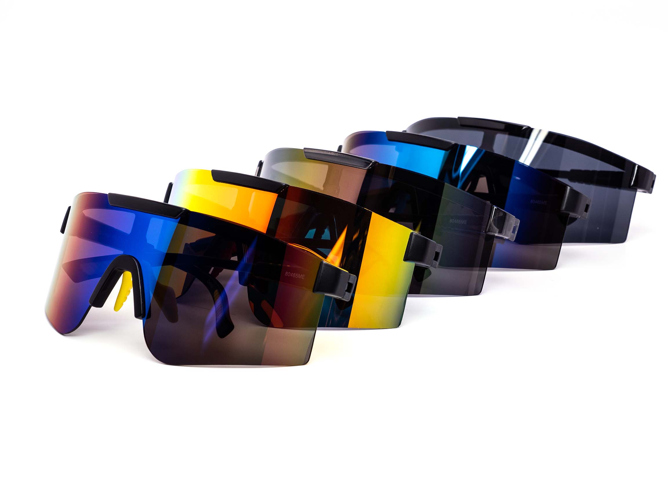 12 Pack: Splatter Oversized Sports Shield Burnt Mirror Wholesale Sunglasses