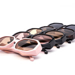 These modern chunky sunglasses feature unique blocky geometric frames with thick, oversized designs perfect for making a statement. A blend of stylish frame and lens color combinations are pre-mixed in each dozen, offering versatility for daily wear, festivals, raves, and concerts.