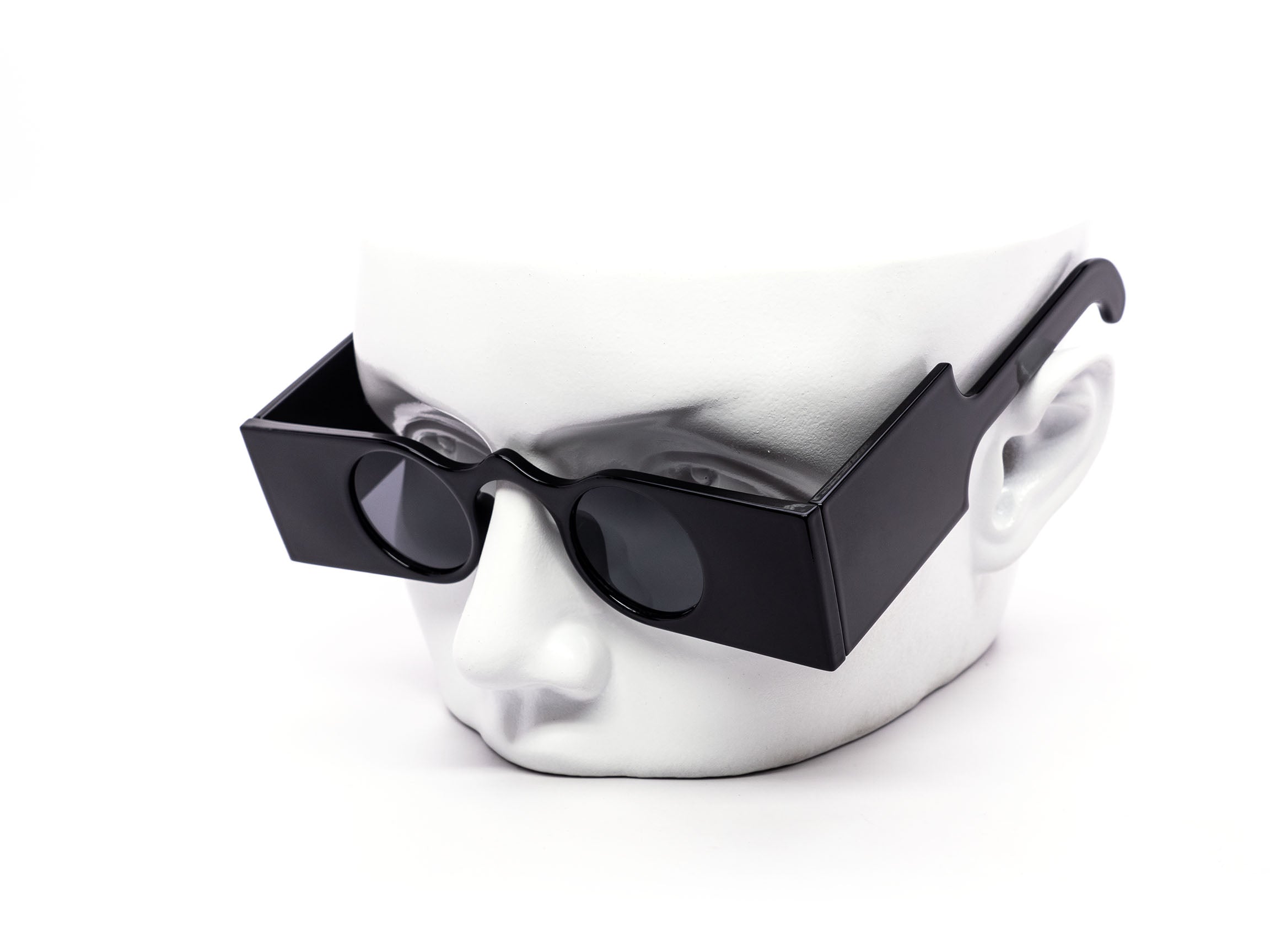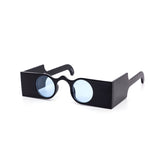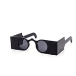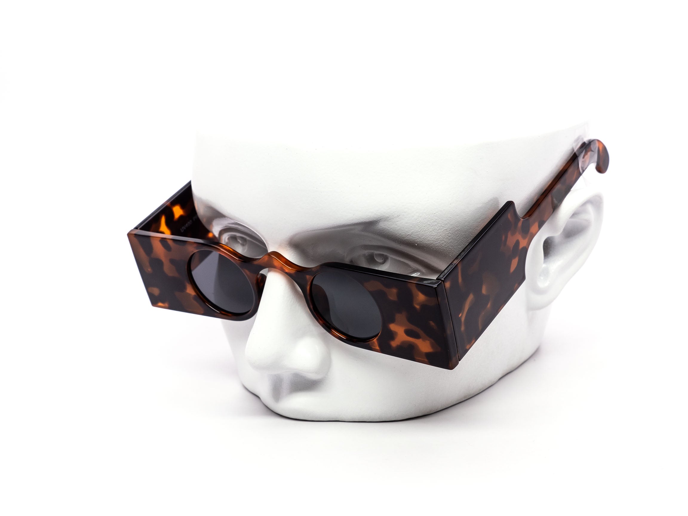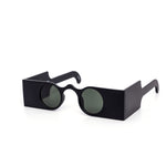 These bold, statement-making sunglasses feature super blocky square frames that contrast with round lenses, offering a unique and daring look.