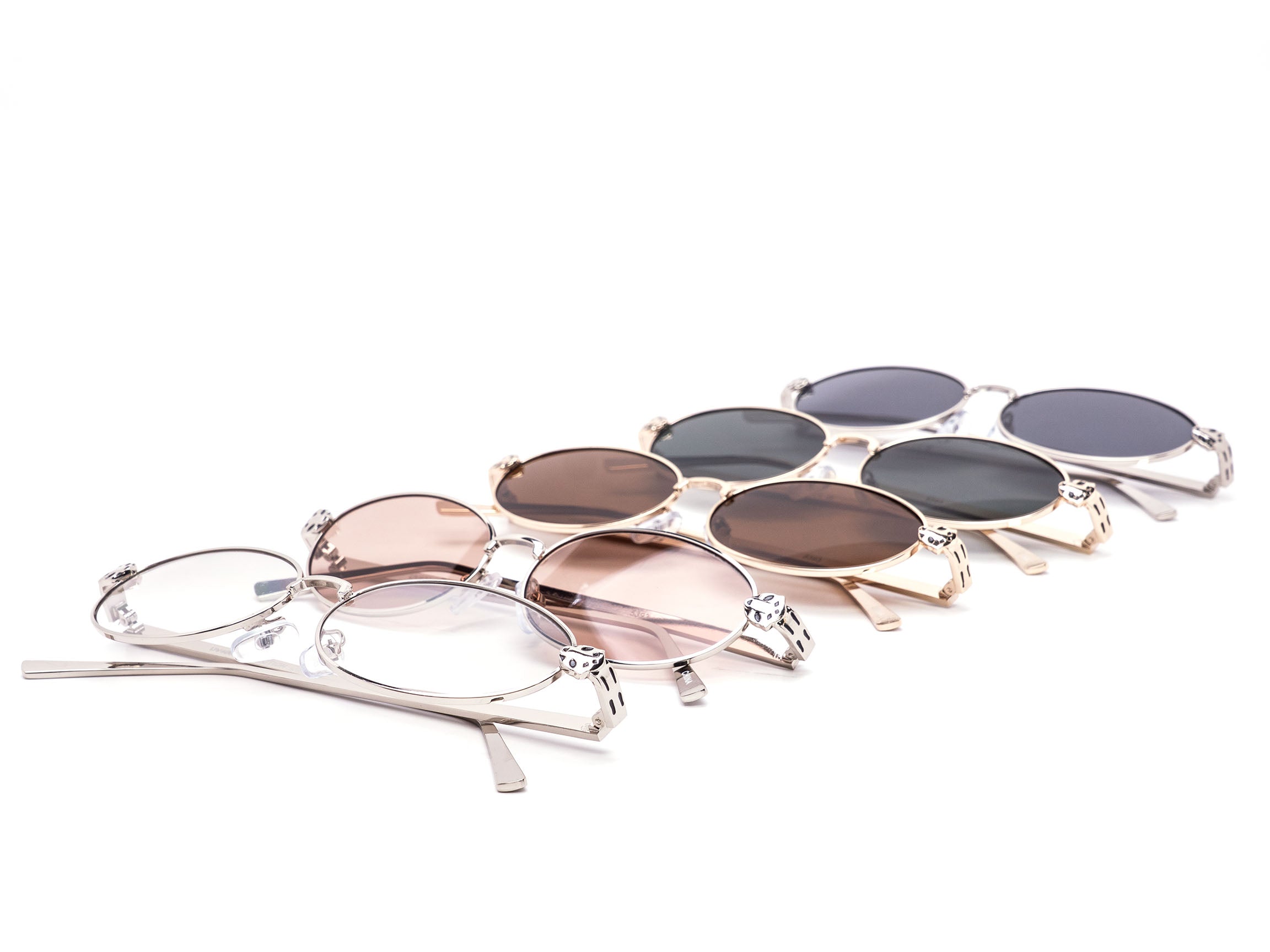 Trendy oval metal style with subtle leopard pattern accents on the temples. Lightweight feel with a clean, timeless silhouette that sells across seasons. Assorted five understated color combinations packed in one dozen.