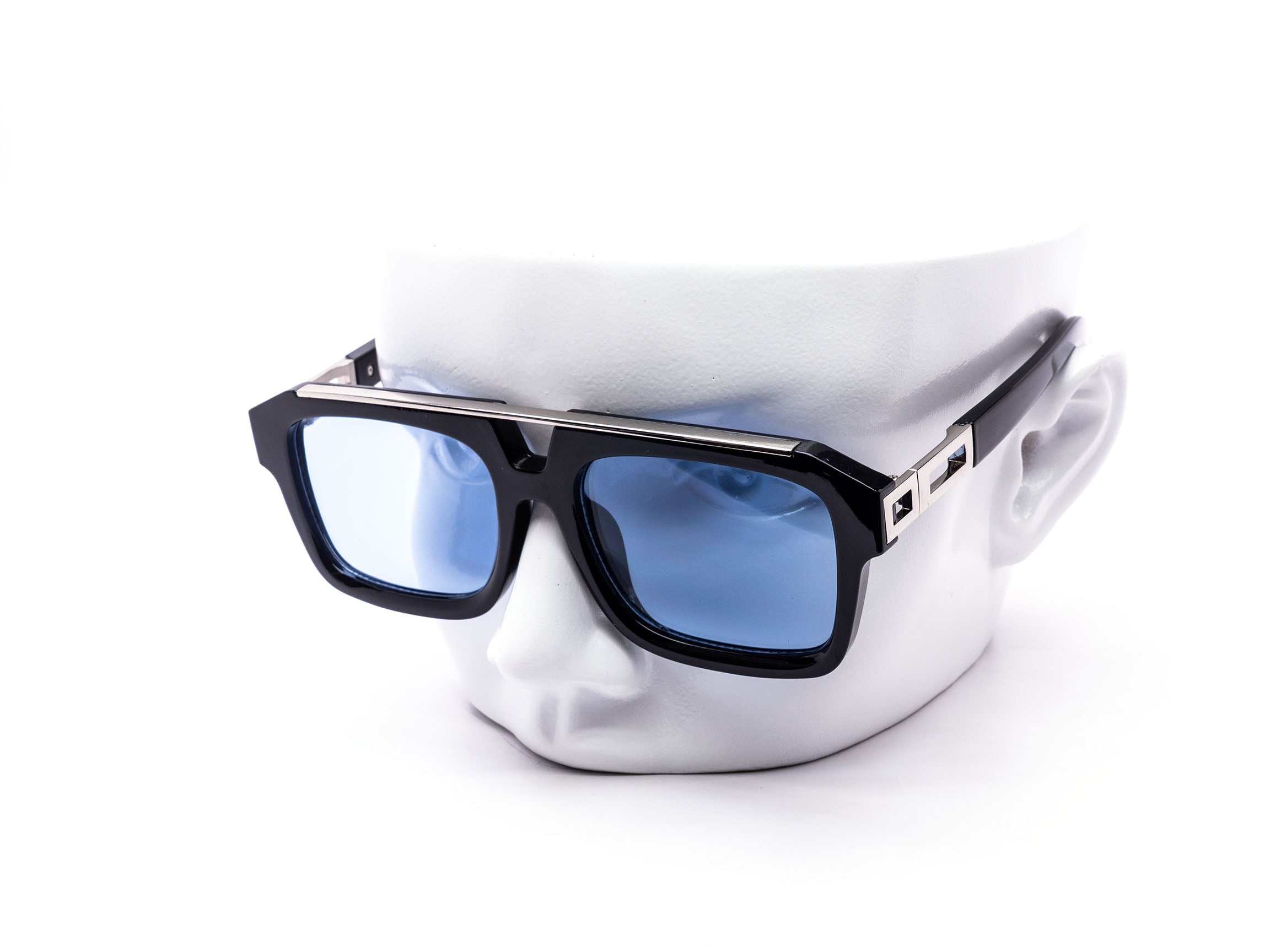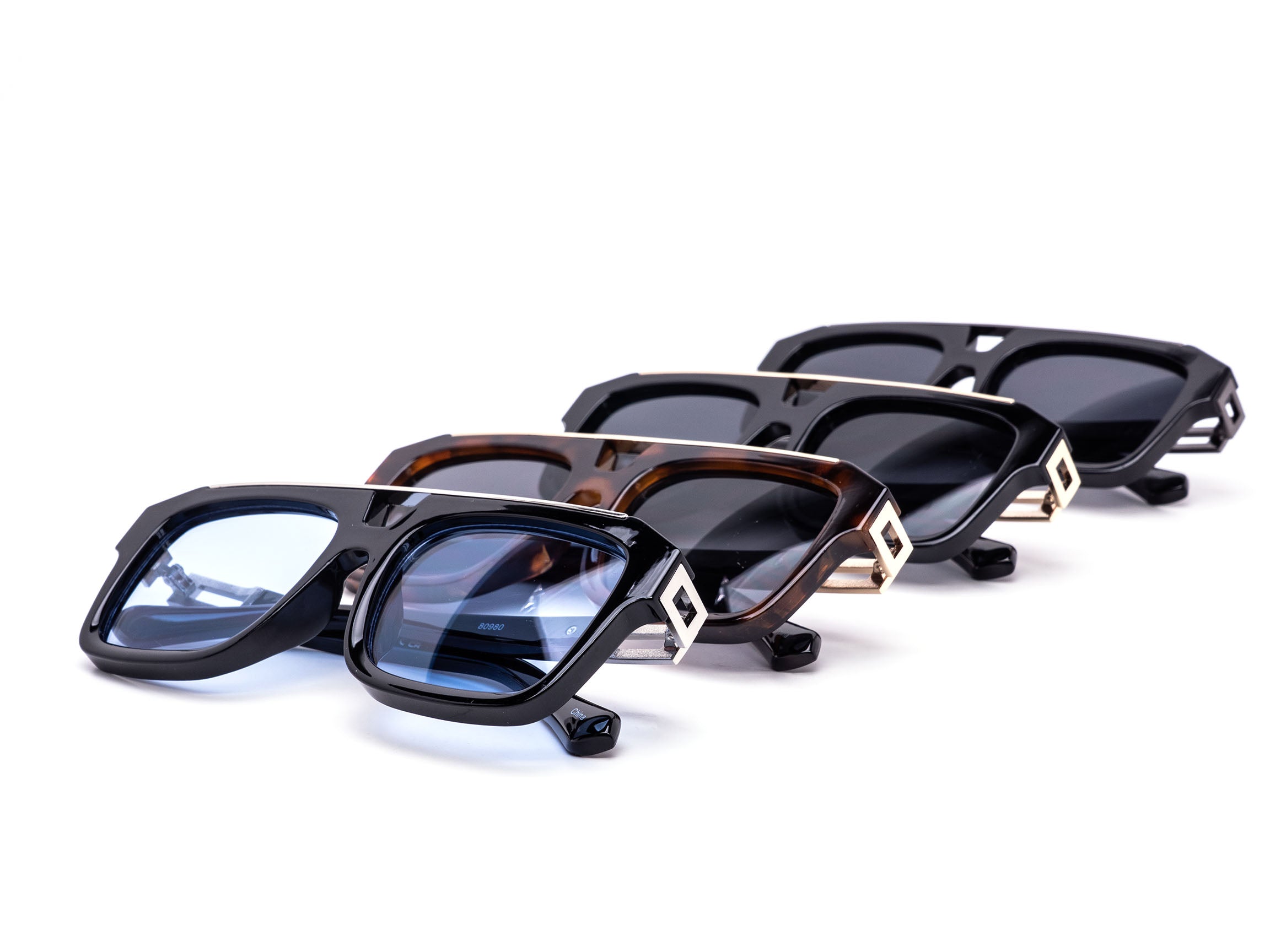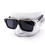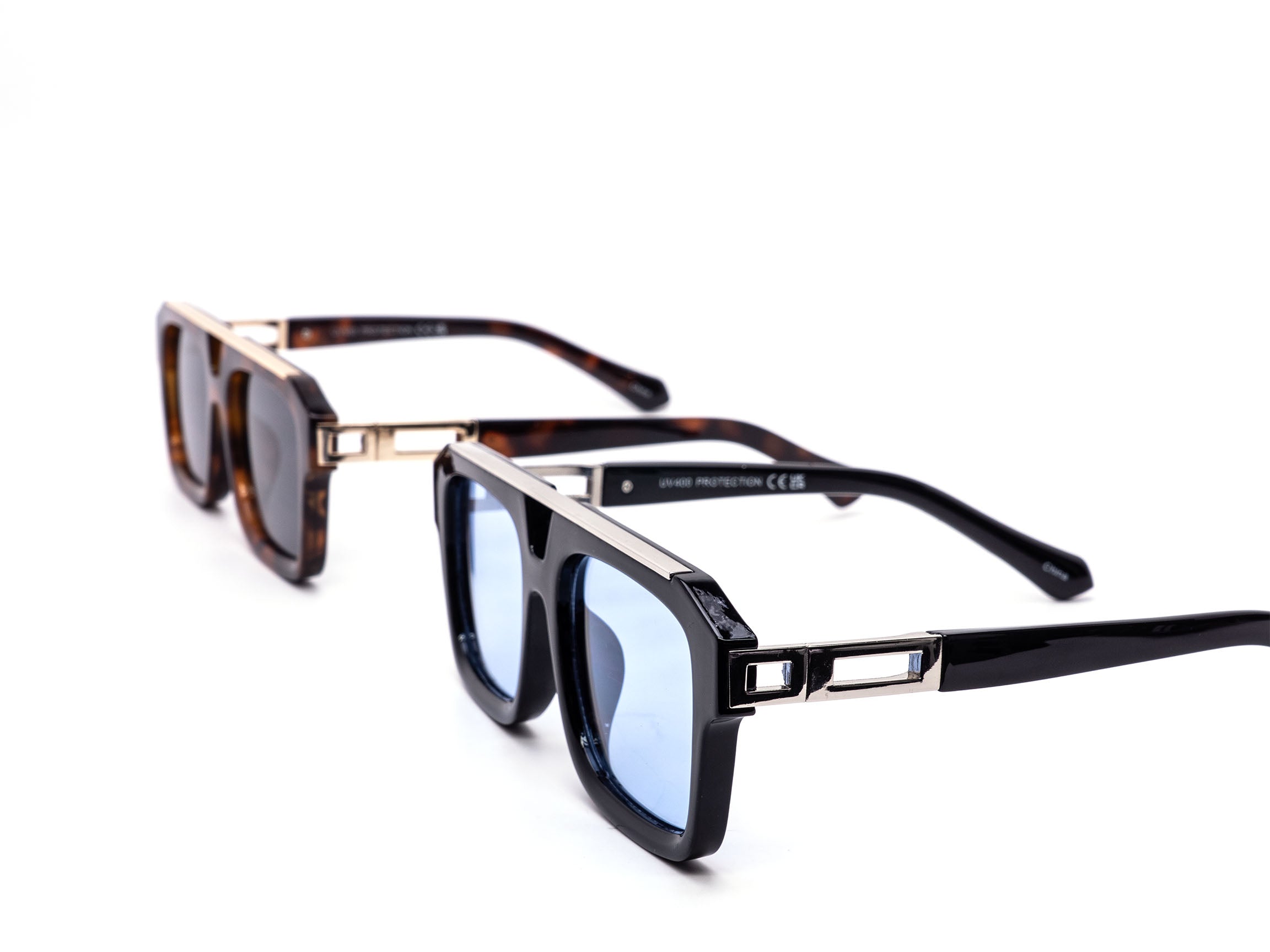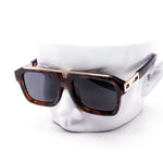 Chunky square aviator style sunglasses with a bold modern profile. Designed with a structured frame and clean metal accent across the brow. Comes assorted with black, tortoise, and blue tinted lenses. A strong statement piece for boutiques, streetwear shops, and trend-focused retailers.