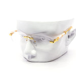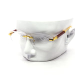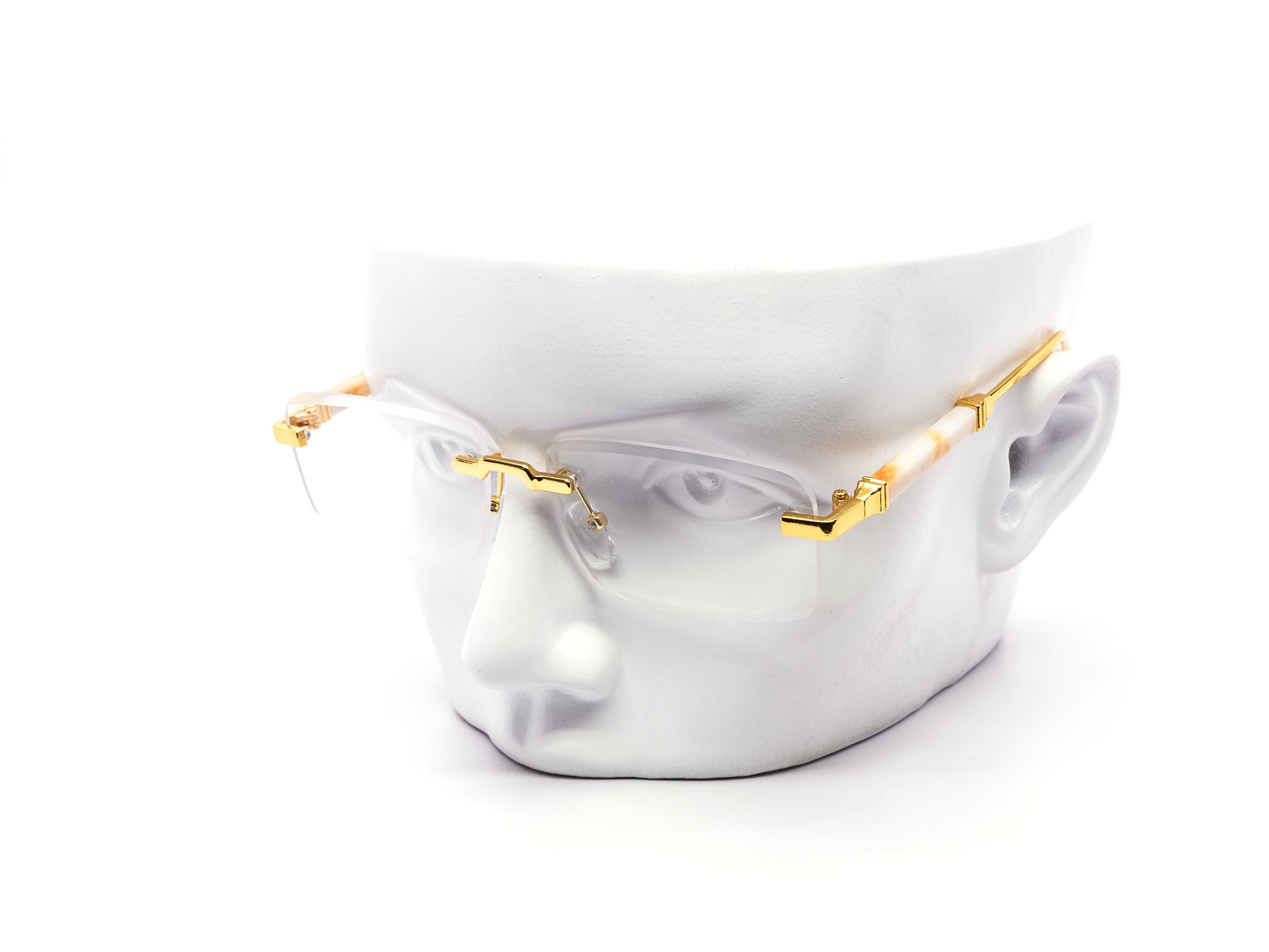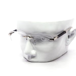 Step up your eyewear game with these ultra-sleek rimless rectangular sunglasses. Featuring a high-end metal frame with intricate temple accents, these shades deliver a perfect mix of modern minimalism and luxury. The transparent lens adds a sophisticated touch, making them an easy match for any outfit.