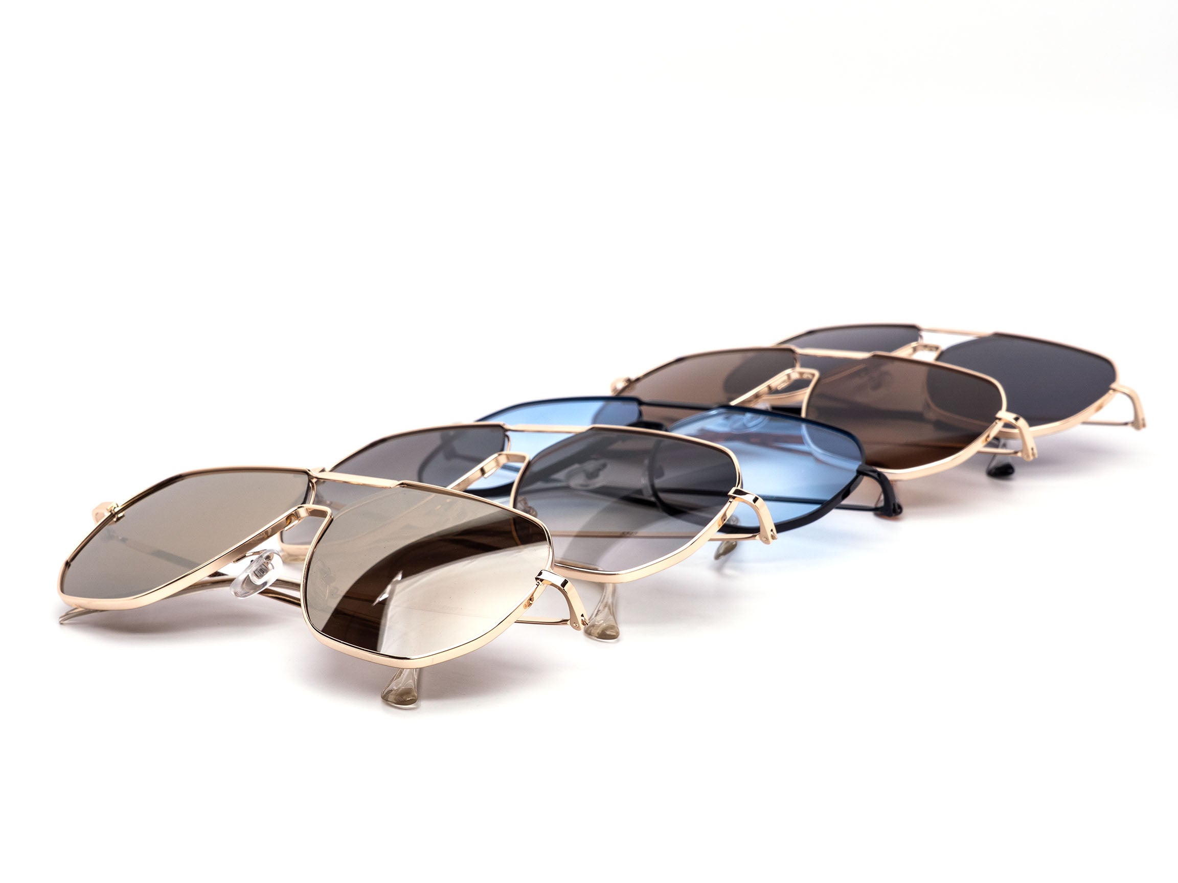 Upgrade your collection with these sleek, modern aviators featuring sharp angles and ultra-thin metal frames. Designed for both style and comfort, these lightweight sunglasses offer a fresh take on the classic aviator silhouette.