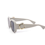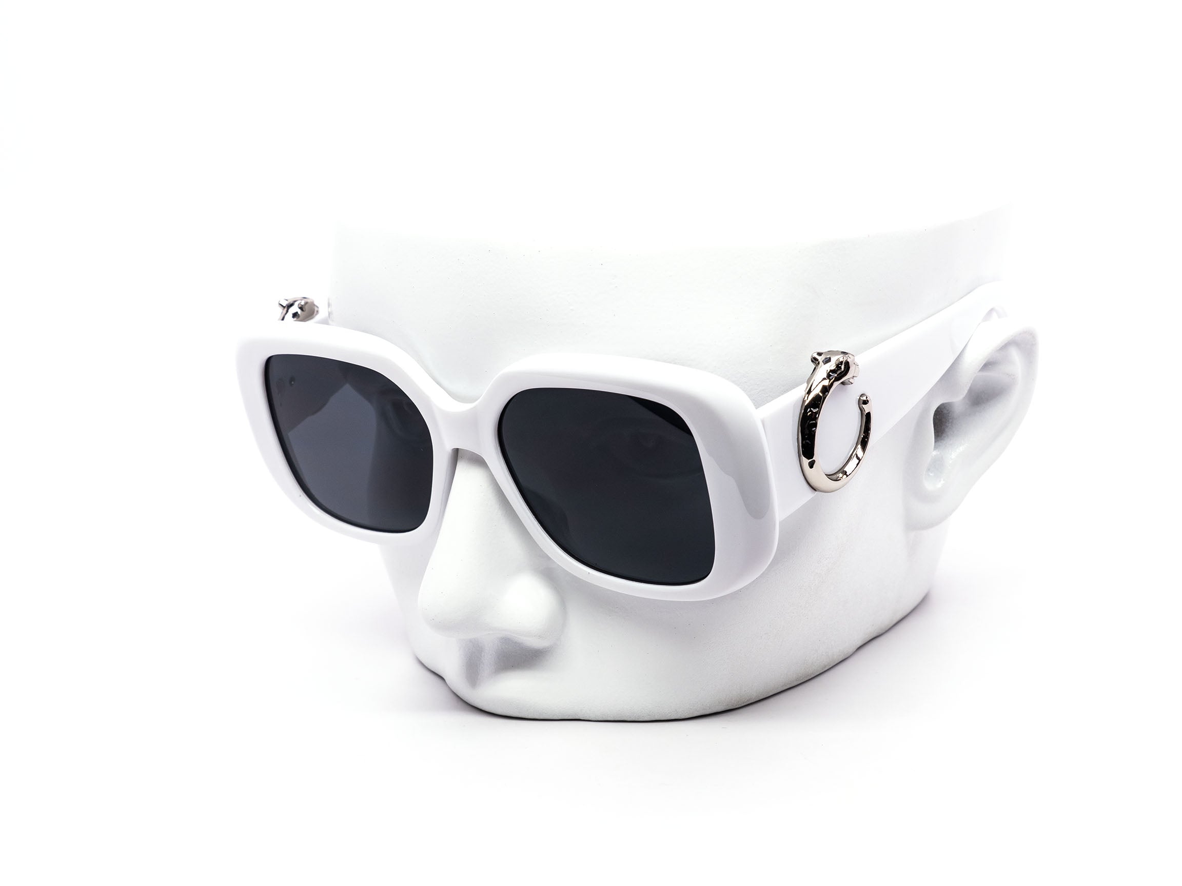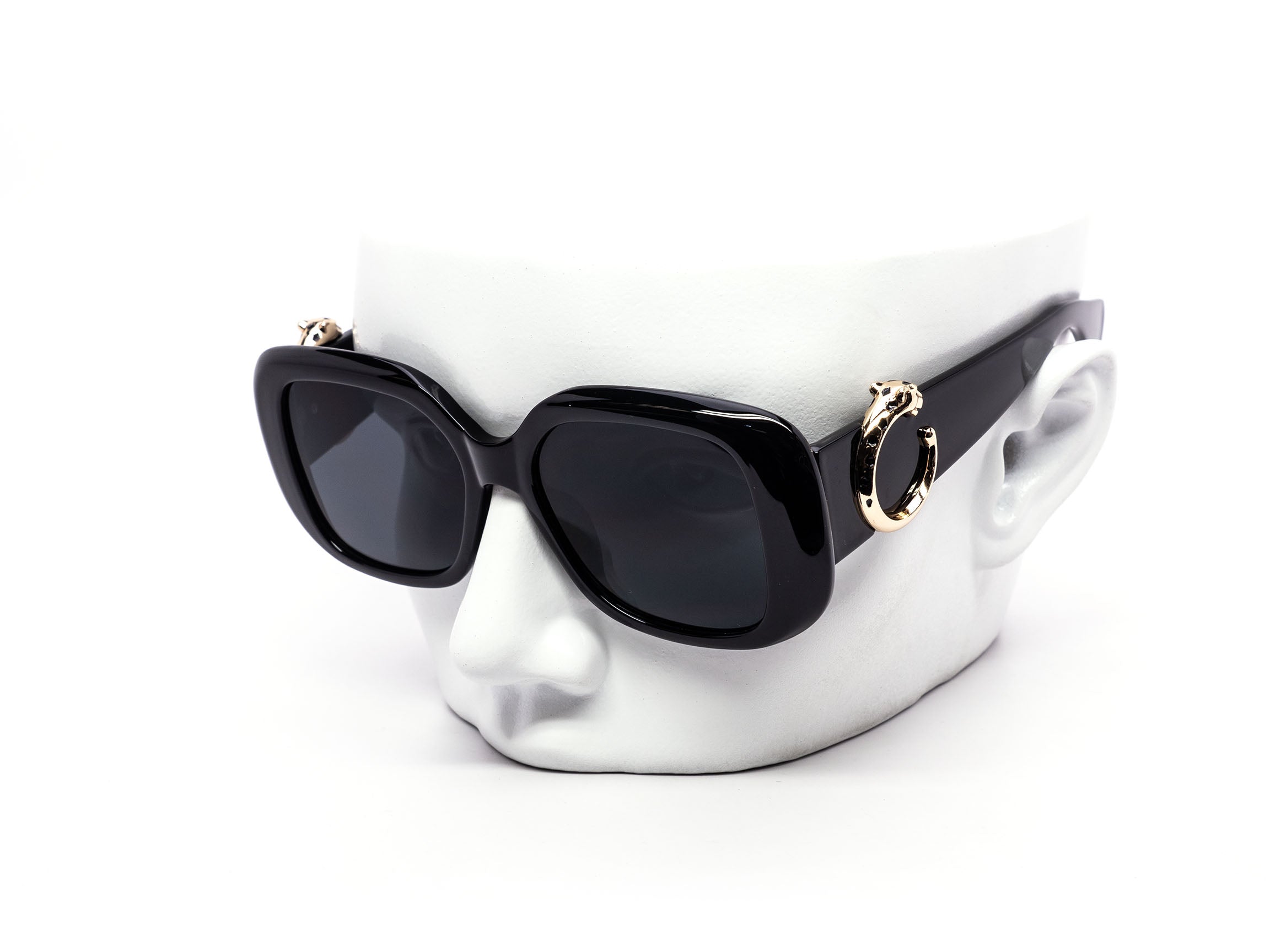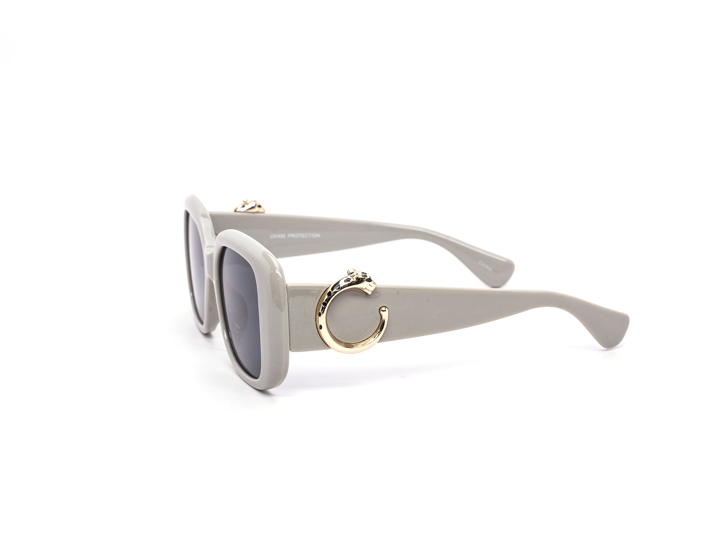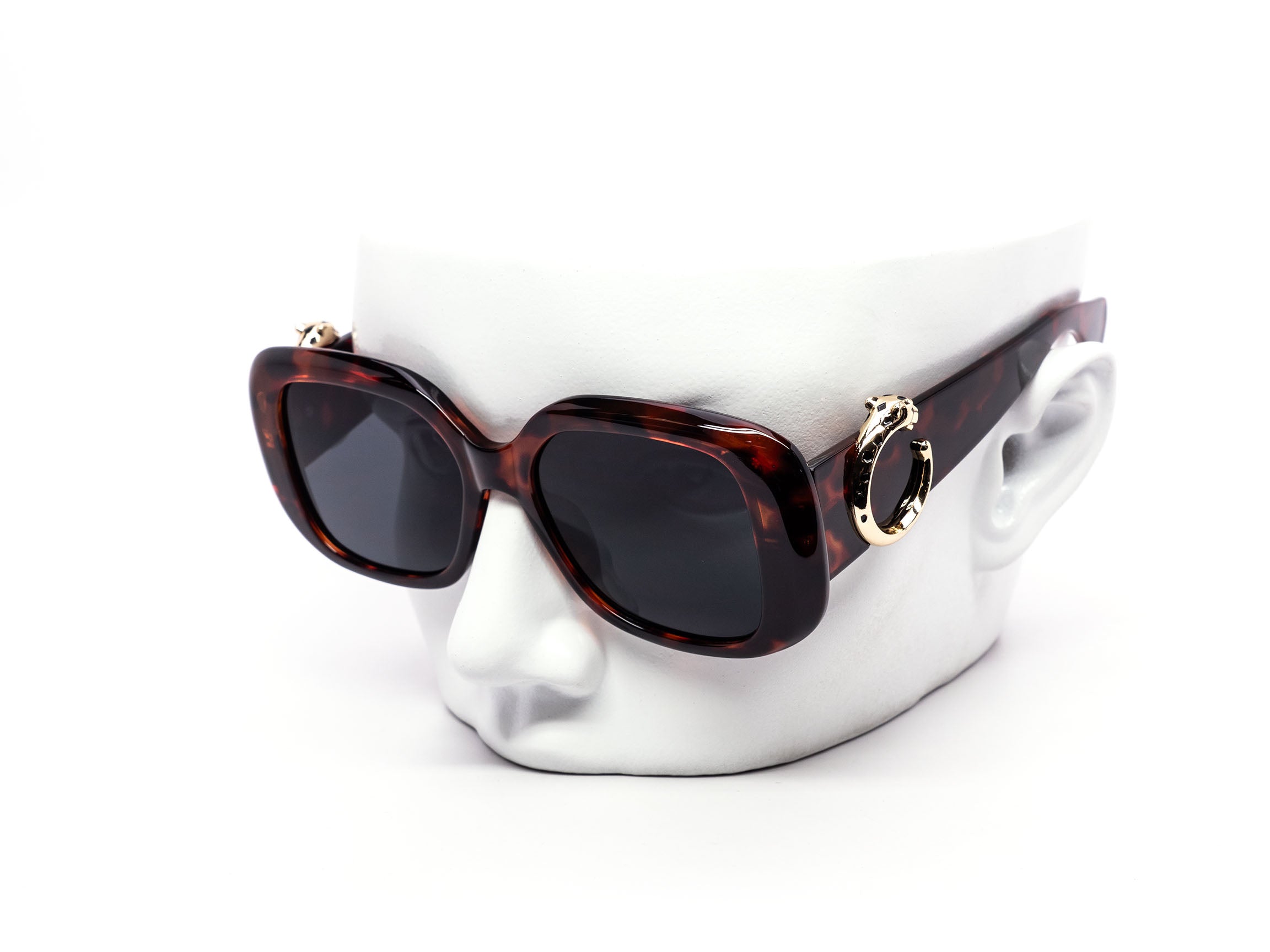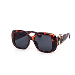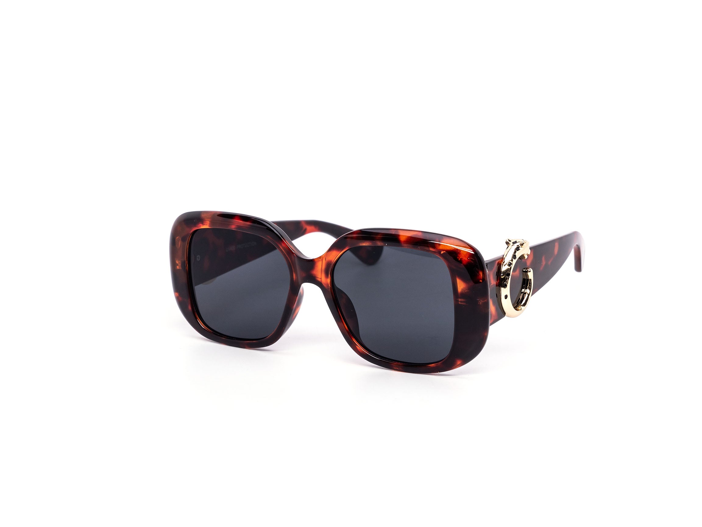 Make a bold statement with these oversized, rounded square luxury frames featuring a chunky silhouette. Each pair is enhanced by a unique circular metal serpent accent on the temples, adding a touch of elegance and individuality.
