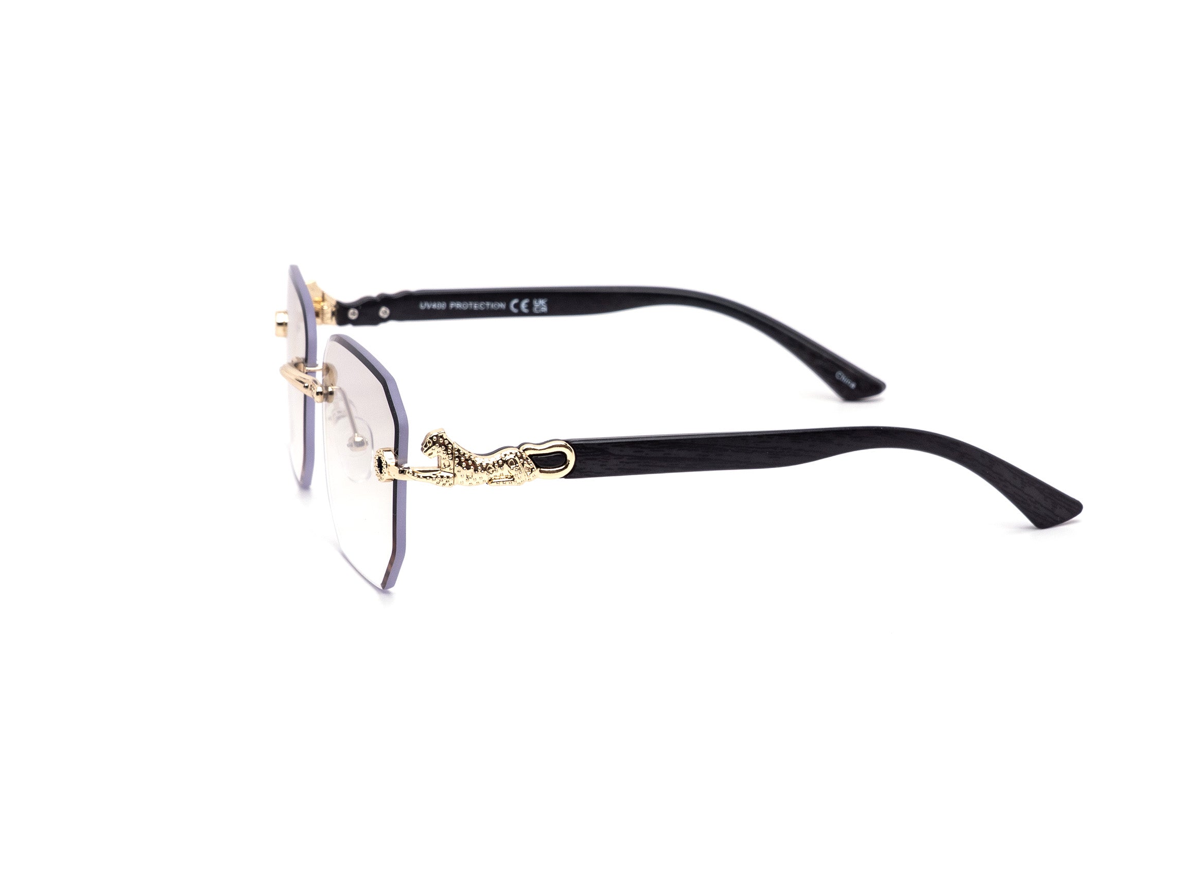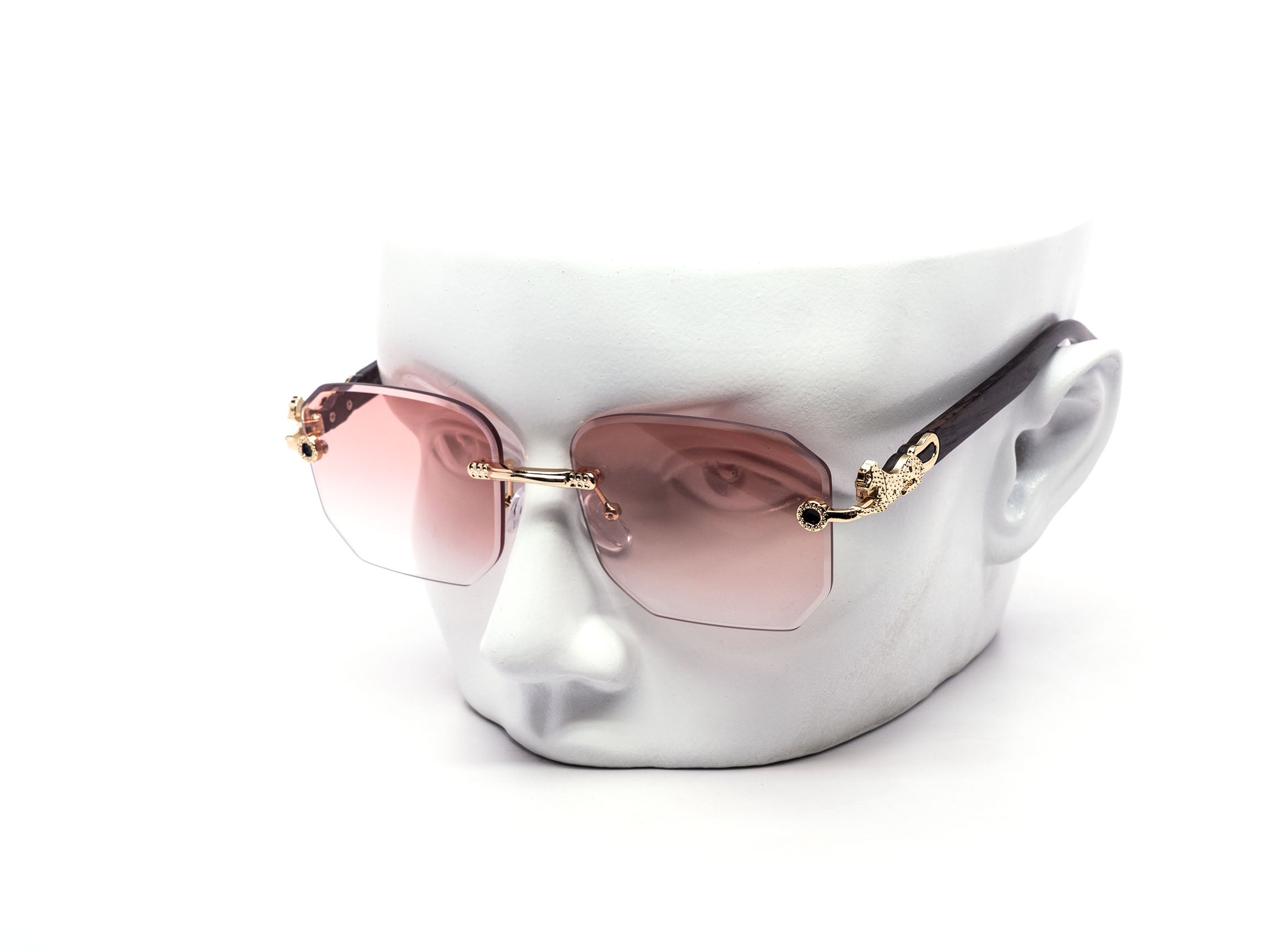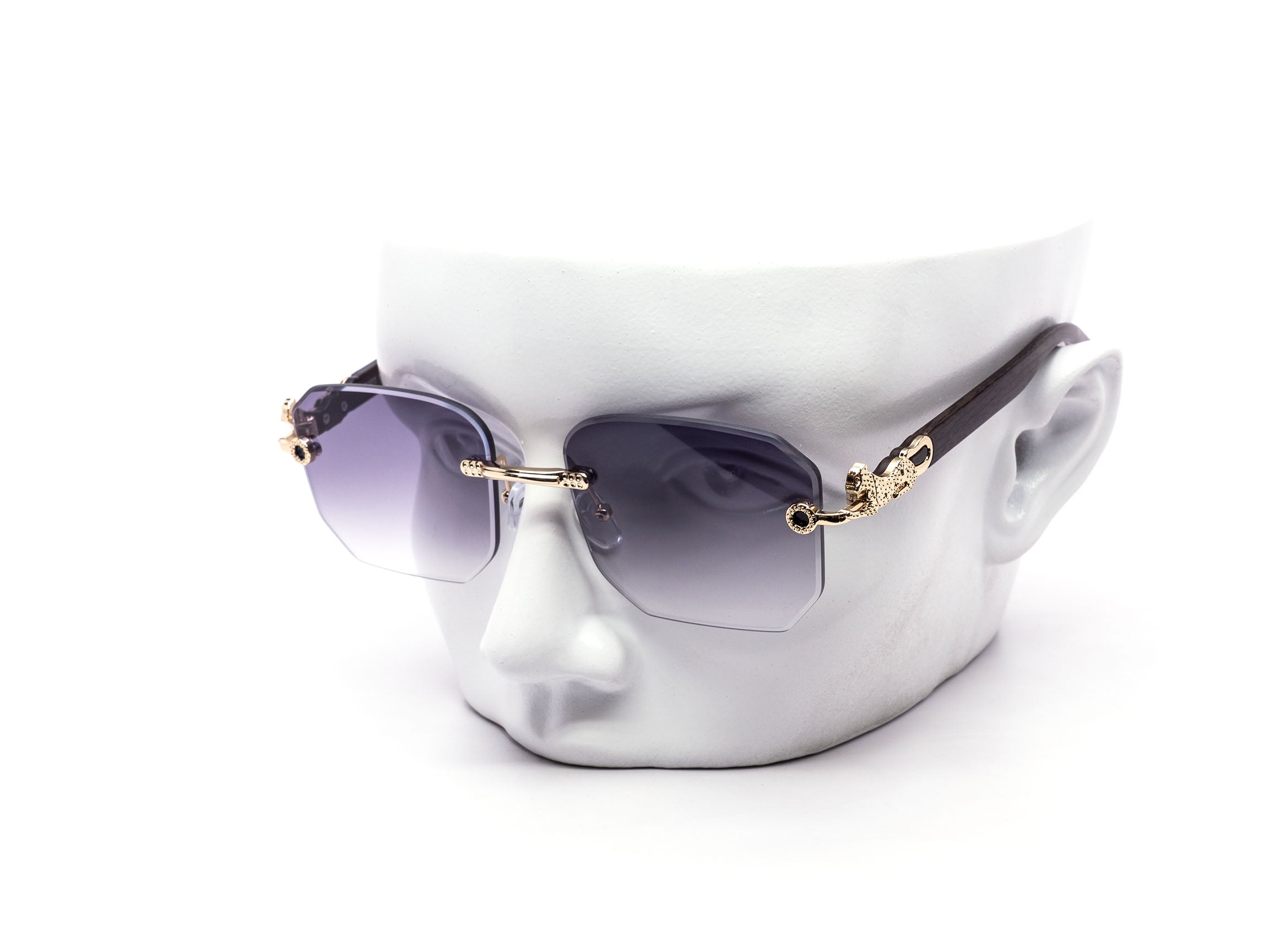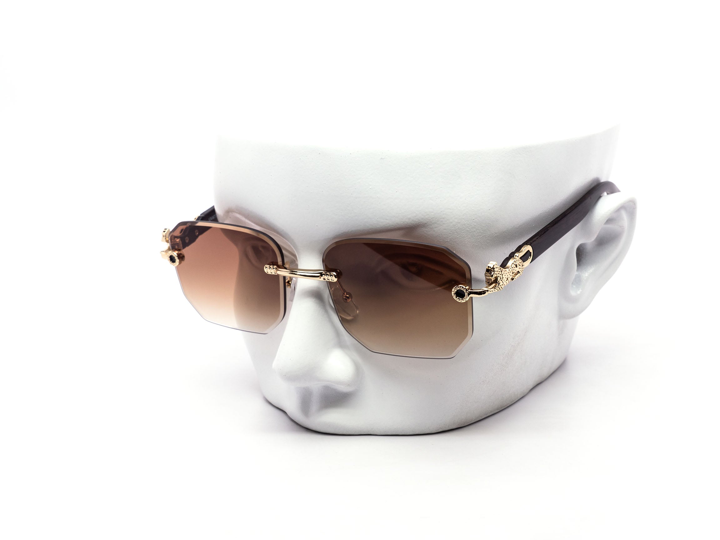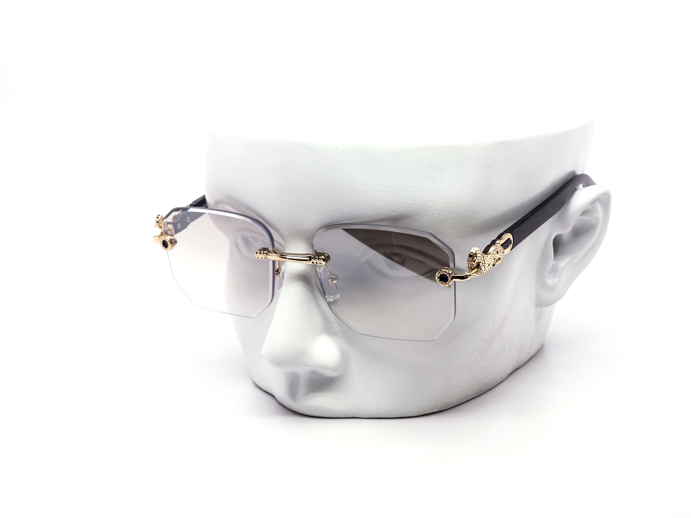 A bold, head-turning style featuring rimless gradient lenses and luxe gold panther detailing on the arms. Eye-catching yet wearable, this design blends fashion and drama effortlessly.