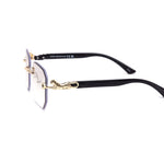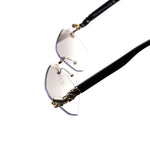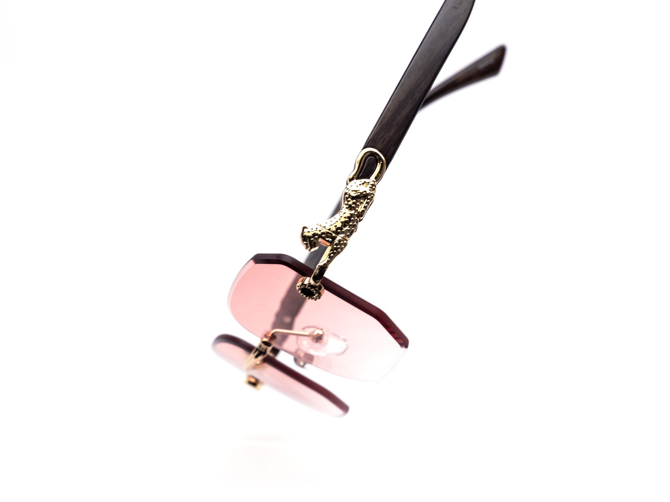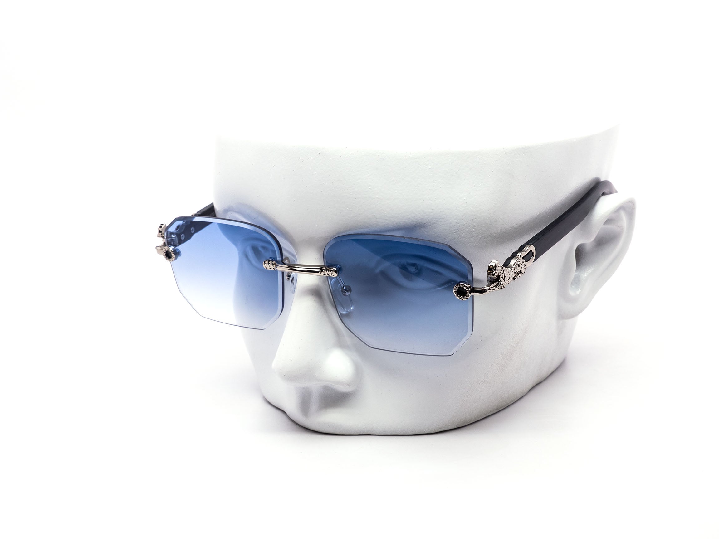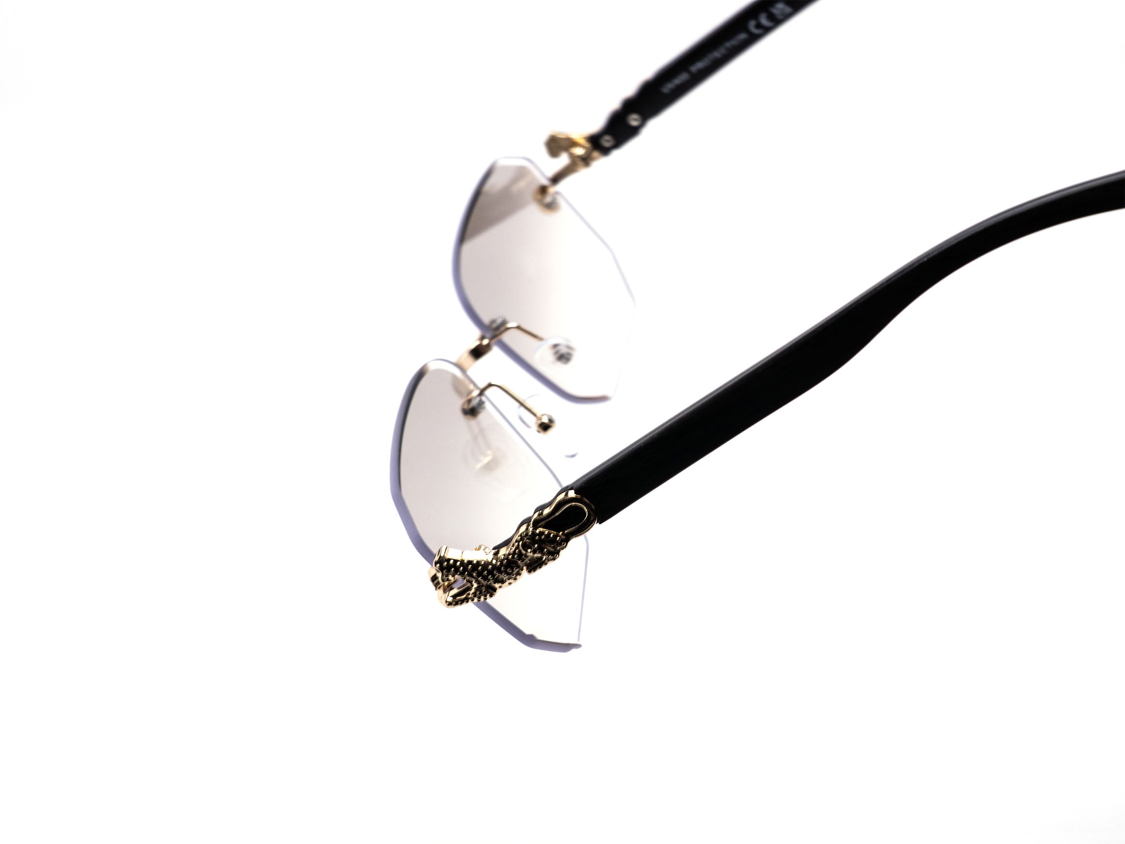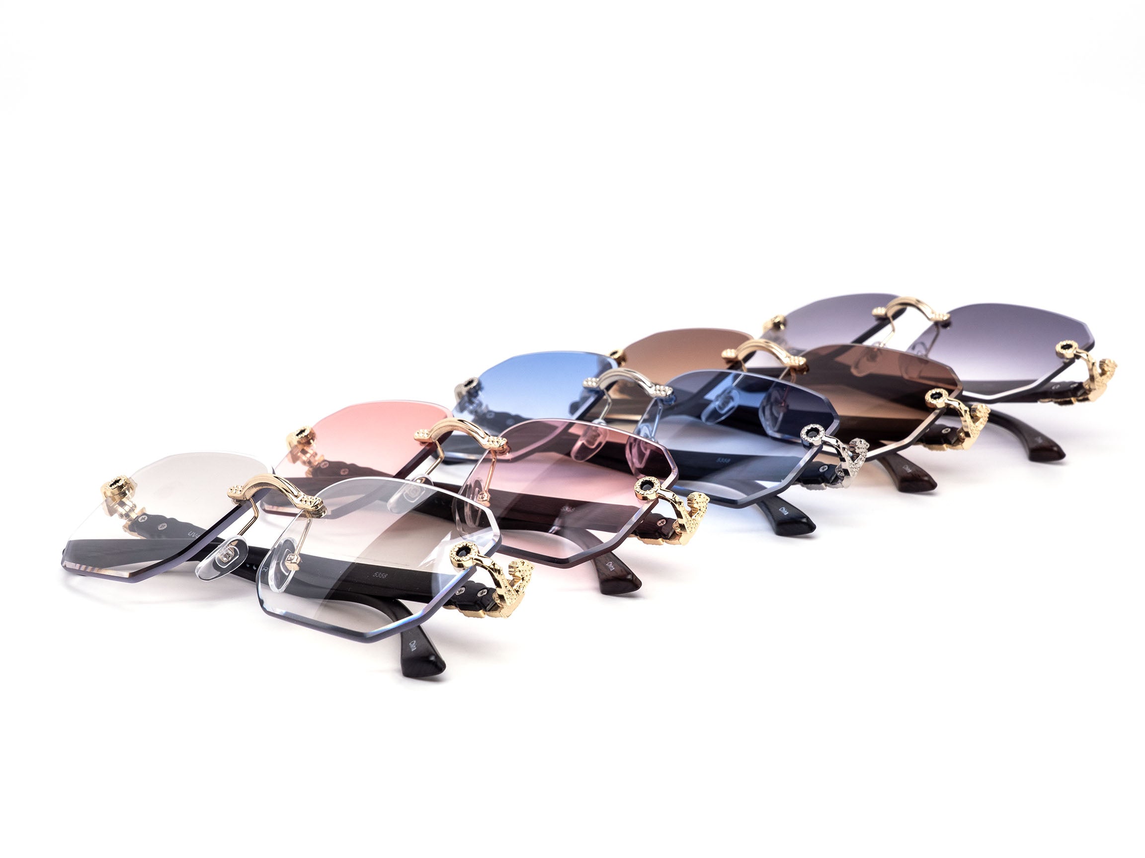 A bold, head-turning style featuring rimless gradient lenses and luxe gold panther detailing on the arms. Eye-catching yet wearable, this design blends fashion and drama effortlessly.