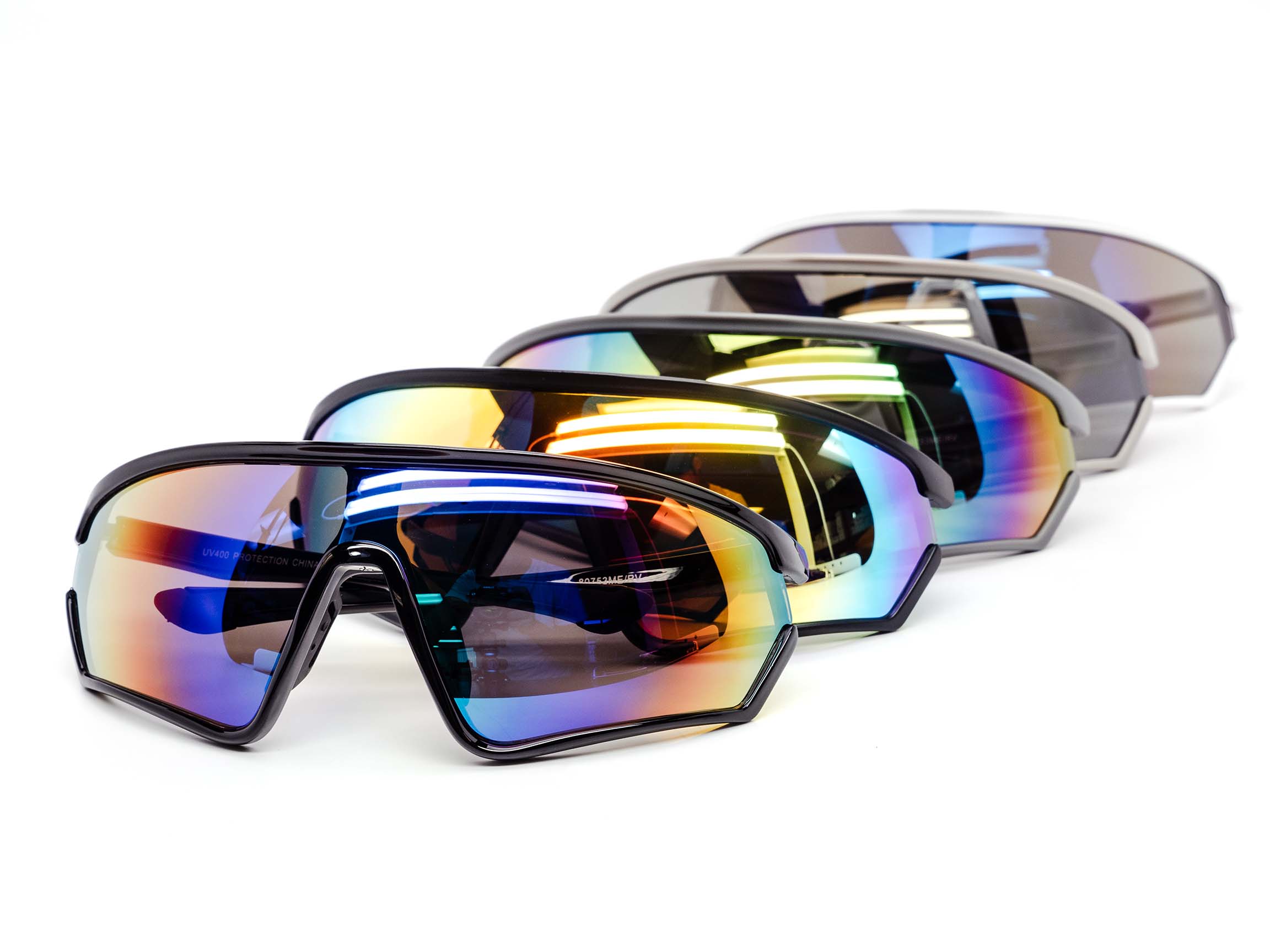 Enhance your athletic performance with these Vented Performance Sports Shield sunglasses. Featuring a sleek, aerodynamic design with vented frames, these sunglasses ensure optimal airflow and comfort during intense activities. The 12-pack includes various colorways and mirror lens types, making it a versatile choice for sports enthusiasts.