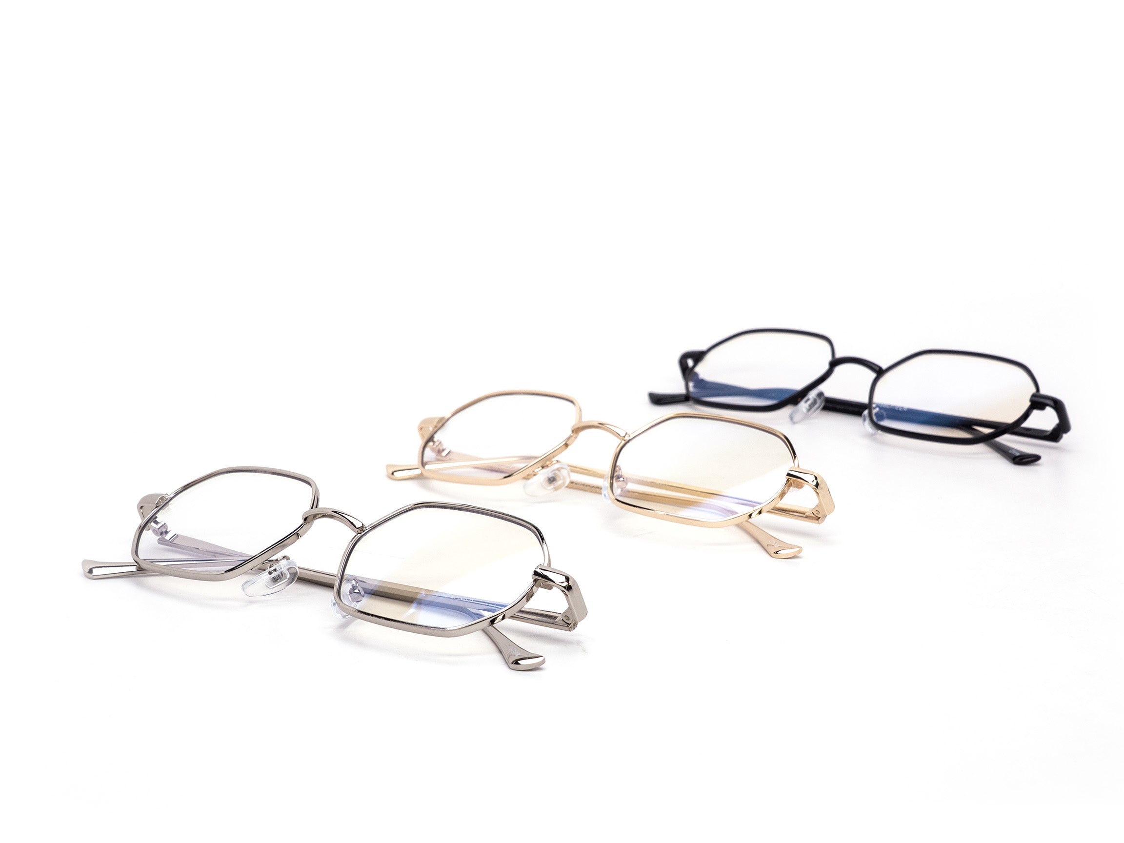 A clean, nerdy inspired frame designed for modern screen life. Hexline Nerd Club features a rounded hexagonal metal shape with a slim, lightweight profile and a trendy skinny look.