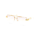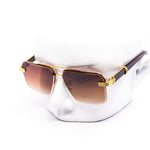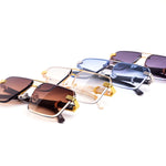 This rimless aviator sunglasses show modern simple lifestyle but with class. They come in assorted gradient lens in the dozen as well as assorted metal frames and temple types.