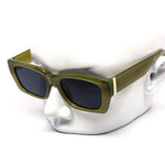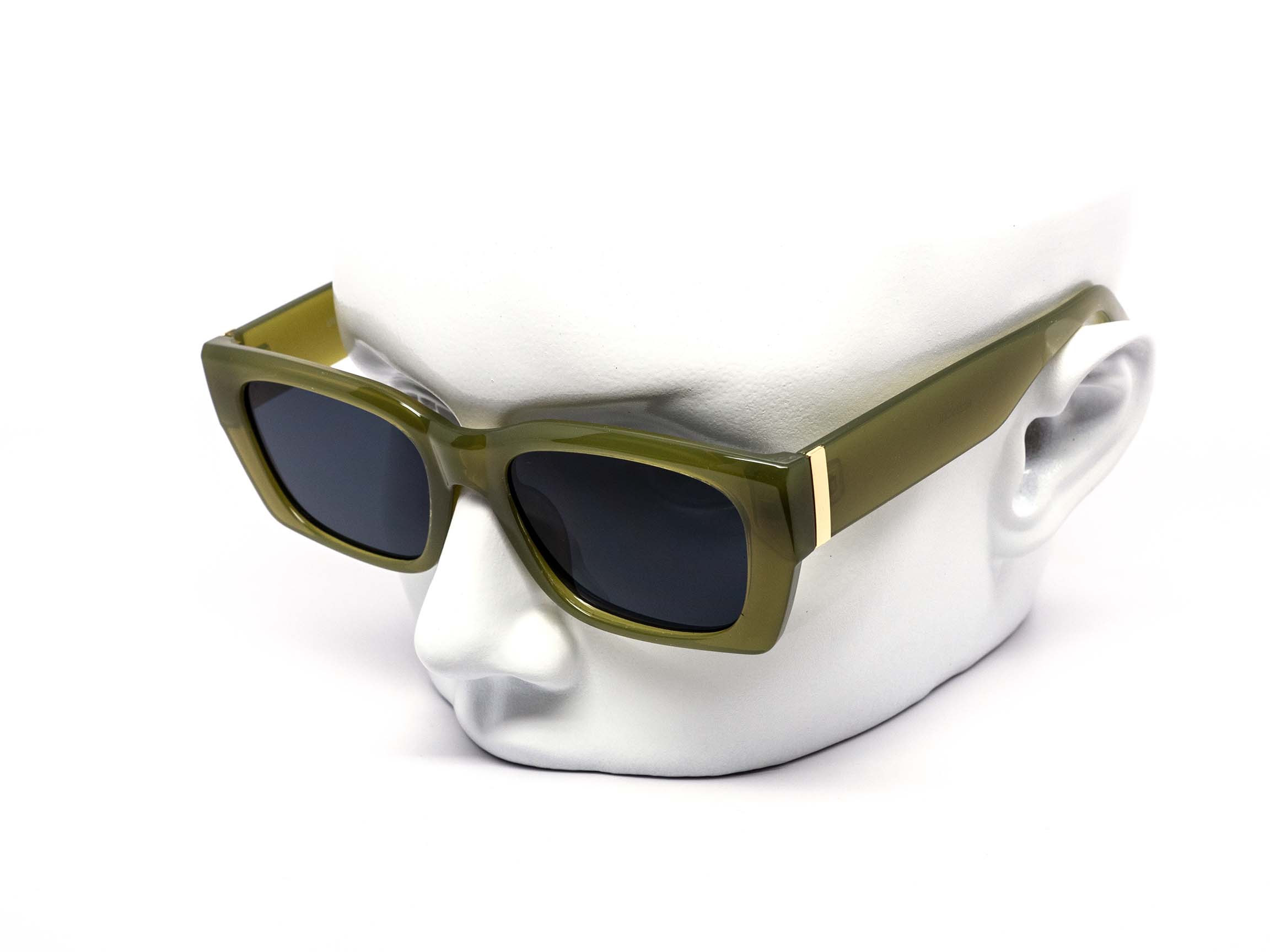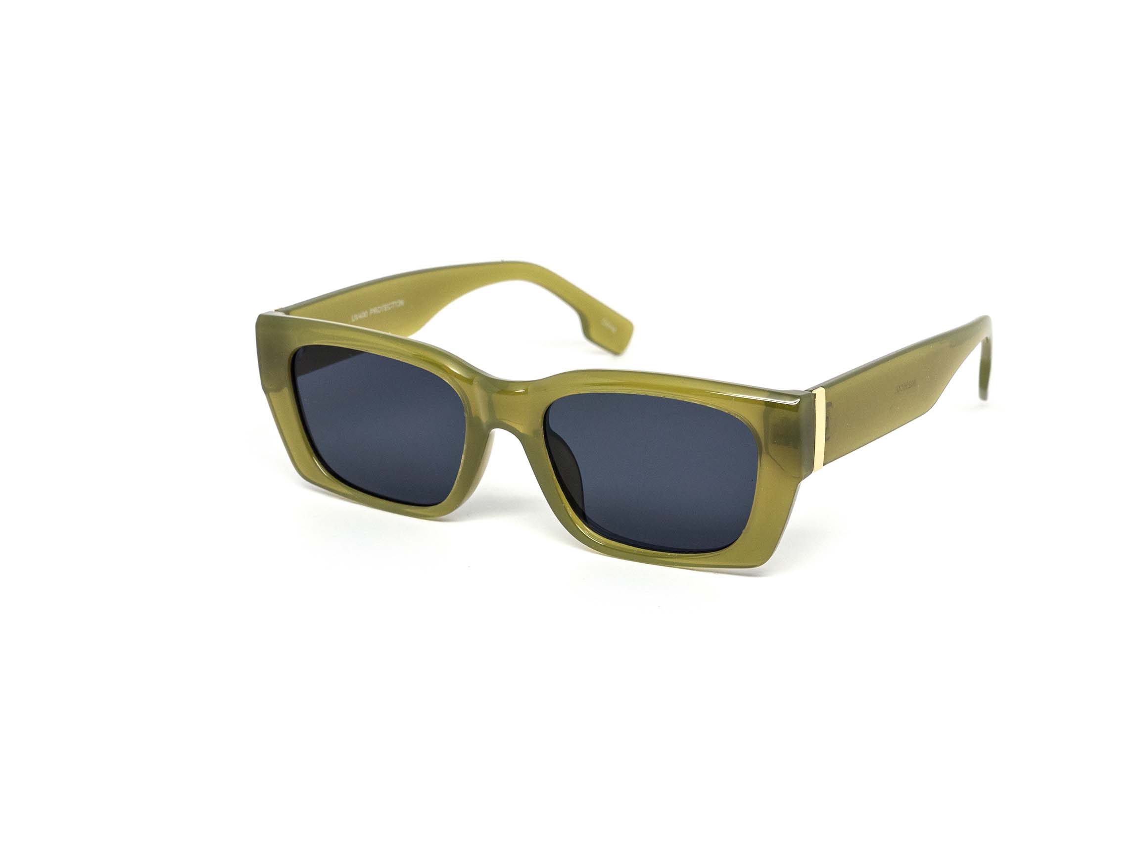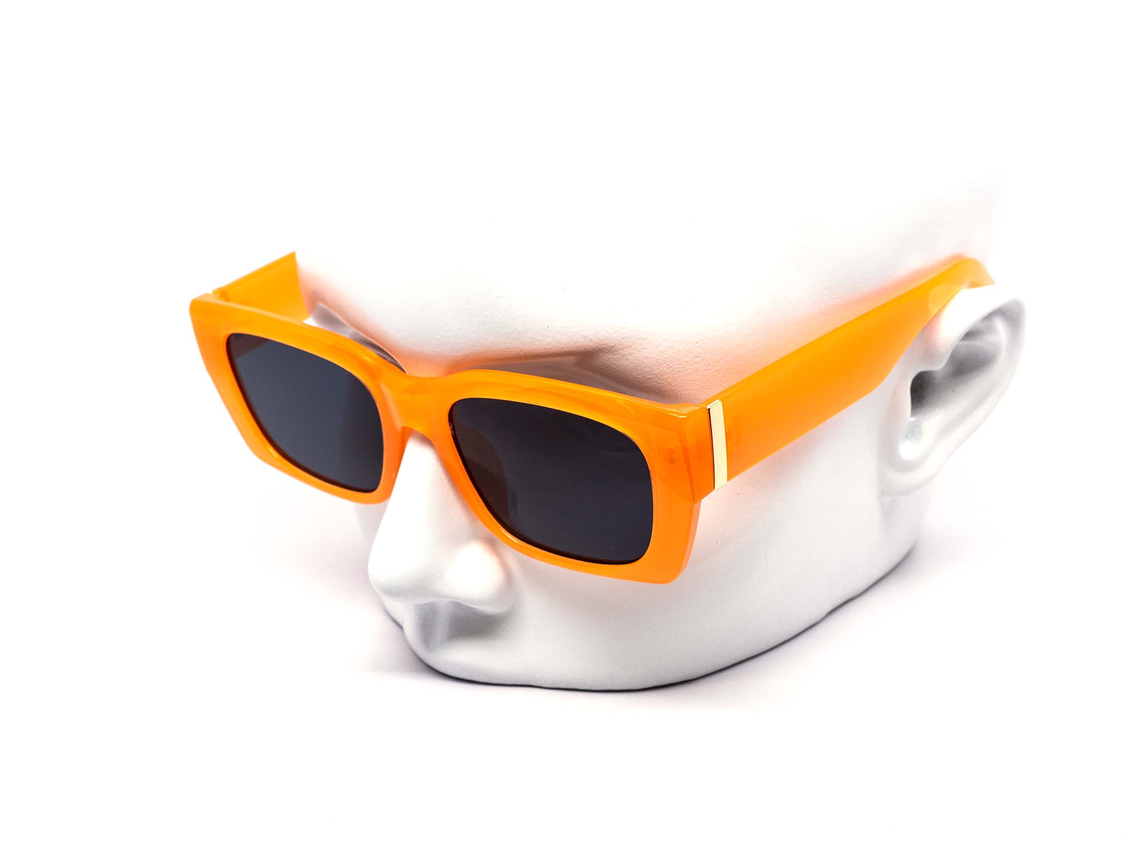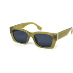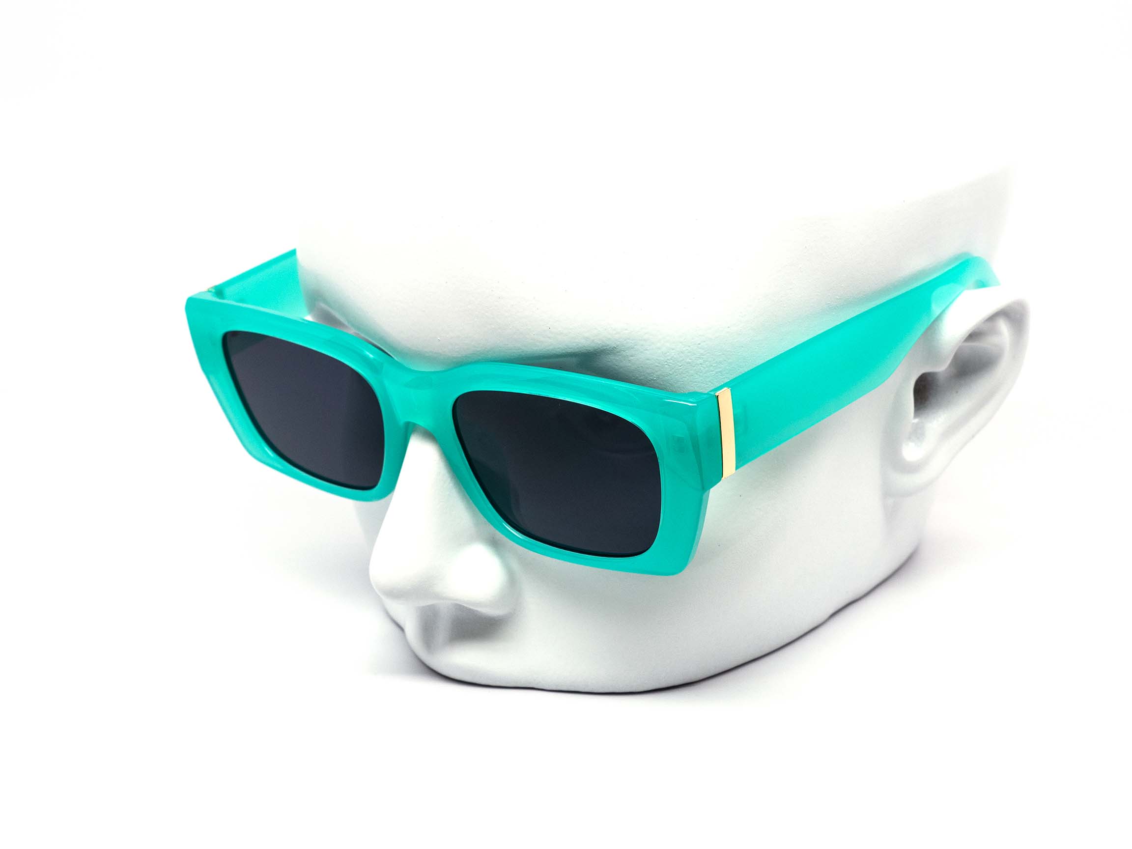 Gentle minimalistic rectangular flat design with assorted high contrast colored frames and dark lens. Metal accent bar on the sides. Simply stylish high fashion.