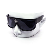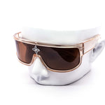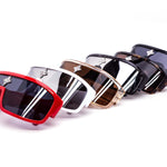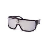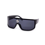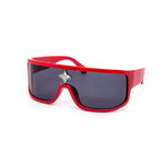 This luxurious, stylish design features a thick modern wraparound frame with star accents encrusted with rhinestones, along with an assortment of colourful frames and dark/mirror lenses.