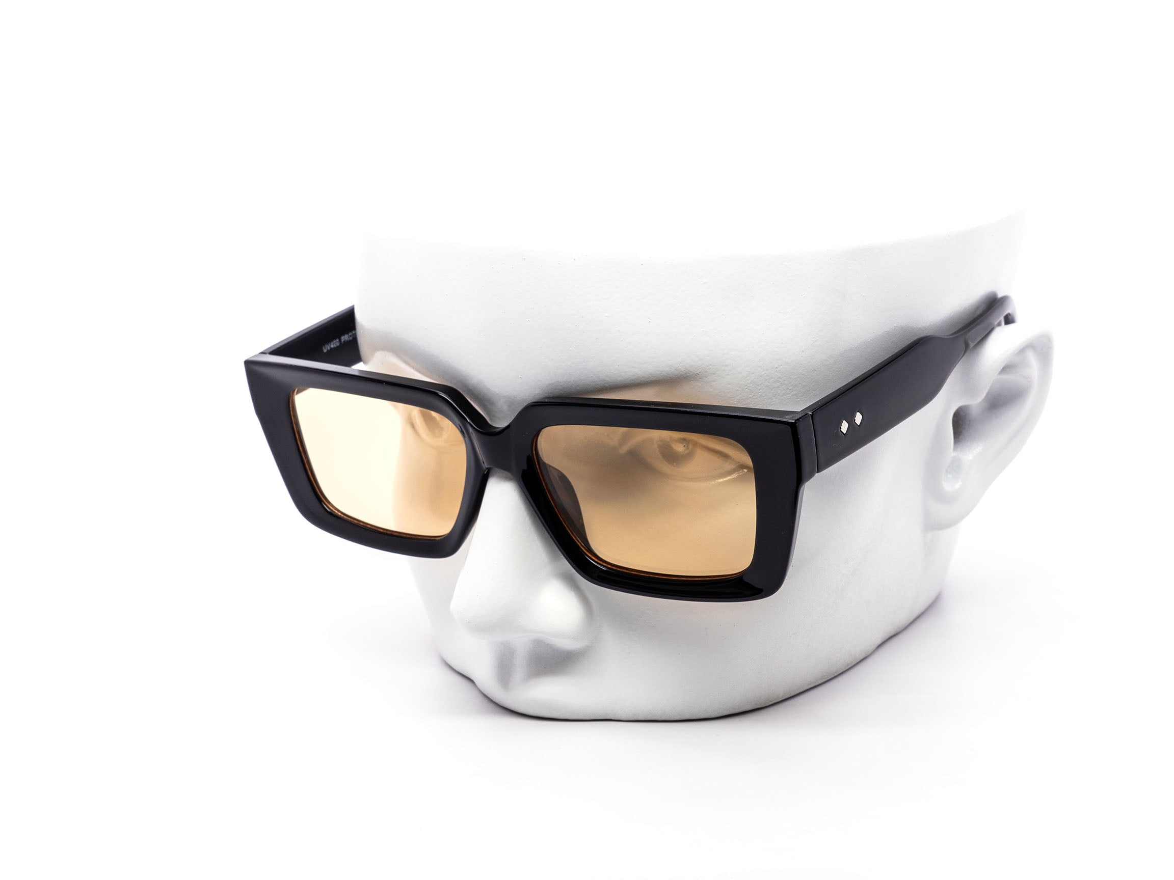 Elevate your everyday style with these sleek and modern chunky square-frame sunglasses. Designed for a bold yet minimalistic look, they feature blocky frames with subtle metal dot accents on the temples, adding just the right touch of detail.