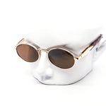 Elevate your style with our classy oval sunglasses, featuring gold and silver metal frames paired with a selection of brown, dark, and pink lenses. Crafted for durability, these frames offer both elegance and resilience.