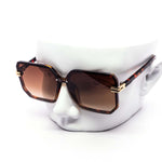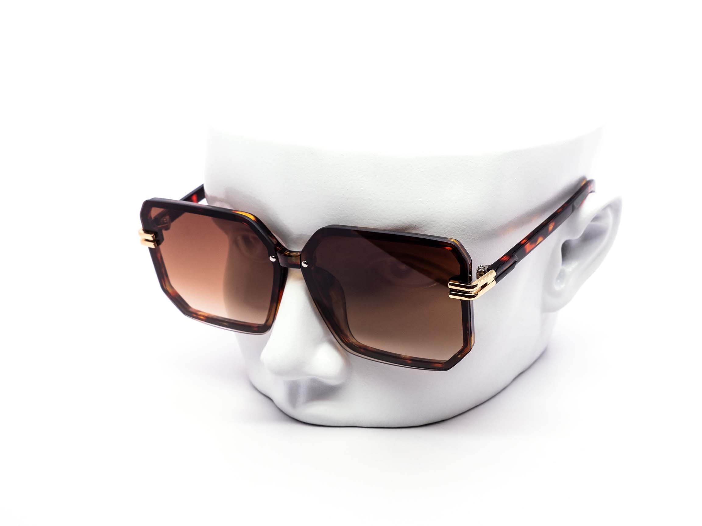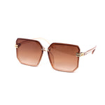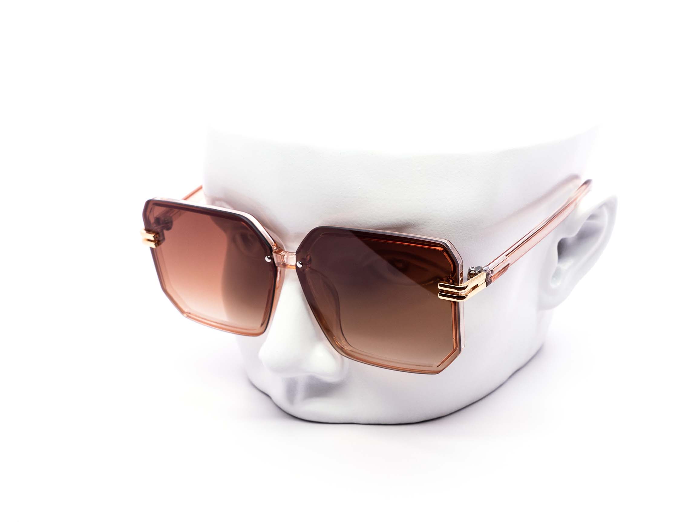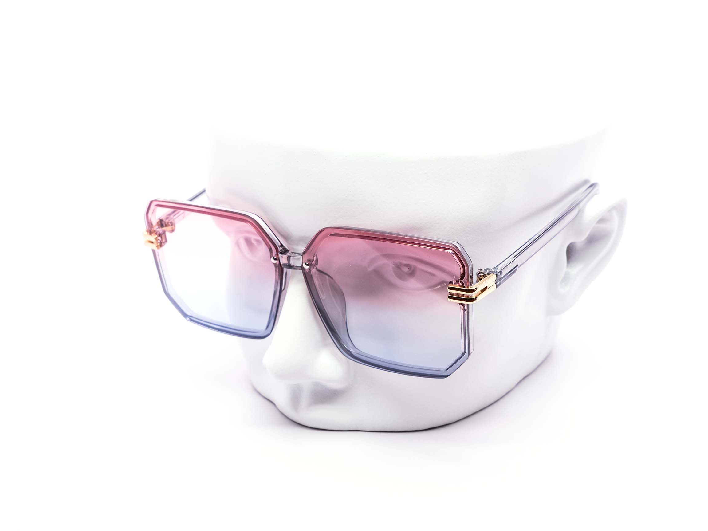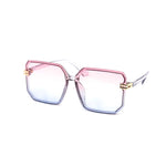Oversized high-fashion minimalistic lens-on-frame rimless angular square design with beautifully assorted gradient lens and frames with metal accents on the sides.