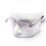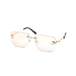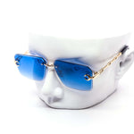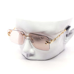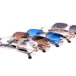 The 12 Pack Rimless Miter-cut Scorpion Metal Gradient Wholesale Sunglasses feature a sleek, minimalist design with perfectly assorted square gradient lenses set in assorted metal frames.