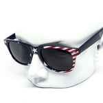 Star spangled USA Flag print on classic frame with dark lens. Comes assorted in two variations of American flag patterns. 6 flag pattern throughout the frame, 6 with no flag pattern on the temples. Let's go USA!