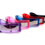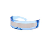 Retro Future Robocop Mirror Sunglasses feature a dystopian straight wrap-around style with mirrored lenses in a variety of frames. Ideal for parties and other events.