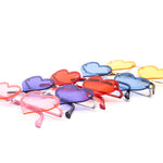 Discover our beautifully assorted rimless heart-shaped shades with sleek metal frames. Perfect for festivals or casual fun, these colorful sunglasses add a playful touch to any outfit.