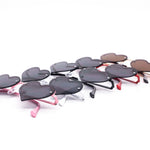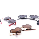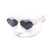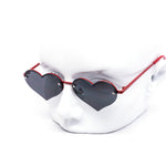 Discover our beautifully assorted rimless heart-shaped shades with sleek metal frames. Perfect for festivals or casual fun, these sunglasses with darklens add a playful touch to any outfit.