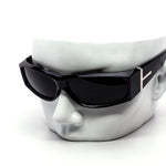 Step into the spotlight with these bold, ultra-sleek rectangle shield sunglasses. Featuring a chunky wrap-style frame, jet-black lenses, and a metallic T-accent on the temples, this design brings futuristic attitude with luxury vibes. The thick, durable construction adds structure and edge—perfect for making a statement. Each dozen includes a mixed variety of gloss and matte finishes in black.