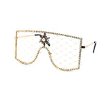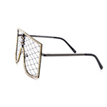 Designed for those who dare to stand out, these sunglasses feature an intricate diamond-patterned latex net in place of traditional lenses.