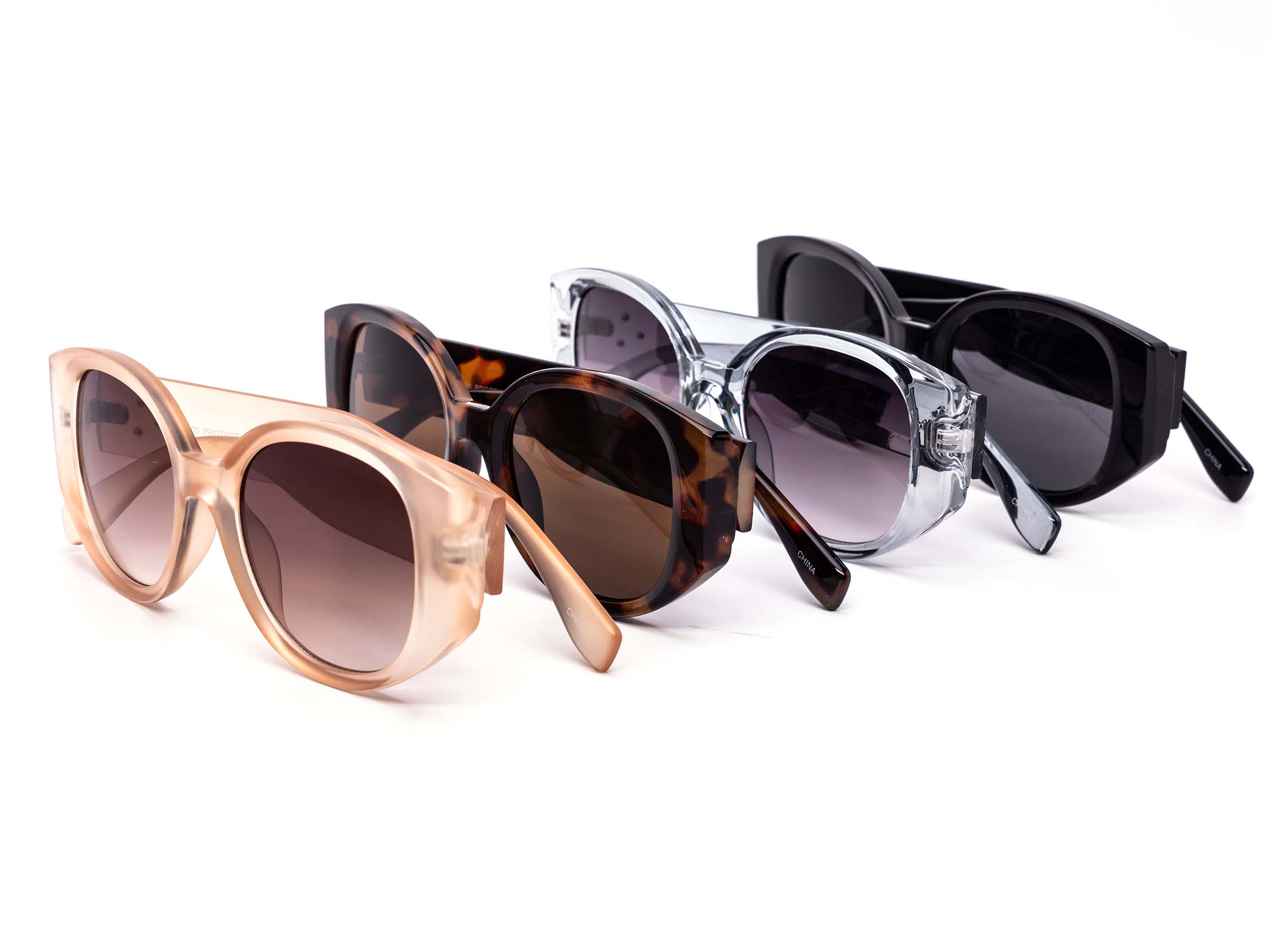 This collection of sunglasses feature a classic and stylish design with an up-to-date modern retro aesthetic. The frames are constructed with a thicker profile for a statement look, with an array of assorted colors and lenses and accented 3 dots.