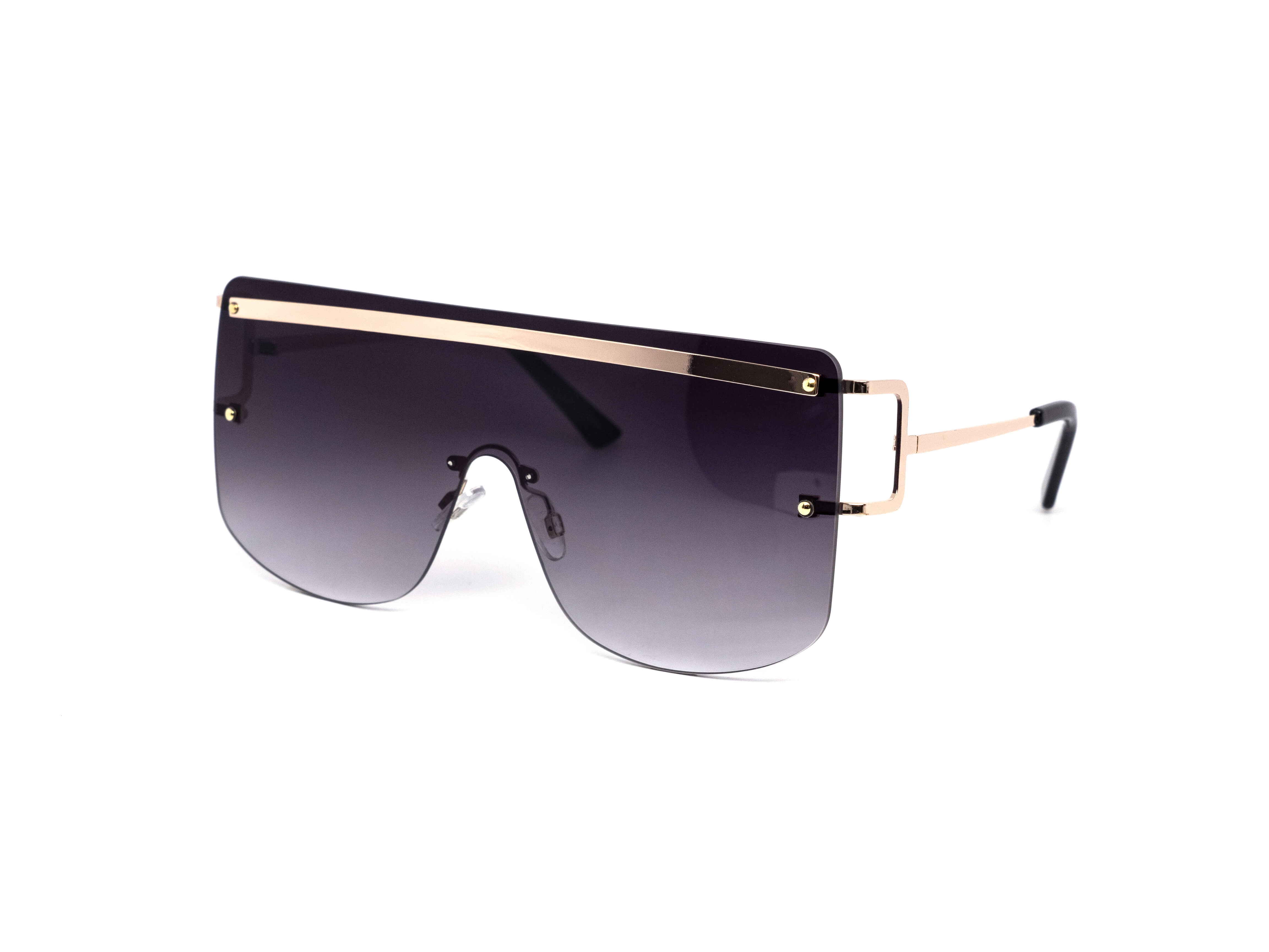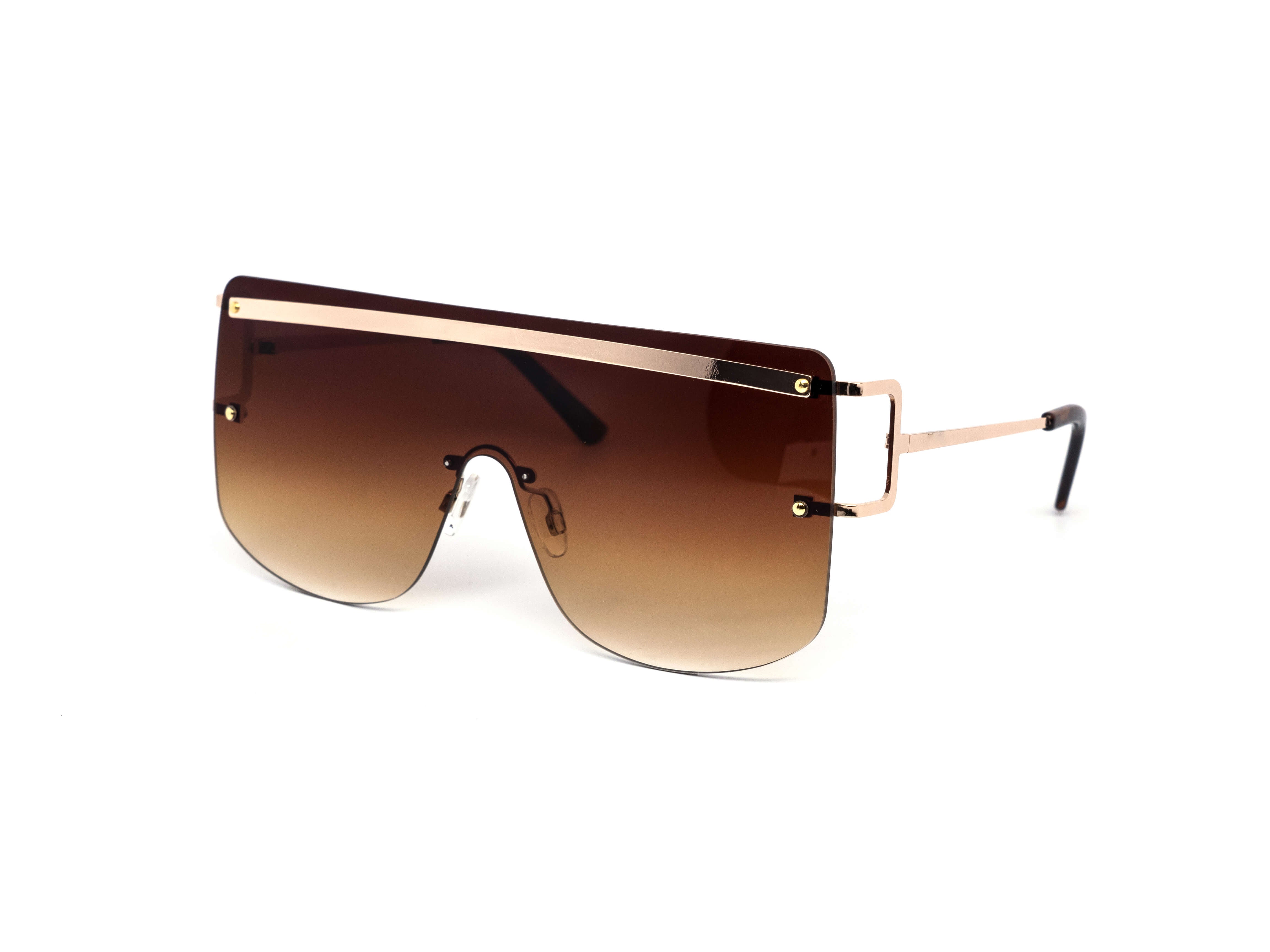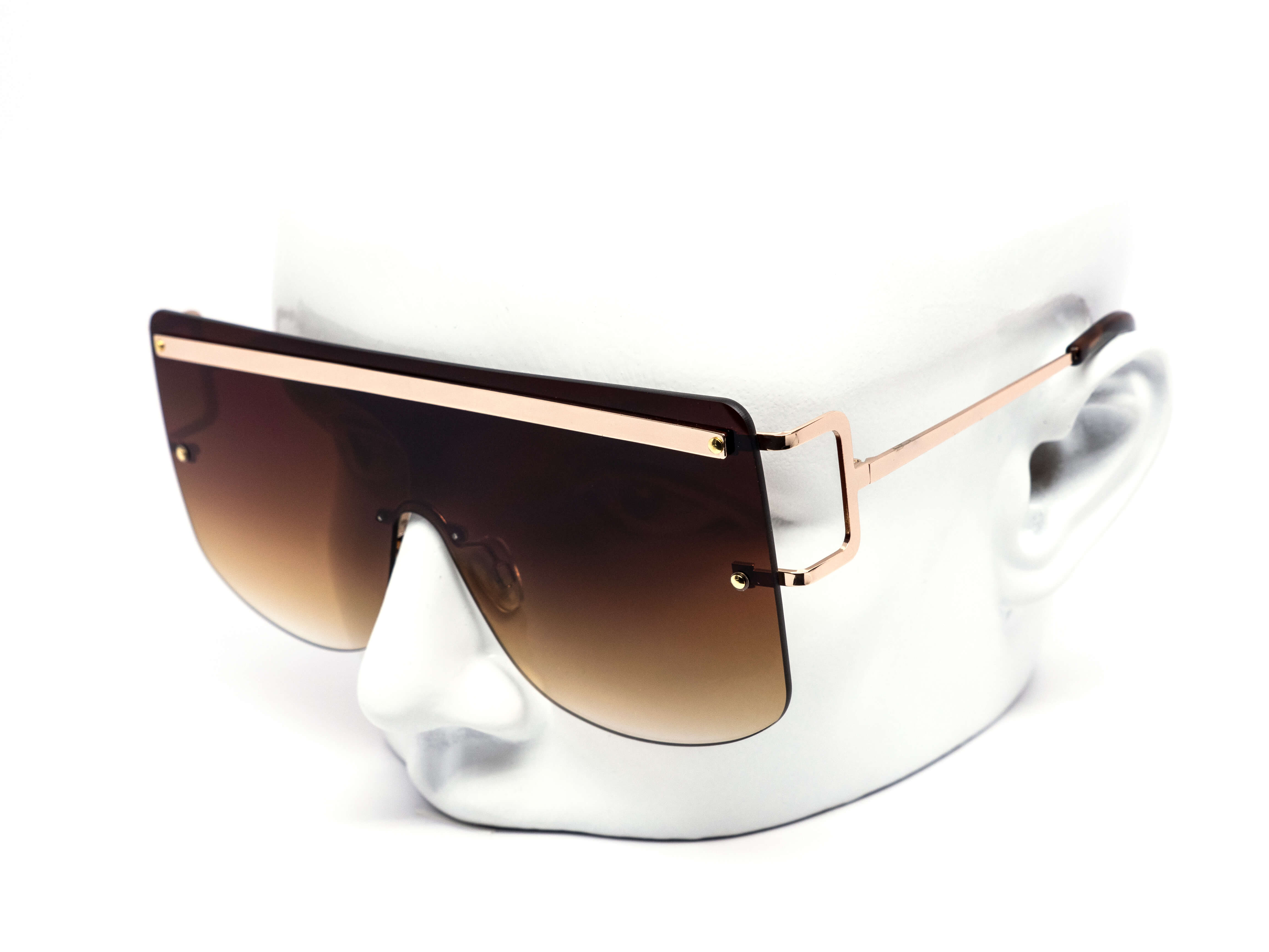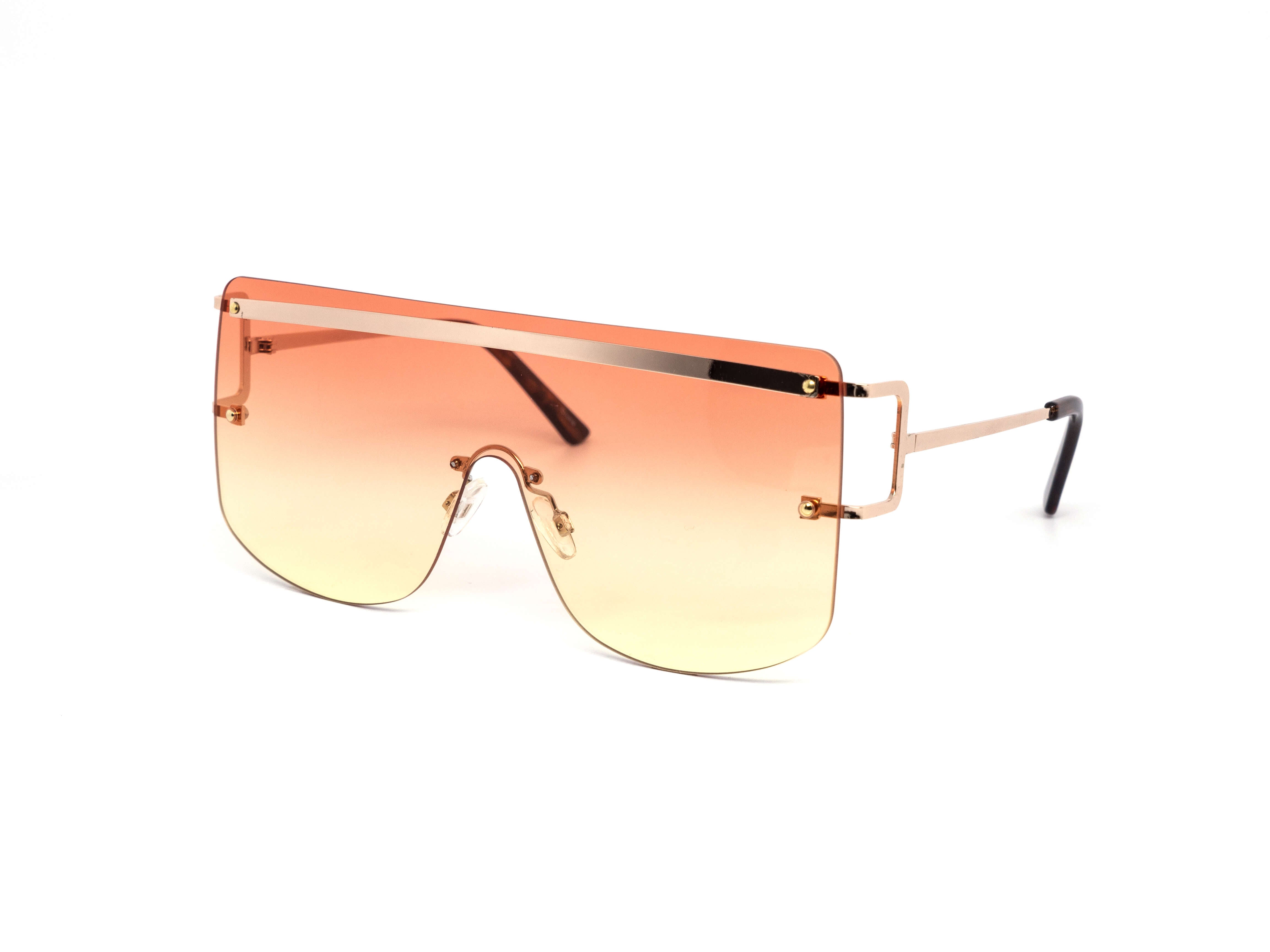 High fashion frameless oversized square design with top bar accent and sturdy metal temples. Comes in beautifully assorted color and dark lens and metal material.