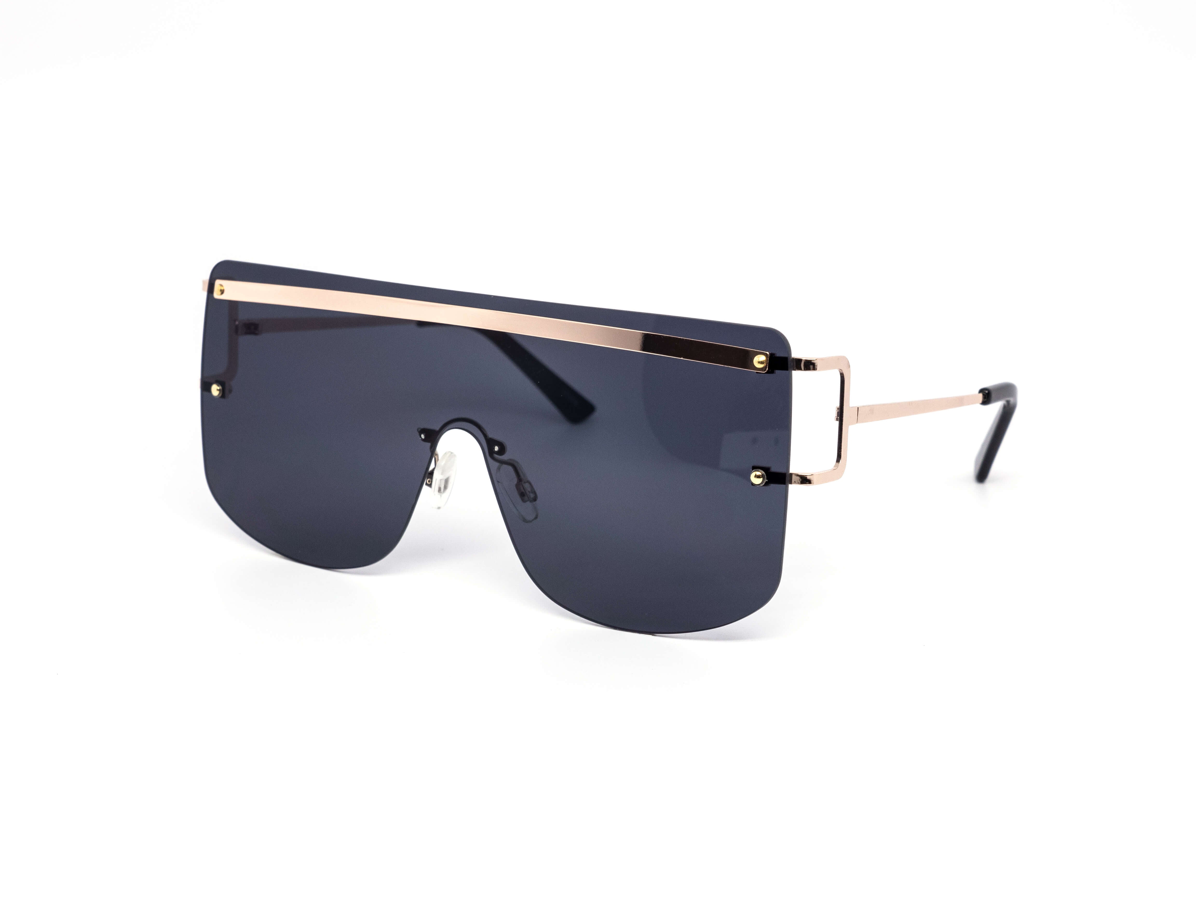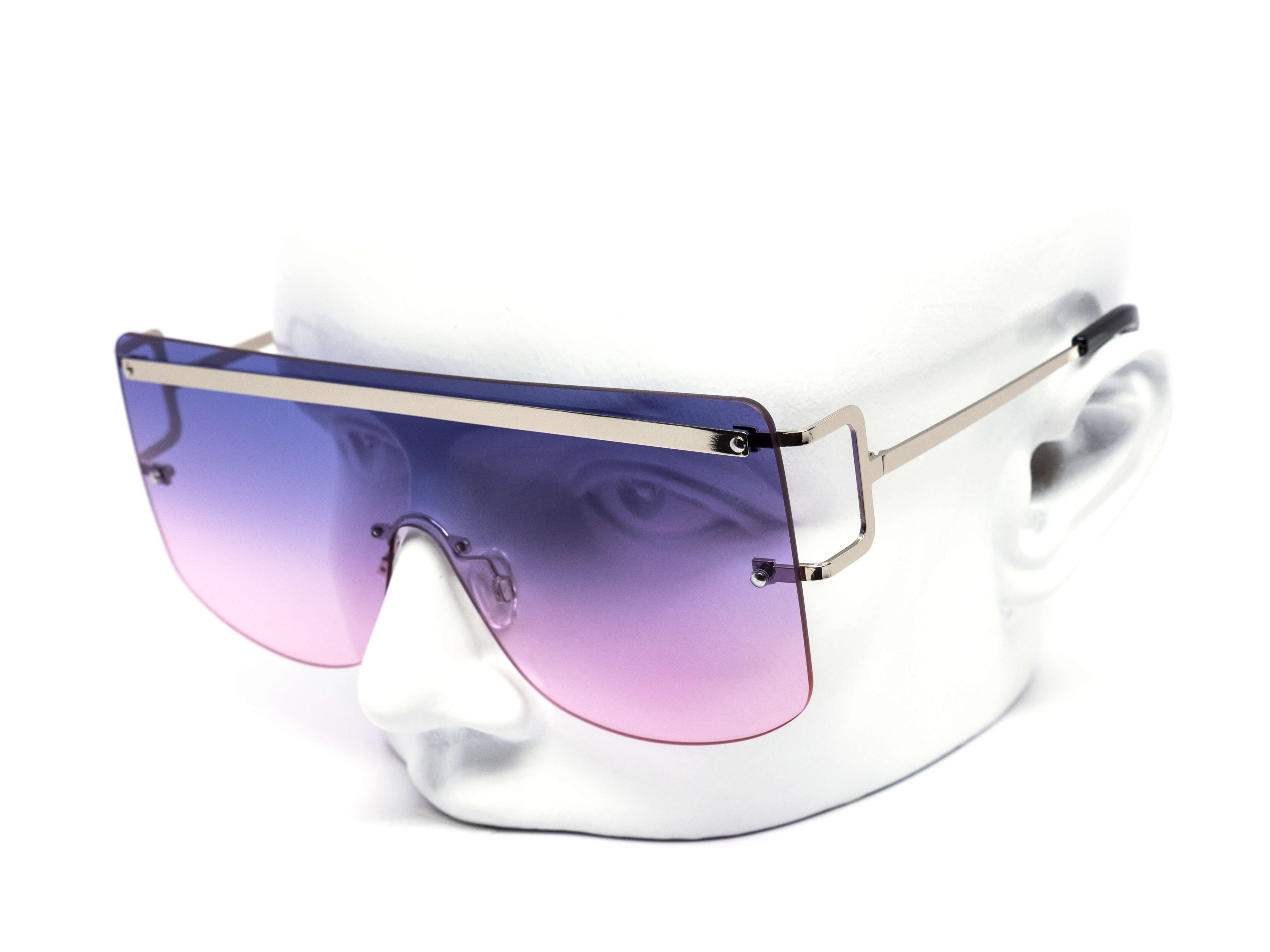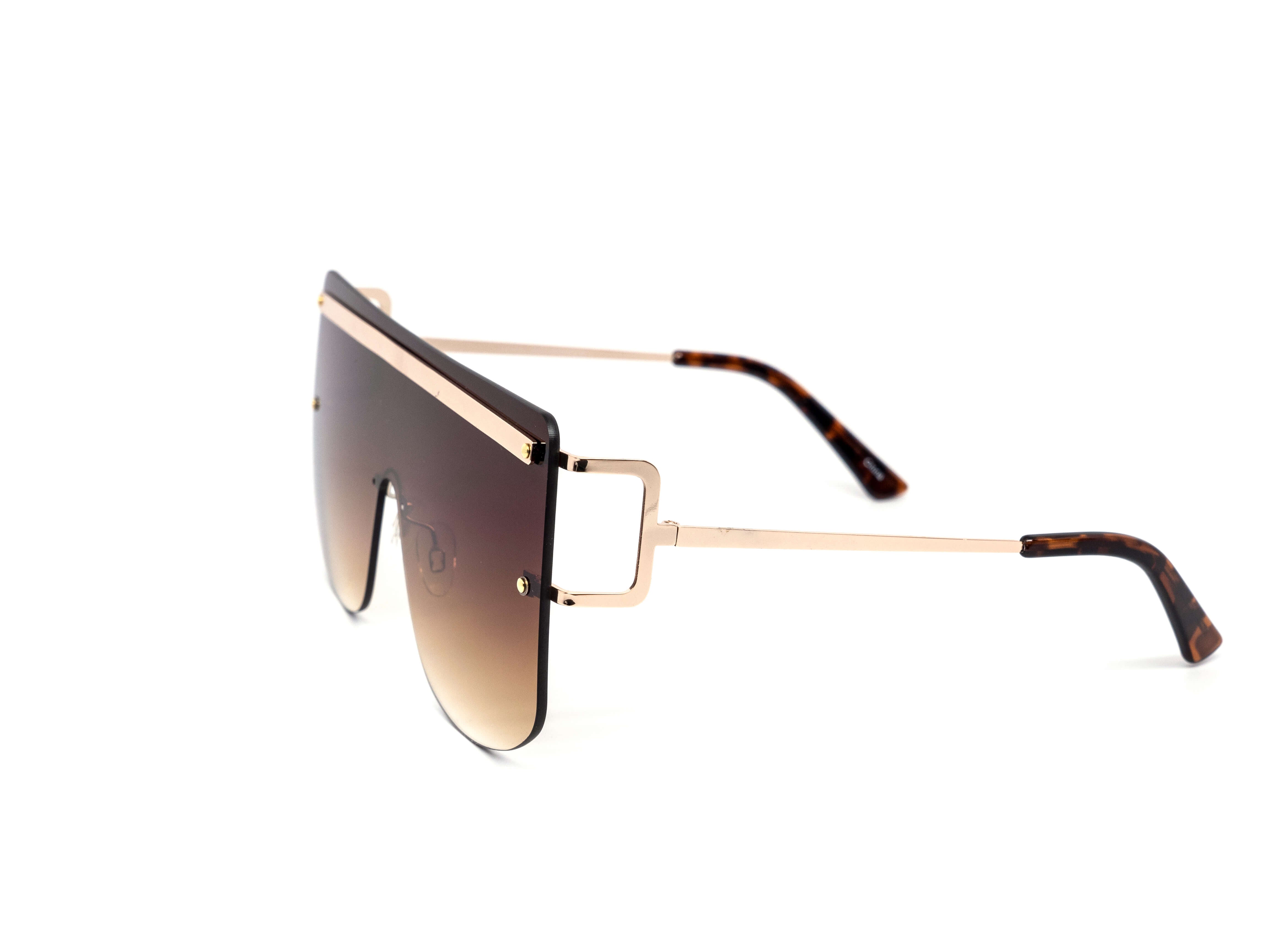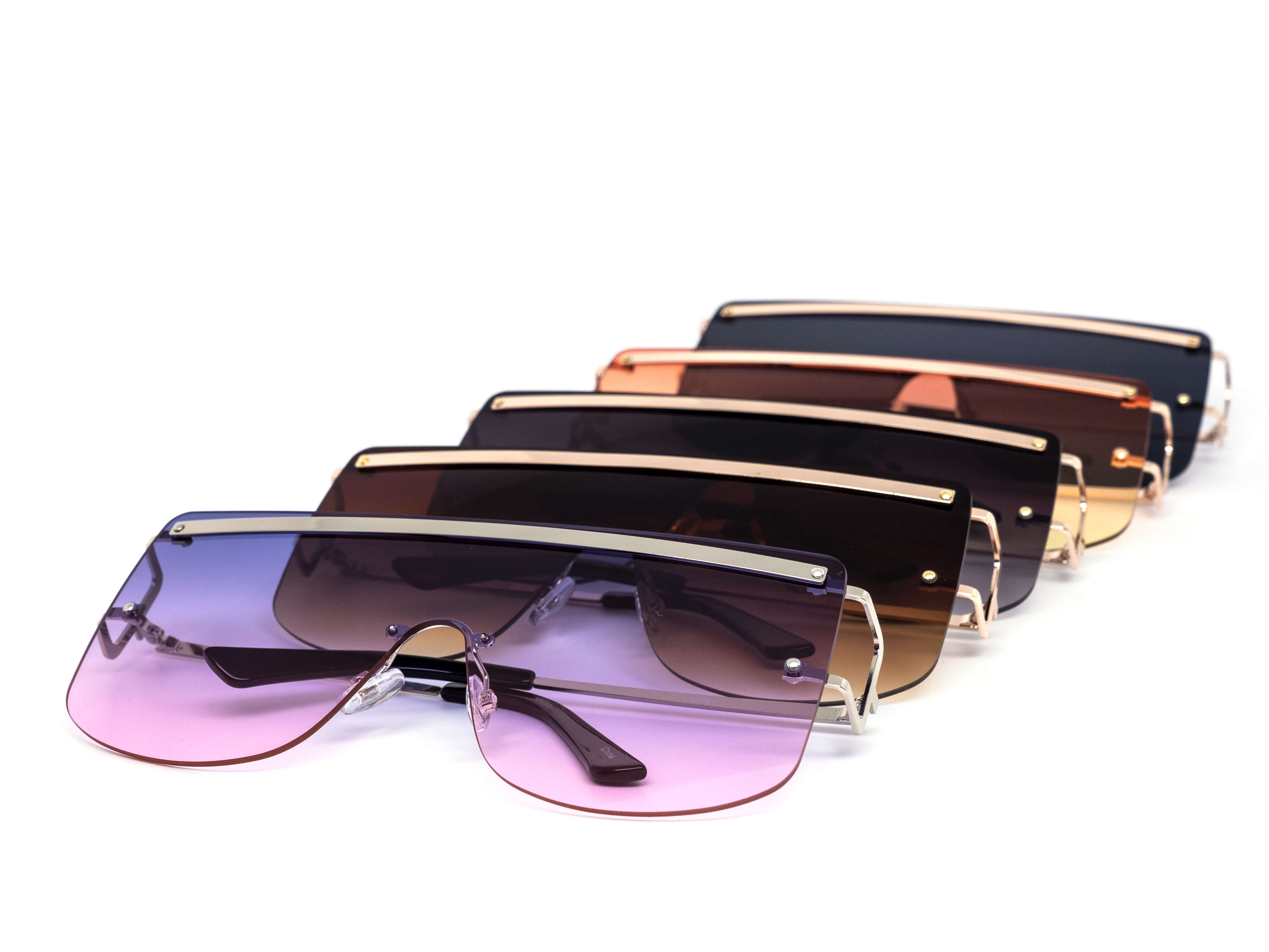 High fashion frameless oversized square design with top bar accent and sturdy metal temples. Comes in beautifully assorted color and dark lens and metal material.