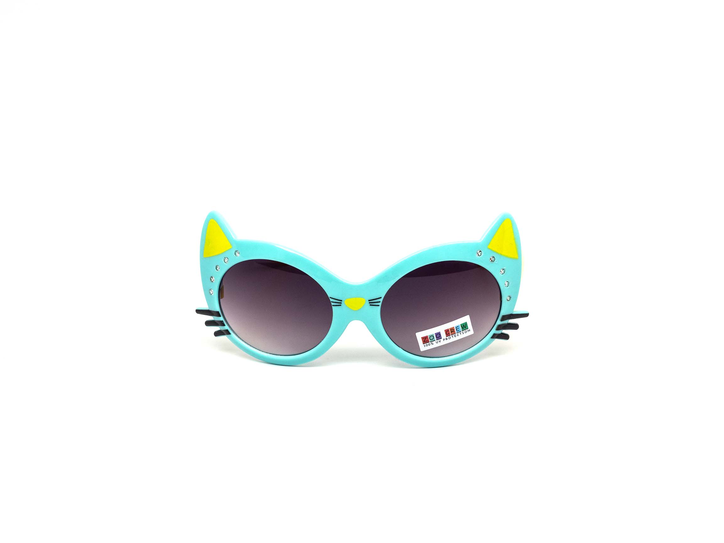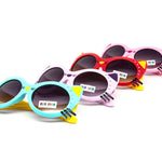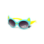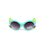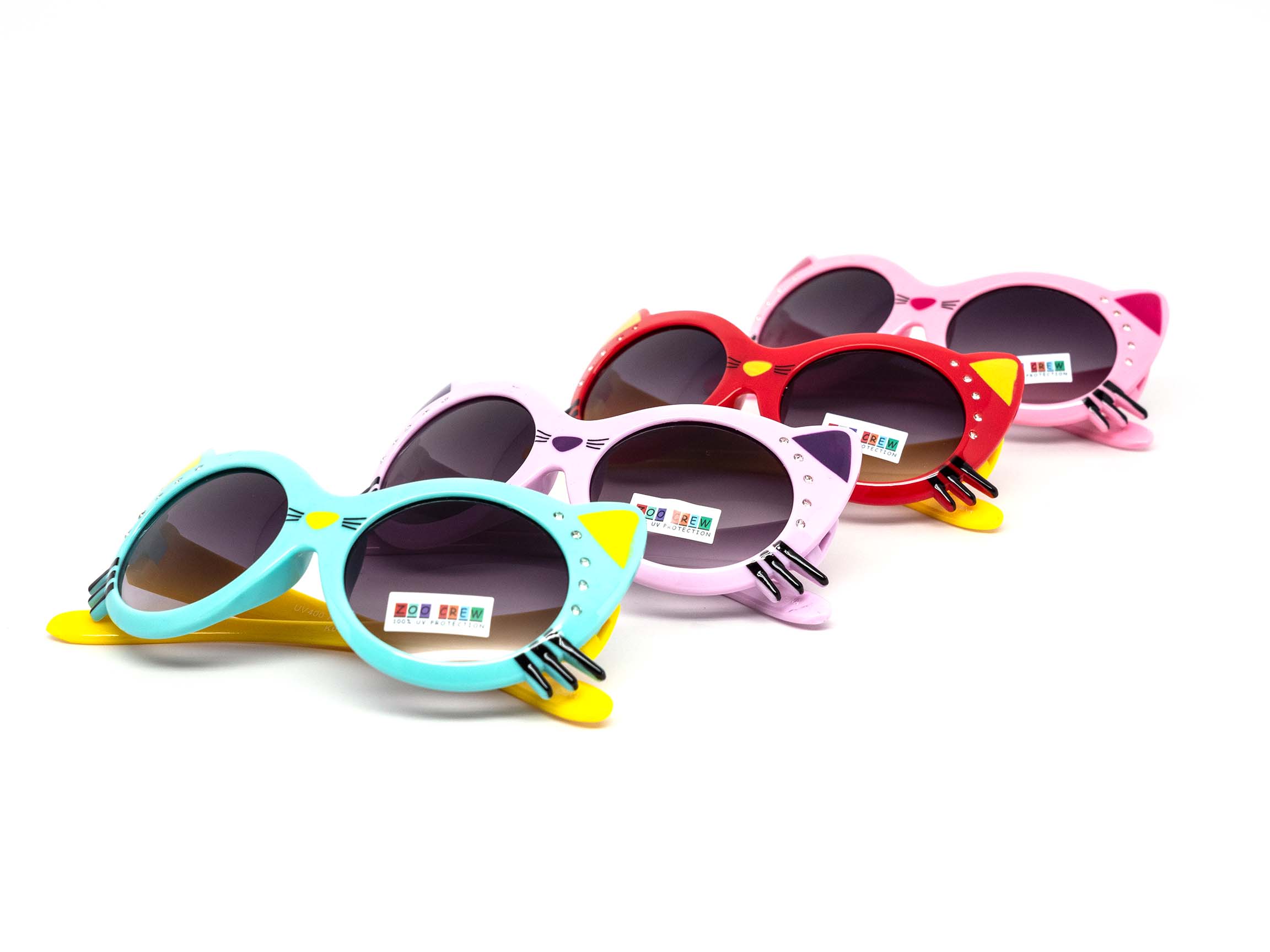 Super cute, Iced out, rhinestone kitty cat ears design with whiskers for the kiddos. Comes in assorted color frame combos with dark gradient lens. Perfect for ages 1-6.