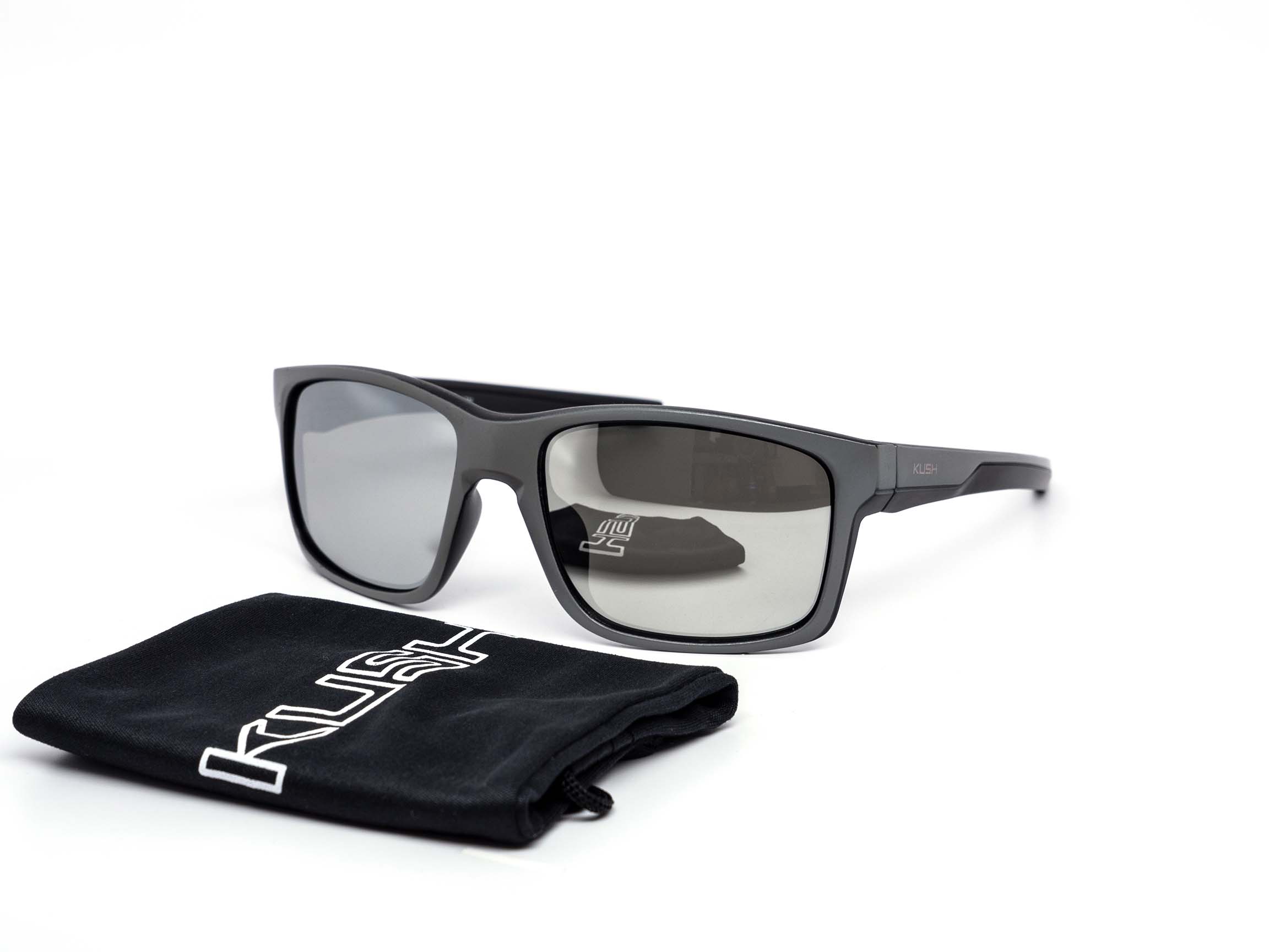 Featuring an iconic look, the Kush signature logo and contrasting graphic lines adorn the temples of these sunglasses. All styles feature dark lenses and are accompanied by a protective pouch.