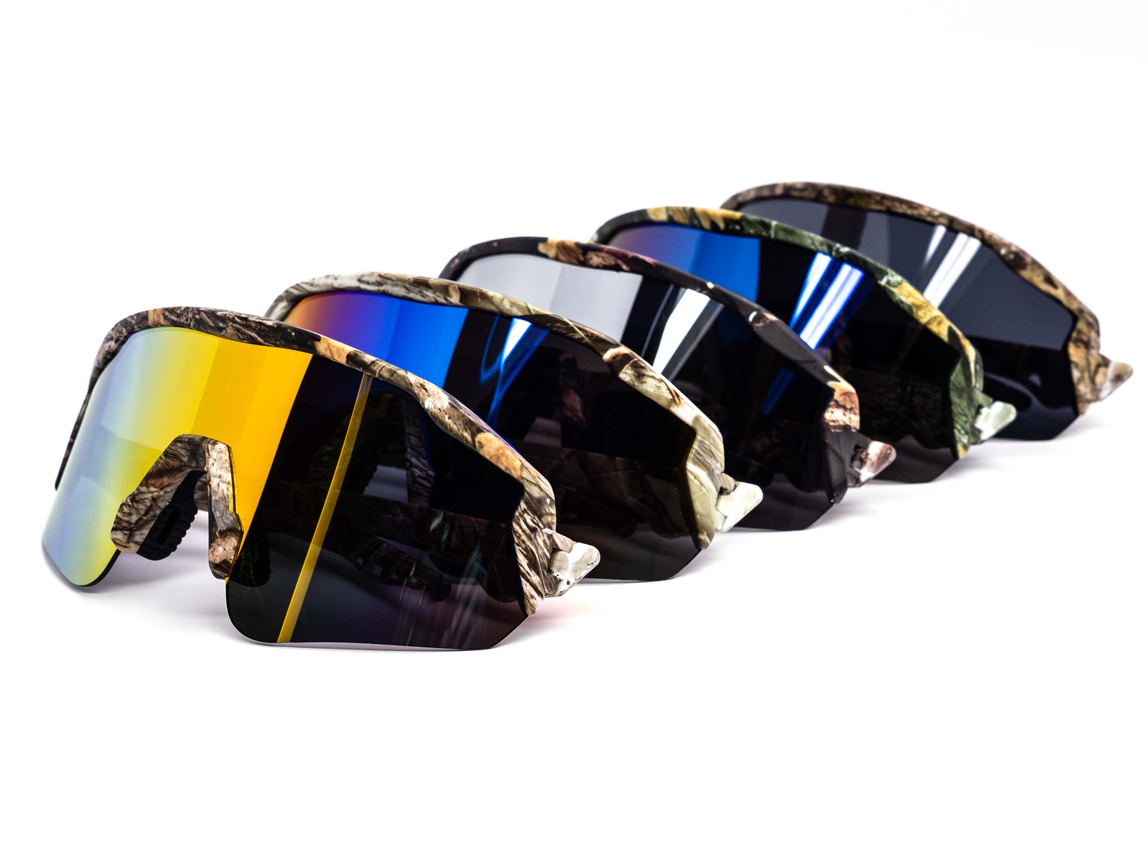 Designed for outdoor enthusiasts and sports lovers, these hunter-inspired camouflage sports shield sunglasses are the perfect blend of rugged style, durability, and high-performance protection. Featuring a wraparound design for a secure and comfortable fit, these shades offer full coverage against glare, wind, and debris — ideal for hunting, fishing, hiking, and any high-intensity outdoor activity. The assorted dozen of camouflage frame patterns adds a bold, tactical edge, and the burnt mirror lenses enhance visual clarity and reduce glare in bright conditions. Whether in the wild or on the move, these sports shield sunglasses deliver unbeatable eye protection with a rugged, adventure-ready look.