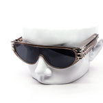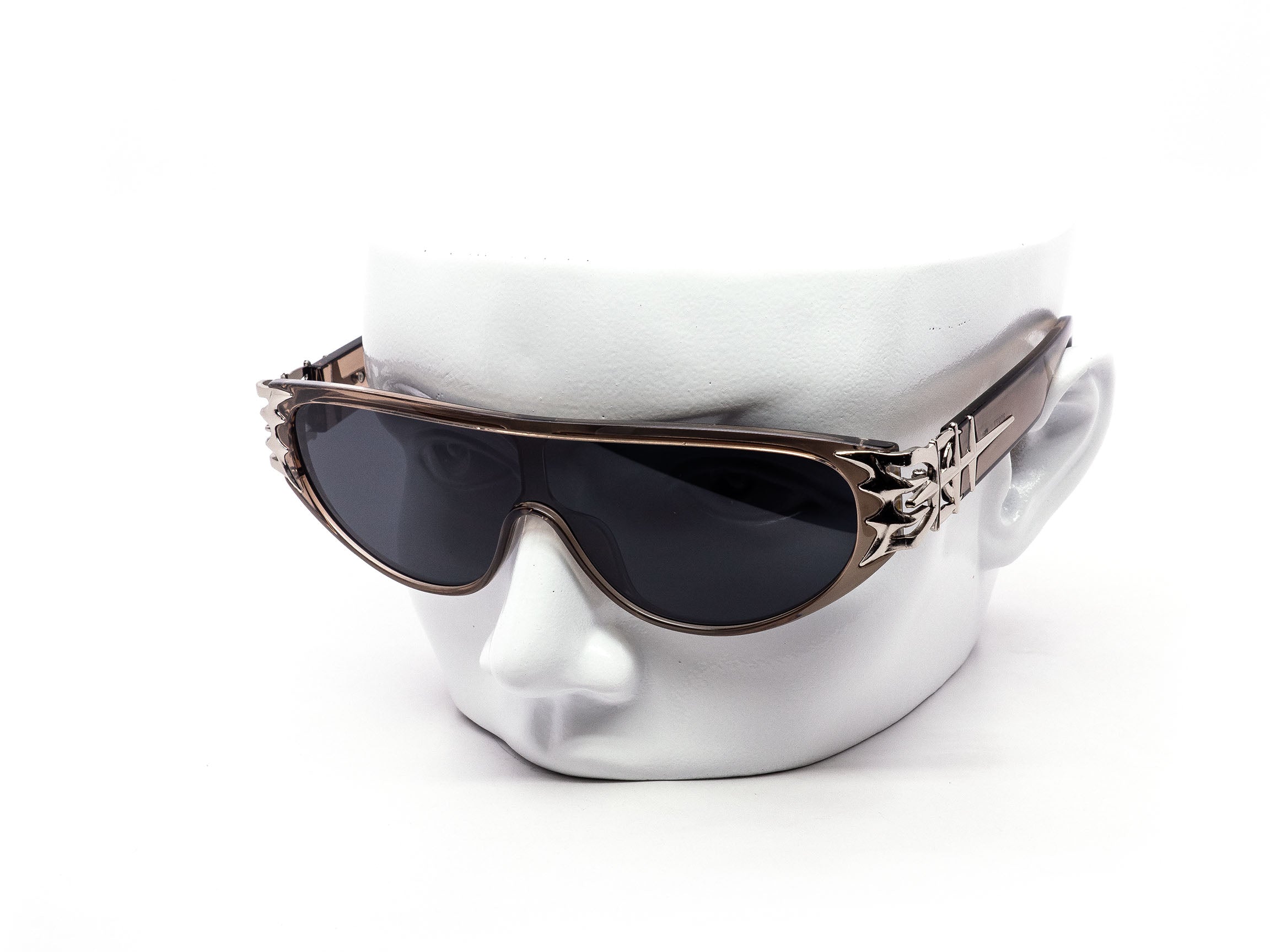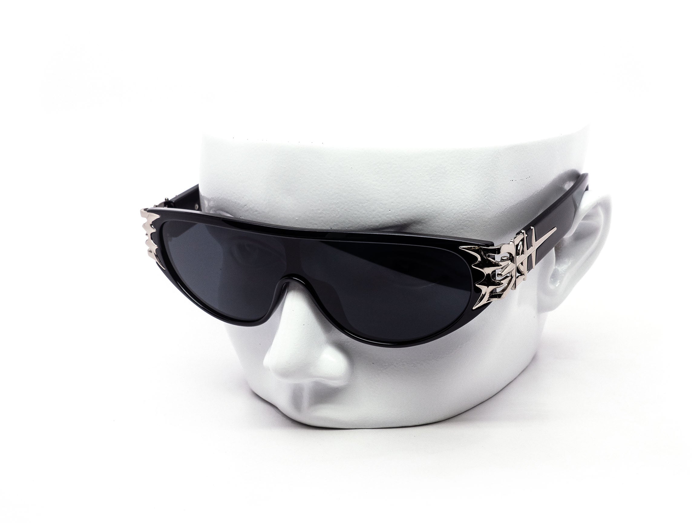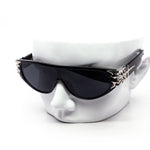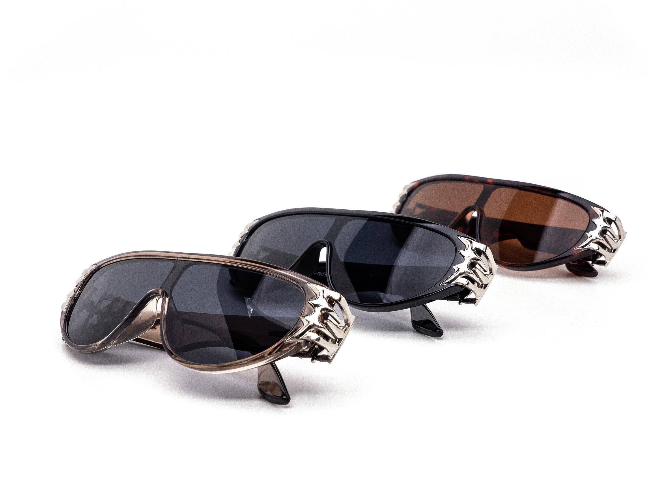 Bold cyclops-style shield shades with heavy metal “frozen heart” temple accents. Thick, shiny, and dramatic. These come in 3 bling colorways that look subtle at first but hit with a high-class vibe once they’re on. Perfect for anyone who wants that strong, standout look.