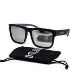 Polarized Kush classic black frames with assorted color mirror lens. Assorted color logos and inner temple liner. Matte finish.