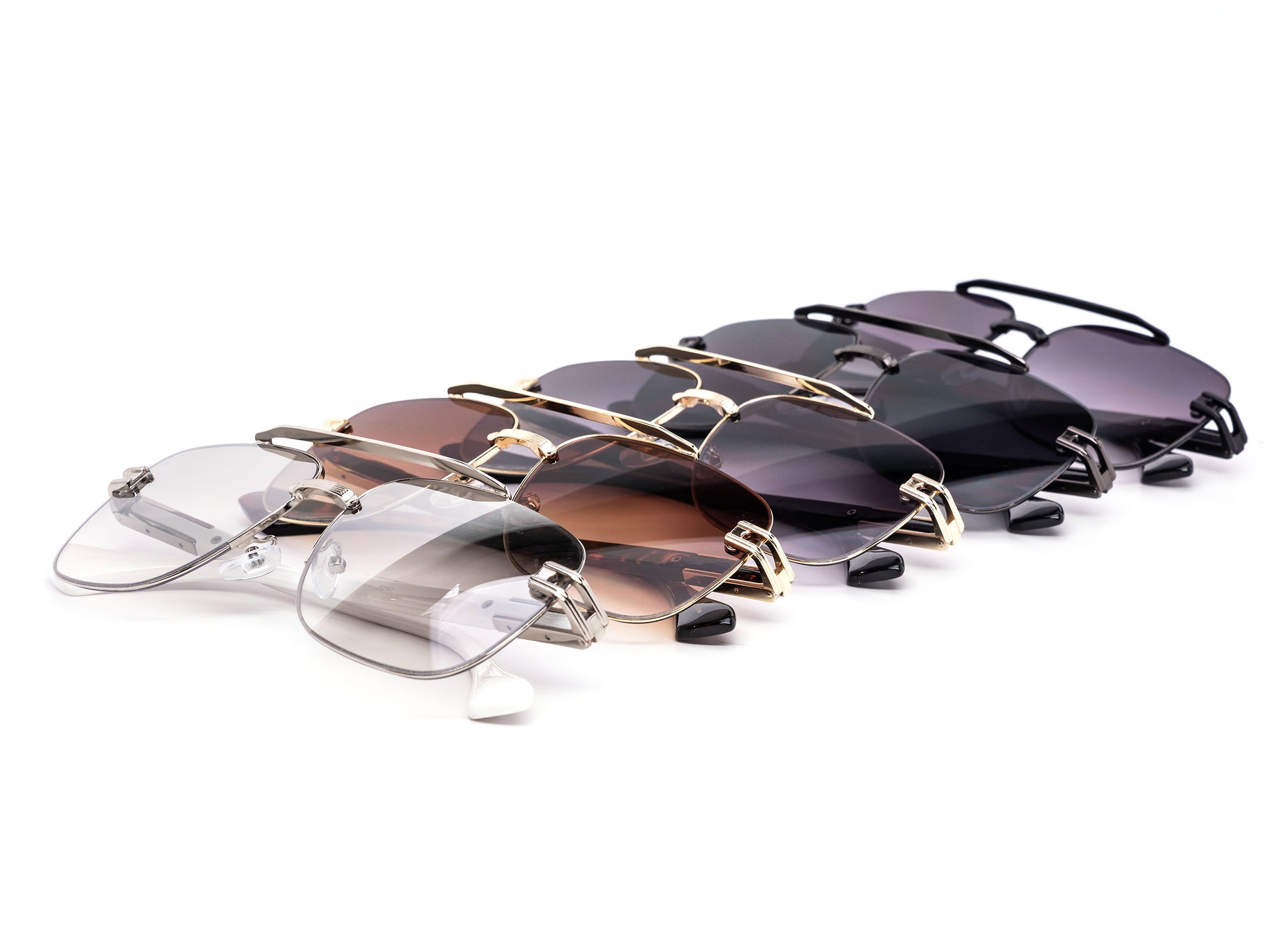 Some things never go out of style, particularly our classy semi-rimless aviator sunglasses, which combine the timeless aviator design with a sleek and modern touch. The oversized semi-rimless metal frames present a bold and sophisticated look, perfect for fashion boutiques and high-end retailers. The durable, strong temples provide wearers a secure and comfortable fit, while the assorted gradient lenses are as beautiful as they are protective against harmful UV rays. These wholesale aviator sunglasses offer premium aesthetic at an affordable bulk price.